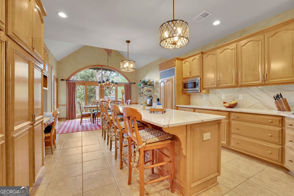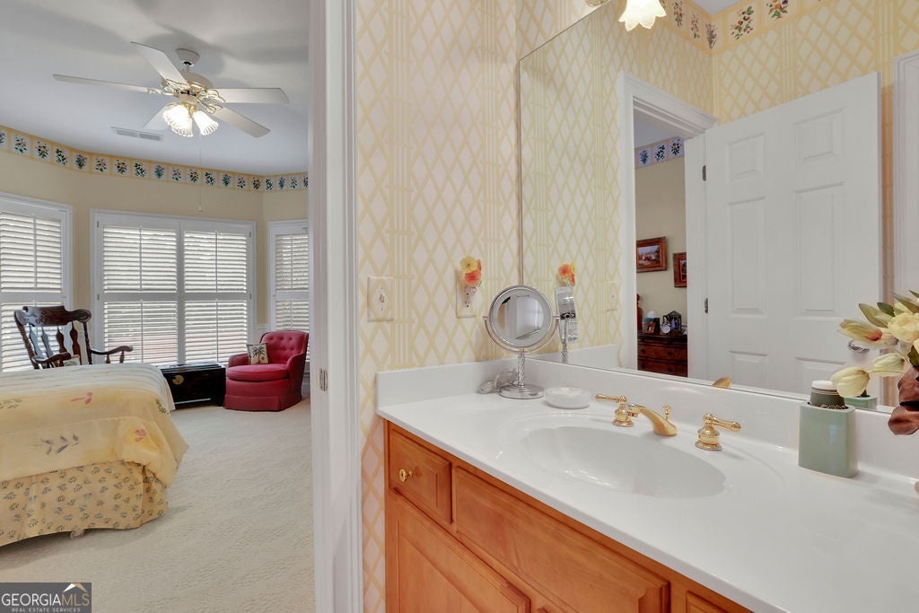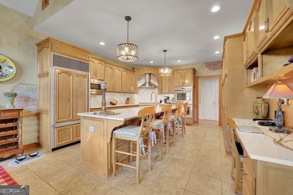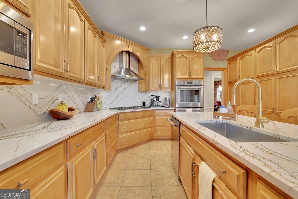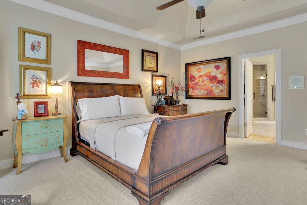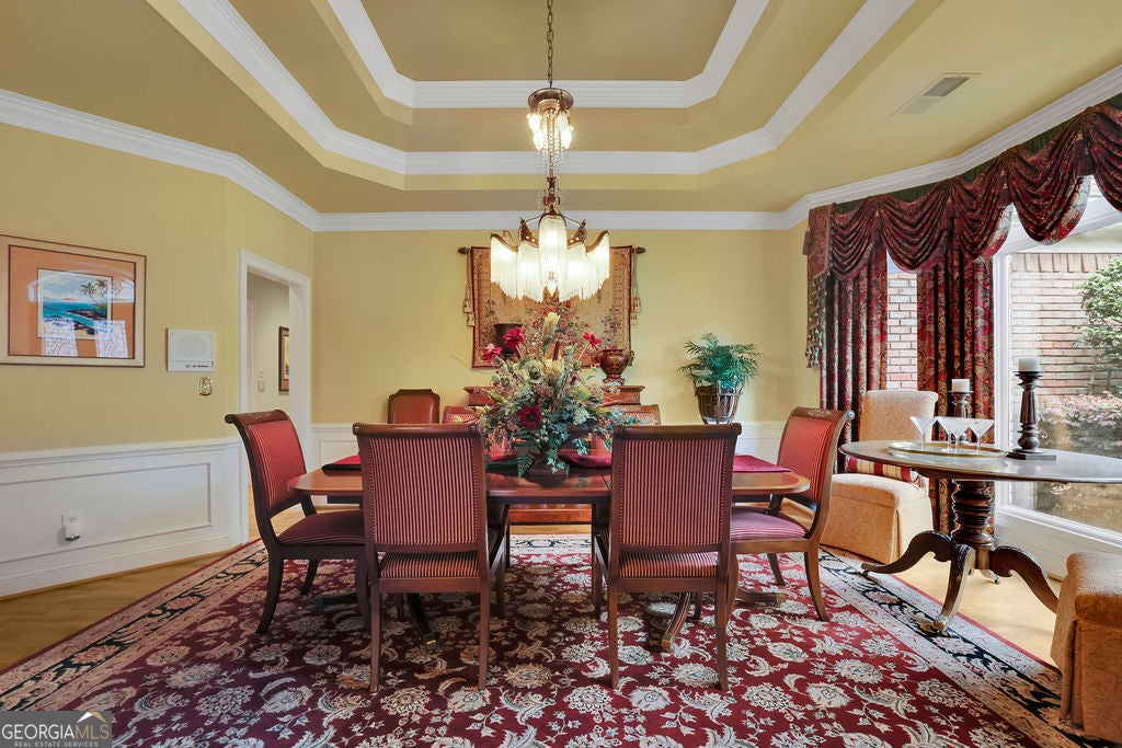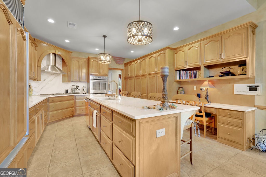 Elegant, move-in ready ranch in sought-after Polo Fields offering refined finishes, exceptional outdoor living, and a true country club lifestyle. This 4-sided brick home features a beautifully remodeled chef's kitchen with quartz countertops, a massive island, and premium appliances including Sub-Zero refrigerator, Bosch dishwasher, and Thermador double ovens-perfectly designed for both everyday living and entertaining. Step outside to a serene, fenced backyard retreat complete with a covered patio featuring a tongue-and-groove ceiling, Tennessee sandstone flooring, and a tranquil koi pond with waterfall. Set well back from the street, the property offers ample parking for up to six cars plus an oversized 2-car garage with additional storage. Inside, you'll find thoughtful details throughout including hardwood floors, plantation shutters, extensive crown molding, wainscoting, tray and vaulted ceilings, and abundant natural light. The inviting family room showcases a floor-to-ceiling stone fireplace flanked by custom built-ins, while a dedicated office also features custom cabinetry and shelving. Permanent attic stairs lead to a large partially finished attic-ideal for a future bedroom, media room, or private office. The spacious primary suite offers a bay window sitting area, tray ceiling, and a luxurious bath with frameless shower, garden tub, dual vanities, and a large walk-in closet. A split-bedroom layout provides privacy, with two secondary bedrooms connected by a Jack-and-Jill bath. Enjoy living in Polo Fields, home to the prestigious Polo Golf & Country Club, where residents have access to a championship golf course, a clubhouse with dining and social events, tennis facilities, resort-style swimming pools, fitness center, and an active calendar of family-friendly programs and events. From golf and tennis to fine dining, swim teams, and year-round social activities, the community offers a lifestyle centered around recreation, connection, and convenience.