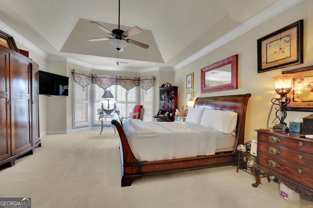 - Interior FeaturesBookcases, Central Vacuum, Double Vanity, High Ceilings, Master On Main Level, Roommate Plan, Tray Ceiling(s), Vaulted Ceiling(s), Walk-In Closet(s)
