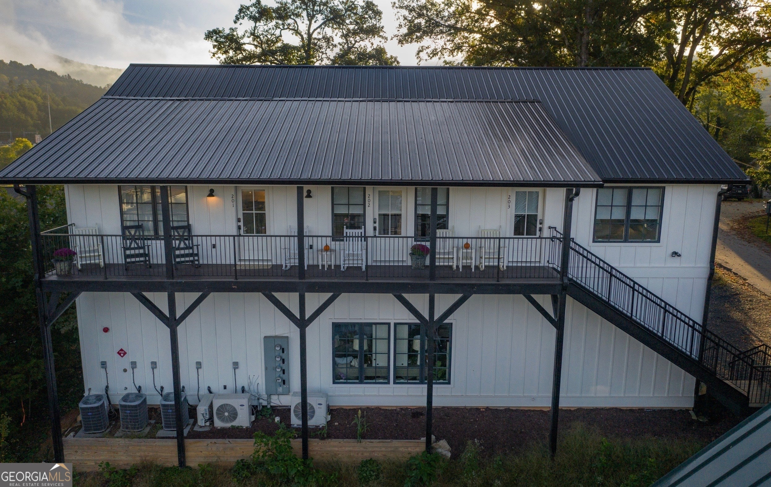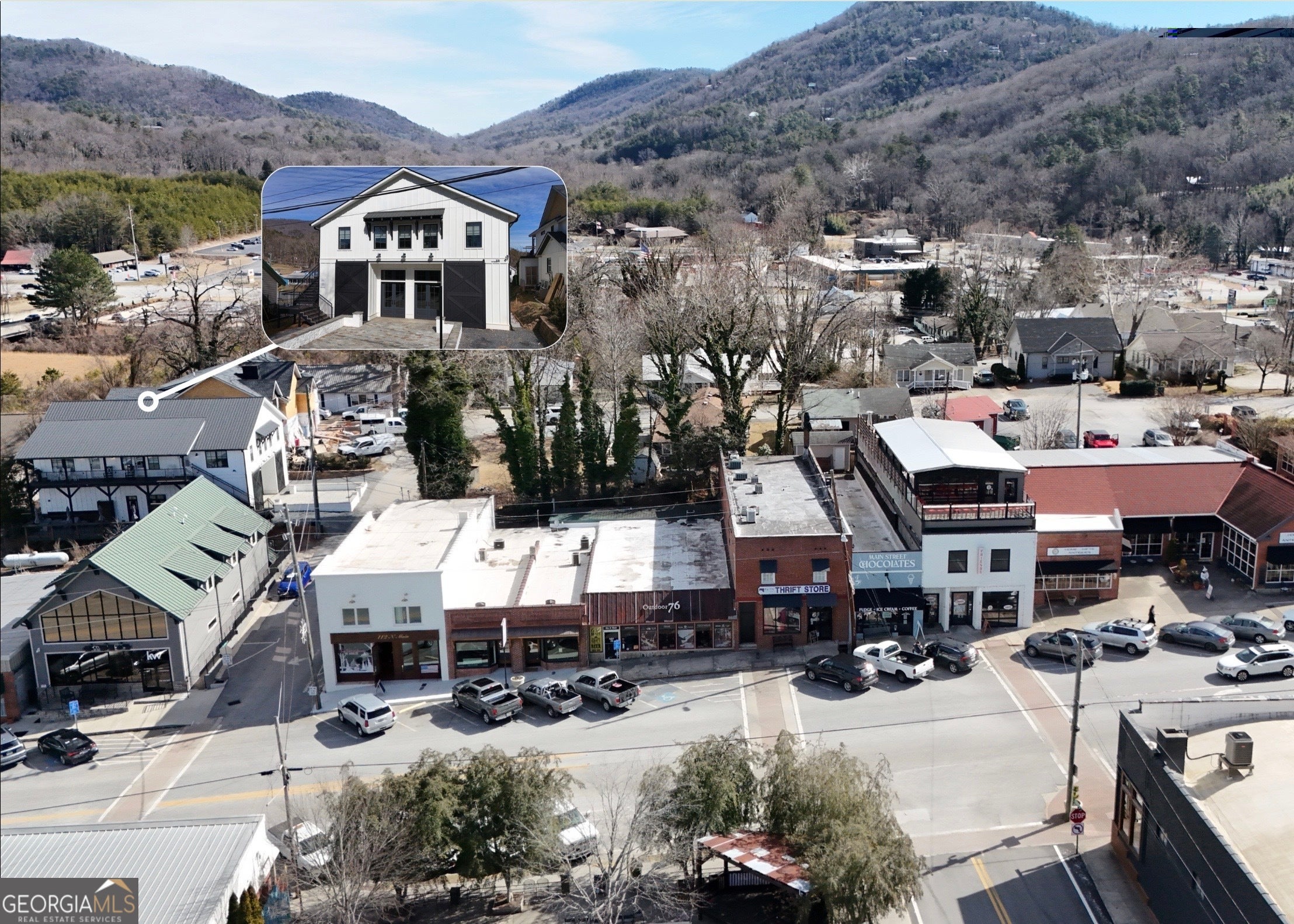 Exceptional opportunity in the heart of downtown Clayton, Georgia's thriving and walkable business district. Perfectly positioned among popular shops, restaurants, and attractions, this beautifully designed two-story farmhouse-style building blends strong income potential with mountain-town charm. The main level features approximately 2,200-2,500 square feet of versatile commercial space, easily adaptable for restaurant, event, or office use. The open layout offers tremendous flexibility and includes prep space and access to a partially covered deck, creating endless possibilities for retail, dining, or entertainment concepts. Above, three well-appointed 1BR/1BA loft-style apartments-each approximately 750-850 square feet-are operated as highly successful short-term vacation rentals with a busy and growing occupancy rate. These open-concept units feature full kitchens, laundry, private exterior access, individual HVAC systems, and stylish farmhouse finishes that have earned consistent 5-star guest reviews. Whether maintained as a thriving mixed-use investment, reimagined as office space with residential units, or adapted to suit a new vision, this property offers incredible flexibility in one of North Georgia's most desirable mountain destinations. An outstanding investment opportunity in a rapidly growing area-this is truly a must-see.