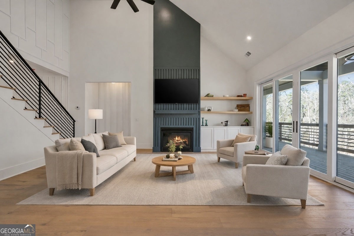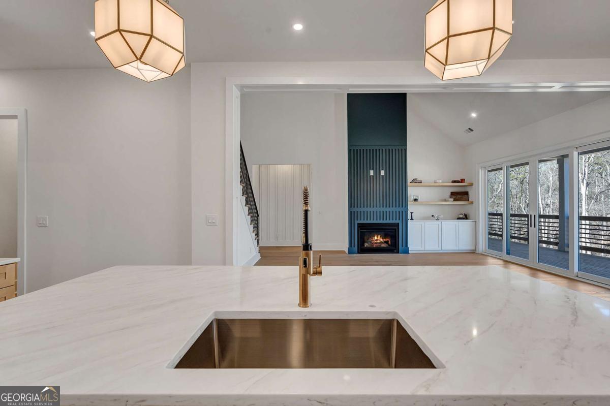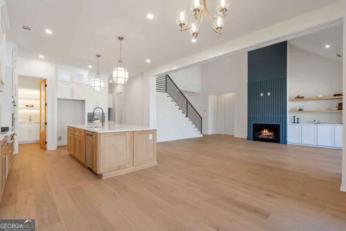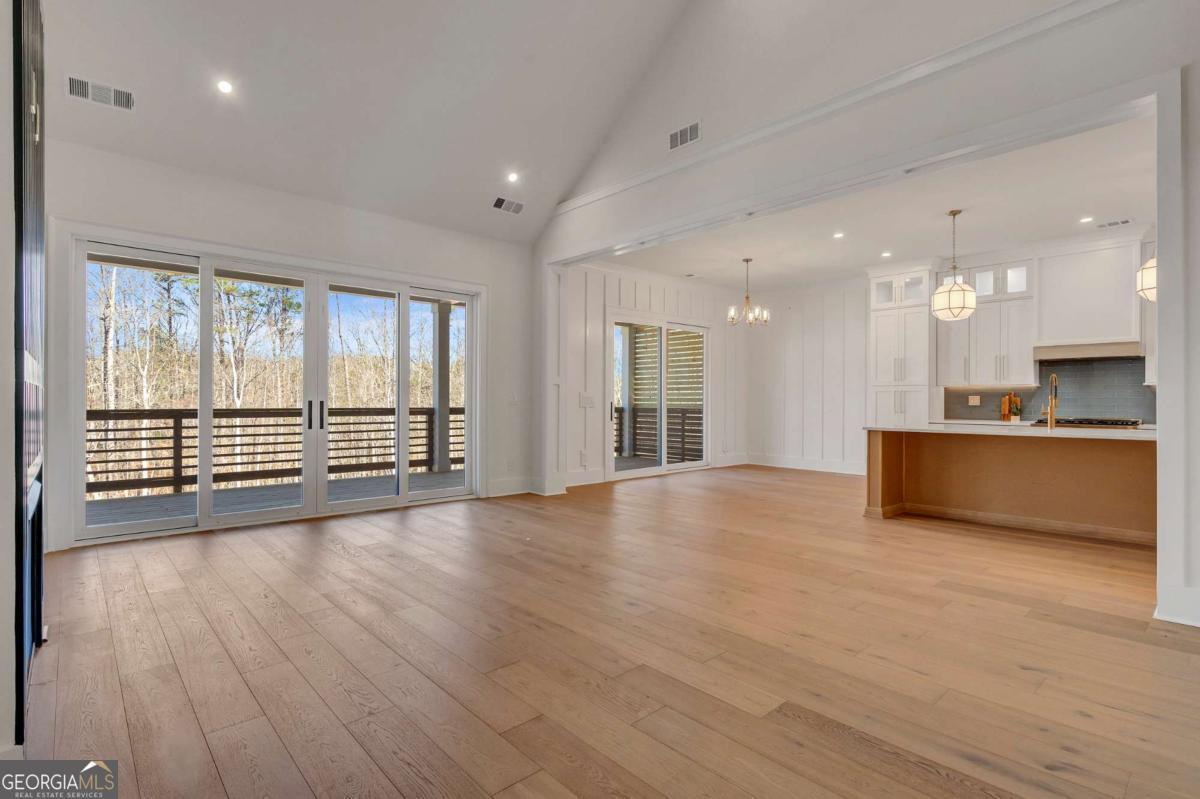 This exceptional luxury new construction home is ideally located near Lake Lanier and has possible $10,000 incentives! Just minutes from GA 400 at Exit 16, offering lake views, lake proximity, and effortless access to dining, marinas, and everyday conveniences. Thoughtfully designed and beautifully executed, this home blends elevated finishes with functional living in a highly desirable North Georgia setting. Step into the foyer and immediately experience the home's open-concept layout and soaring high ceilings, creating a bright, airy atmosphere that feels both grand and welcoming. Designer details and luxury finishes are evident throughout, setting the tone for refined yet comfortable living. The expansive main level seamlessly connects the kitchen, living, and dining spaces, ideal for entertaining and everyday life alike. The living area is anchored by large windows and oversized doors that open to a covered patio, creating effortless indoor-outdoor living and inviting the surrounding lake scenery inside. The chef's kitchen is a standout, featuring two-tone cabinetry, high-end appliances, a large center island, and a spacious walk-in pantry with LED lighting and built in storage. A well-appointed butler's pantry adds additional prep and storage space, while the laundry room and mudroom off the garage provide seamless functionality without compromising design. The primary suite on the main level offers a private retreat with direct access to the outdoor living space, a spa-inspired bathroom featuring a double shower, and a custom closet with built-in storage. An additional main-level bedroom and full bathroom offer flexibility for a home office, guest suite, or multi-generational living. Upstairs, you will find three additional bedrooms and two full bathrooms, including a generously sized bedroom that can easily function as a bonus room, media space, or flex area. The home also features a full daylight walkout basement, providing endless potential for future expansion. Additional highlights include a large driveway, a side-facing garage, and thoughtful exterior design that enhances both curb appeal and functionality. With luxury finishes, high ceilings, new construction quality, and an unbeatable location near Lake Lanier with quick access to GA 400, this home offers a rare opportunity to enjoy elevated living without compromise.