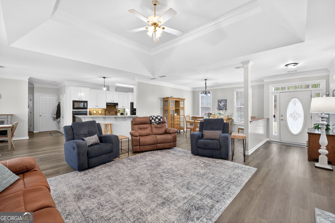 Tucked away on a quiet private drive, this well-maintained ranch offers peaceful country living on 6.36 acres. Featuring 4 bedrooms and 3.5 bathrooms, the home includes LVP flooring throughout the main living areas and a spacious upstairs bonus room with a full bath-perfect for guests, a home office, or flex space. Enjoy the privacy of a cul-de-sac lot, a fenced backyard, and a screened-in back porch ideal for relaxing and taking in the serene surroundings. Located in the county with plenty of space to spread out, this property offers both comfort and tranquility.