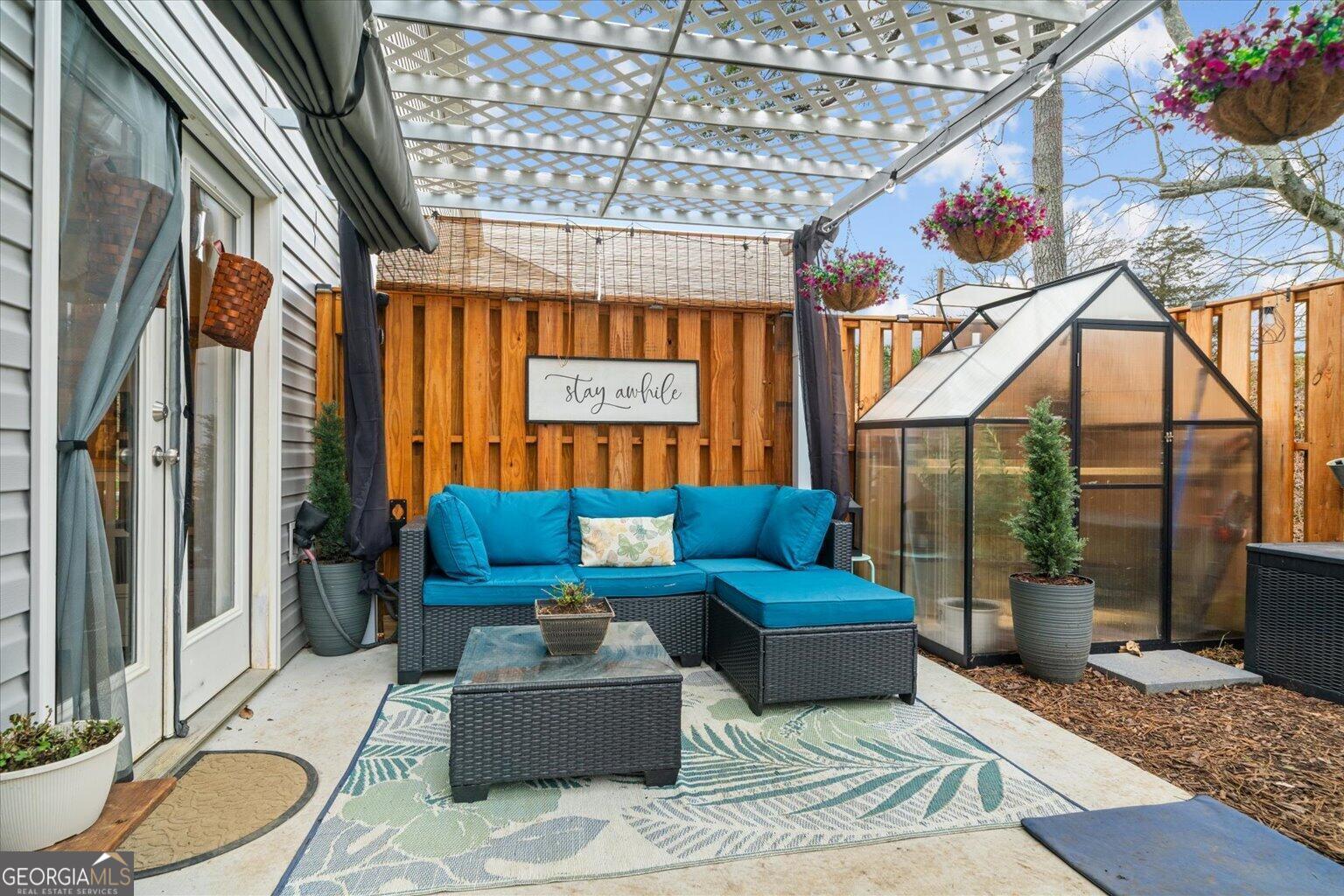 Welcome to this beautifully appointed end-unit townhome that immediately stands apart in the community, offering thoughtful upgrades, enhanced privacy, and features that are rarely found together in one home. From the moment you step inside, you're greeted with a warm and inviting atmosphere highlighted by two fireplaces thoughtfully placed for comfort and ambiance--one in the living room and one in the primary suite, creating cozy, relaxing spaces both day and night. Whether you're entertaining guests or winding down after a long day, this home delivers comfort at every turn. Designed for convenience and truly move-in ready living, this home includes **all kitchen appliances--refrigerator, washer, and dryer--**saving you time and added expense while making your transition seamless. Throughout the home, you'll find built-in cabinetry offering stylish and practical storage solutions, adding both character and functionality that set this property apart from standard units in the community. Step outside and enjoy a private outdoor retreat designed for lifestyle living. A pergola-covered space creates the perfect setting for outdoor dining or morning coffee, while the fully fenced yard provides privacy and peace of mind. For those who enjoy gardening or sustainable living, the dedicated greenhouse is a rare and valuable bonus you won't often find in similar homes. As an end unit, this property benefits from added natural light, extra privacy, and a more open, spacious feel compared to interior units--an immediate advantage buyers will appreciate. With its thoughtful upgrades, inviting layout, and standout outdoor features, this townhome offers a unique blend of comfort, function, and lifestyle that truly sets it apart from the rest.