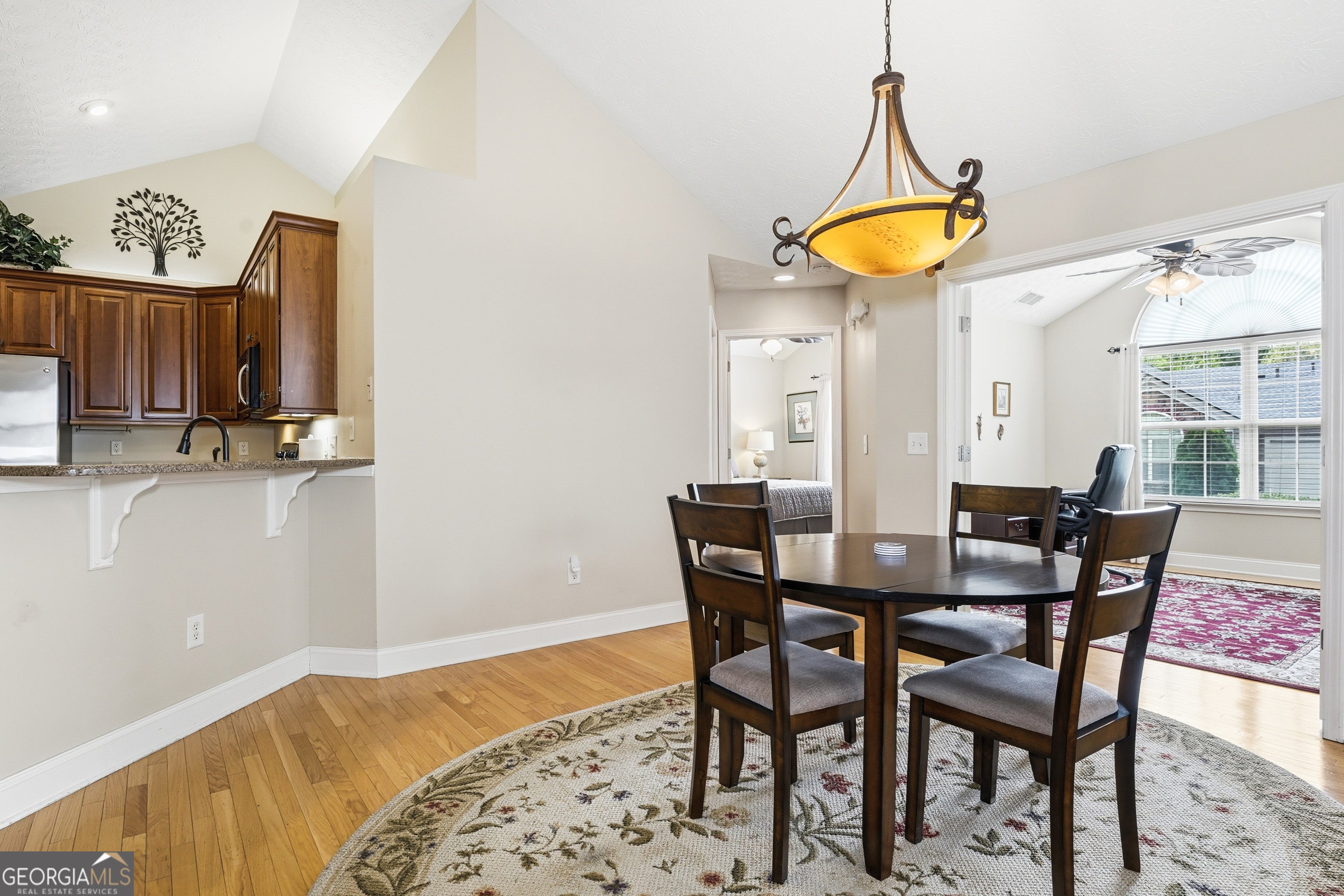 5226 Stone Village Circle NW offers an easy, low-maintenance lifestyle in a well-situated active adult community in Kennesaw, ideally positioned between Stilesboro and Burnt Hickory Roads for convenient access to shopping, dining, and everyday essentials. The setting is quiet and established, with a community center and pool just a short walk from the front door, making it simple to stay connected and enjoy the neighborhood. This ranch-style condo is thoughtfully laid out with a flowing, open design that brings the main living spaces together. The kitchen overlooks both the breakfast area and the living room, where a fireplace creates a natural focal point and a comfortable gathering place. Just off the main living area, a set of French doors opens to a generously sized office, offering a flexible space that works well for a home office, reading room, or hobby area. Also off the living area is a flex room, perfect for additional dining space or garden room, given the abundance of light. The home includes two bedrooms and two full bathrooms across approximately 1,712 square feet, with hardwood floors running through the main living areas. The location, community and one-level living will be hard to beat!