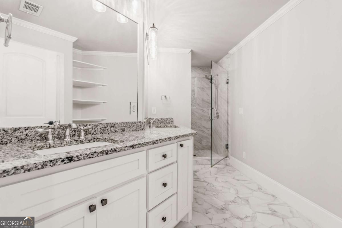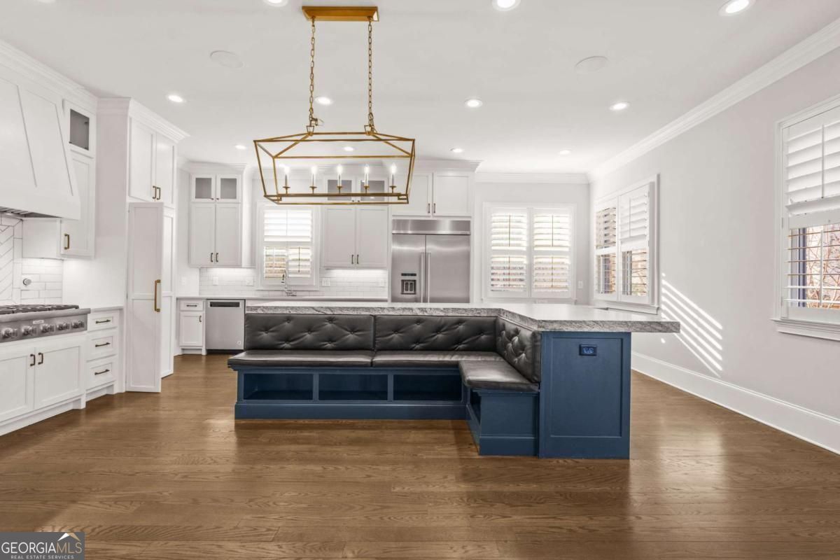 This extraordinary East Cobb estate masterfully blends refined luxury, thoughtful design, and exceptional versatility, featuring a fully equipped private guest residence seamlessly integrated on the same property-an ideal retreat for multigenerational living, extended stays, or live-in support with complete independence. Perfectly positioned within one of the area's most sought-after school districts, including the highly acclaimed Walton High School, this residence offers access to top-tier public education without the expense of private tuition. The main residence showcases exquisite craftsmanship throughout, with rich hardwood floors, bespoke millwork, and an elegant chef's kitchen appointed with quartz countertops, premium appliances, an expansive walk-in pantry, and custom built-ins. A main-level guest suite with en-suite bath provides comfort and convenience, while the luxurious primary suite serves as a private sanctuary, featuring dual custom closets and a discreetly tucked-away bonus room-perfect for a private office, fitness studio, or serene retreat. The private guest residence is equally impressive, offering its own dedicated entrance, a full designer kitchen, a main-level suite, and a private garage equipped with a 220V outlet-delivering unparalleled autonomy and comfort for guests or extended family. Designed for both grand entertaining and everyday living, the property also features a four-car garage, an elevator-ready shaft for future convenience, and a covered outdoor living space complete with a fireplace and integrated audio system. The professionally landscaped grounds create a picturesque setting, while the expansive unfinished basement-already stubbed for a full bath-offers limitless potential for customization. This is a rare opportunity to own a truly distinguished property where elegance, functionality, and location converge.