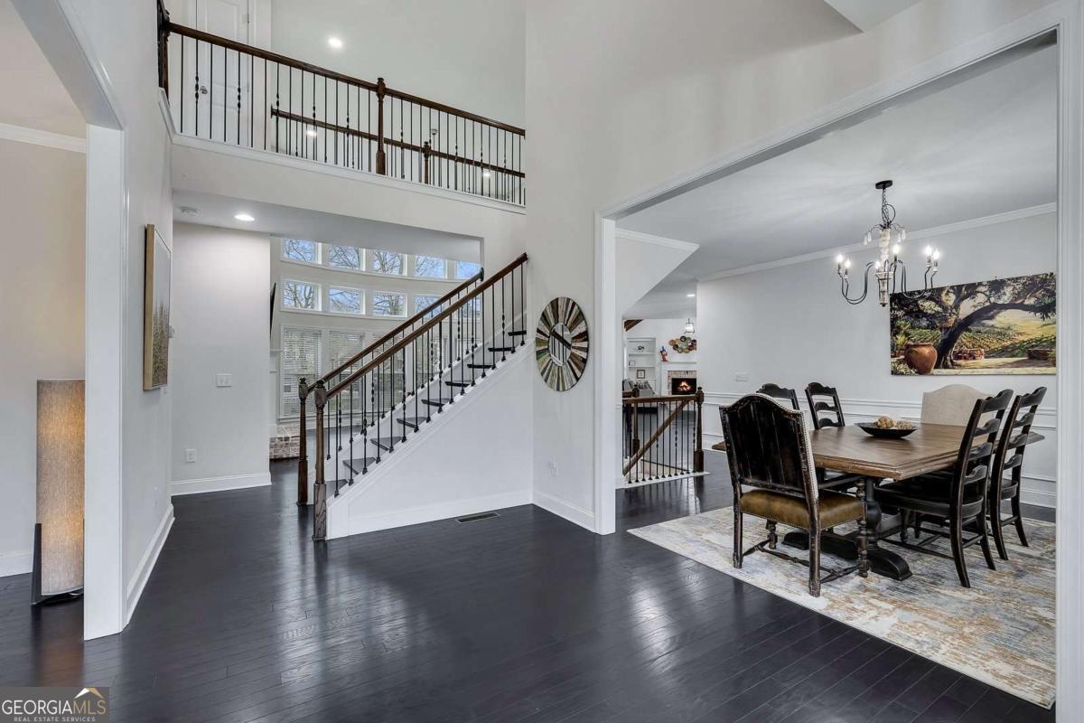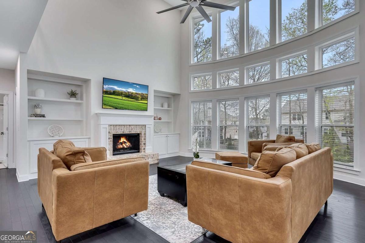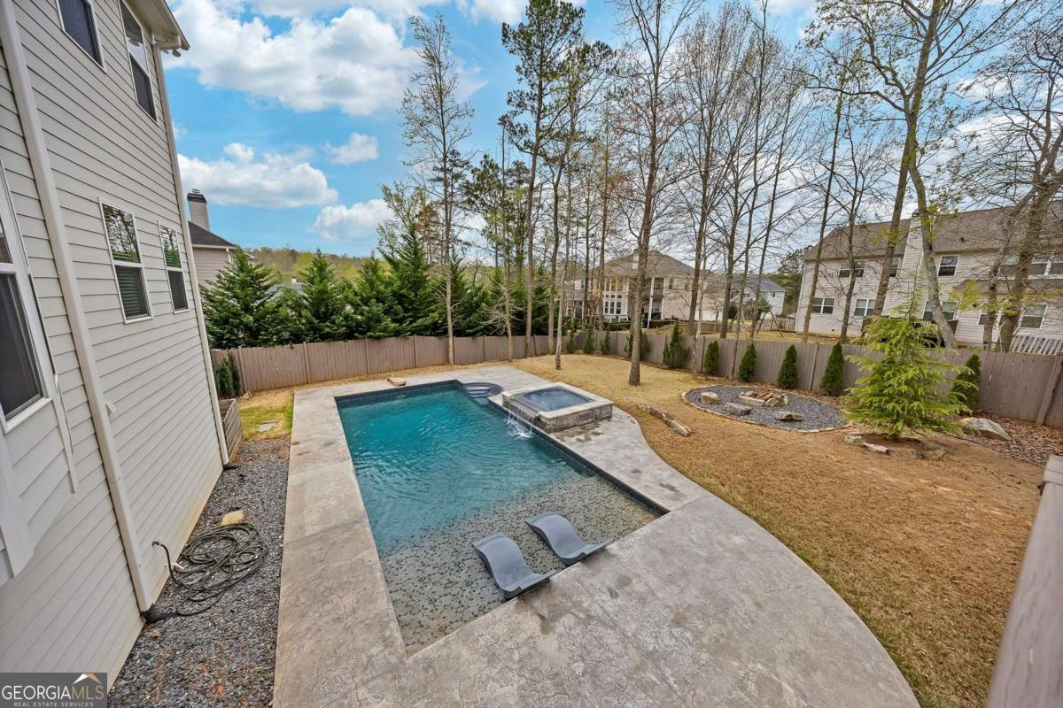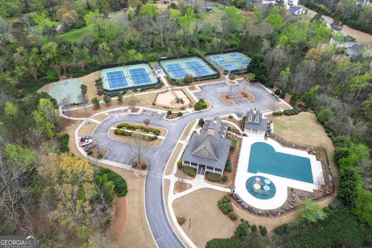 Welcome to this exceptional Toll Brothers luxury estate! This home is a move-in-ready "Show Home" with a partially finished basement and a heated salt water pool, situated in the highly desirable Creekside at Parkstone community. Conveniently located just minutes from shopping, dining, parks, and schools, this home offers an open-concept living space, and combines elegance, functionality, and indoor-outdoor entertaining. Spanning an expansive 6069 SF, this home makes a stunning first impression with its striking custom Atwood double front doors and soaring two-story wall of windows in the great room, which are tinted for maximum energy efficiency. The interior is defined by high-end finishes, including hardwood floors, crown molding and beamed ceilings. The chef's kitchen is an entertainer's delight, anchored by an oversized island, premium stainless steel appliances, and a custom pantry door that adds a sophisticated designer touch to the walk-in pantry. This space flows seamlessly into a vaulted keeping room with a second fireplace and built-in bookshelves. In the grand light-filled two-story family room the focal point is a custom fireplace wall featuring custom built-in cabinetry that elegantly anchors the entertainment area. A separate formal dining room creates the perfect setting for gatherings. Designed for multigenerational comfort, the main level includes a formal private office/flex room and a guest suite with a remodeled stepless entry shower featuring an all-quartz surround. Upstairs, the oversized master suite serves as a true architectural retreat, boasting a tray ceiling, a private sitting room/office space, and a spa-inspired master bath with dual vanities, a large soaking tub, and an oversized shower, complemented by separate his and hers walk-in closets. All secondary bedrooms feature private ensuite bathrooms for ultimate comfort. The partially finished daylight terrace level offers vast flexibility, currently housing a media/exercise room, a second great room/game room and a dedicated area prepped for a home theater or in-law suite with a bathroom stub. The exterior is a premier backyard oasis, showcasing a 7.5 ft deep, heated Lanier Pools BioDesign saltwater pool and spa, complete with a cascading waterfall, a "sink-your-feet-in" 4" foam coating and in-pool sun chairs. The property is optimized for modern living with smart home technology, featuring smartphone-controlled exterior front lighting. The entire pool and spa system, including the heating and vibrant LED lighting, is fully controlled through a mobile app, allowing the home-owner to remotely prepare for the retreat. For evening gatherings, a powerful backlight floods the entire pool area with a warm, brilliant glow, transforming the backyard into a high-end resort after dark. Beyond the home, the Parkstone lifestyle is unmatched, offering resort-style amenities including a grand clubhouse, an Olympic-sized swimming pool, 6 lighted tennis courts, pickleball and basketball courts, and a playground. Nature enthusiasts will love the private community fishing lake and miles of scenic, sidewalk-lined walking trails that wind down through the neighborhood. Conveniently located just minutes for GA-400, the Cumming City Center, Halcyon, The Collection at Forsyth, and North Georgia Premium Outlets. This estate offers an unparalleled lifestyle of luxury and convenience.
