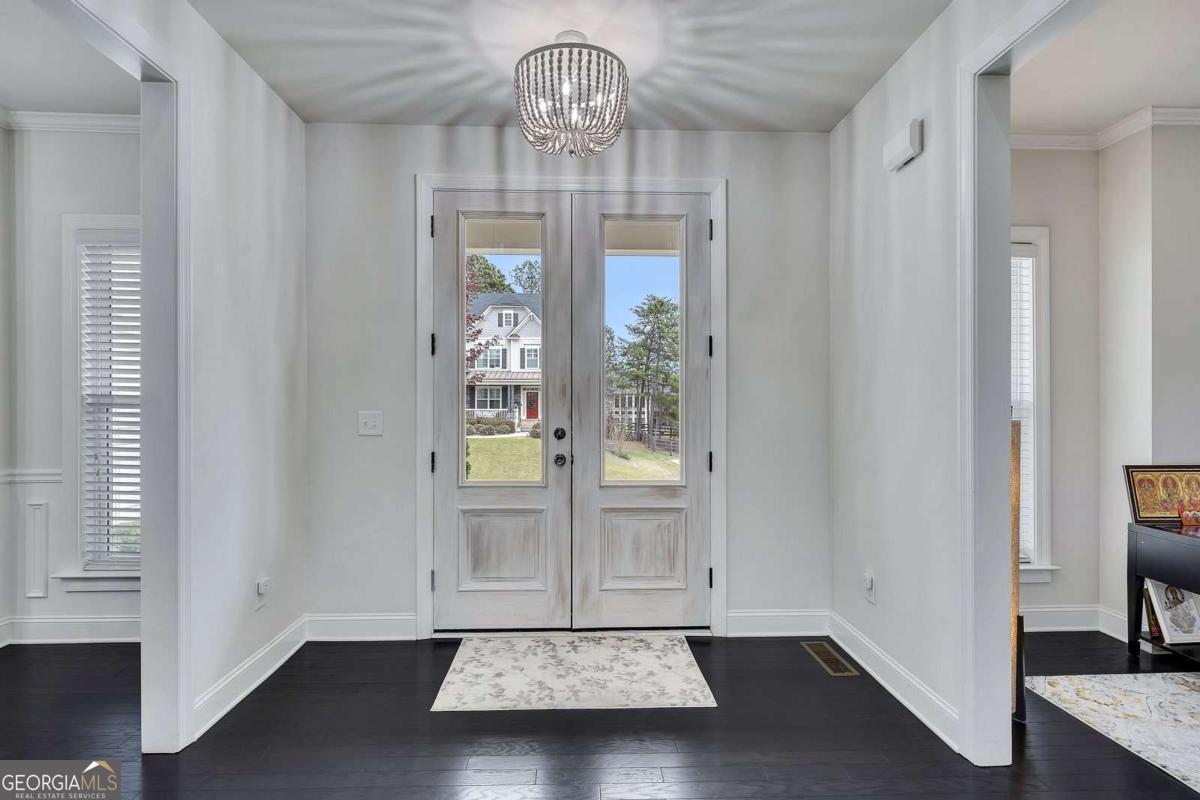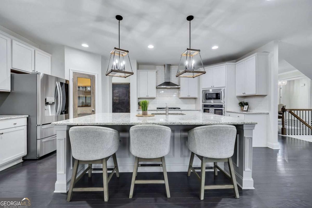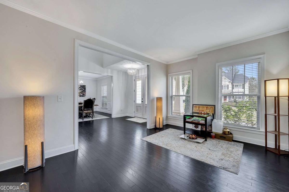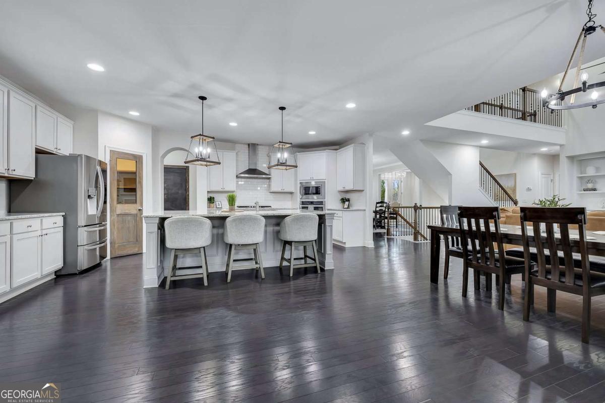 Welcome to this exceptional Toll Brothers luxury estate! This home is a move-in-ready "Show Home" with a partially finished basement and a heated salt water pool, situated in the highly desirable Creekside at Parkstone community. Conveniently located just minutes from shopping, dining, parks, and schools, this home offers an open-concept living space, and combines elegance, functionality, and indoor-outdoor entertaining. Spanning an expansive 6069 SF, this home makes a stunning first impression with its striking custom Atwood double front doors and soaring two-story wall of windows in the great room, which are tinted for maximum energy efficiency. The interior is defined by high-end finishes, including hardwood floors, crown molding and beamed ceilings. The chef's kitchen is an entertainer's delight, anchored by an oversized island, premium stainless steel appliances, and a custom pantry door that adds a sophisticated designer touch to the walk-in pantry. This space flows seamlessly into a vaulted keeping room with a second fireplace and built-in bookshelves. In the grand light-filled two-story family room the focal point is a custom fireplace wall featuring custom built-in cabinetry that elegantly anchors the entertainment area. A separate formal dining room creates the perfect setting for gatherings. Designed for multigenerational comfort, the main level includes a formal private office/flex room and a guest suite with a remodeled stepless entry shower featuring an all-quartz surround. Upstairs, the oversized master suite serves as a true architectural retreat, boasting a tray ceiling, a private sitting room/office space, and a spa-inspired master bath with dual vanities, a large soaking tub, and an oversized shower, complemented by separate his and hers walk-in closets. All secondary bedrooms feature private ensuite bathrooms for ultimate comfort. The partially finished daylight terrace level offers vast flexibility, currently housing a media/exercise room, a second great room/game room and a dedicated area prepped for a home theater or in-law suite with a bathroom stub. The exterior is a premier backyard oasis, showcasing a 7.5 ft deep, heated Lanier Pools BioDesign saltwater pool and spa, complete with a cascading waterfall, a "sink-your-feet-in" 4" foam coating and in-pool sun chairs. The property is optimized for modern living with smart home technology, featuring smartphone-controlled exterior front lighting. The entire pool and spa system, including the heating and vibrant LED lighting, is fully controlled through a mobile app, allowing the home-owner to remotely prepare for the retreat. For evening gatherings, a powerful backlight floods the entire pool area with a warm, brilliant glow, transforming the backyard into a high-end resort after dark. Beyond the home, the Parkstone lifestyle is unmatched, offering resort-style amenities including a grand clubhouse, an Olympic-sized swimming pool, 6 lighted tennis courts, pickleball and basketball courts, and a playground. Nature enthusiasts will love the private community fishing lake and miles of scenic, sidewalk-lined walking trails that wind down through the neighborhood. Conveniently located just minutes for GA-400, the Cumming City Center, Halcyon, The Collection at Forsyth, and North Georgia Premium Outlets. This estate offers an unparalleled lifestyle of luxury and convenience.