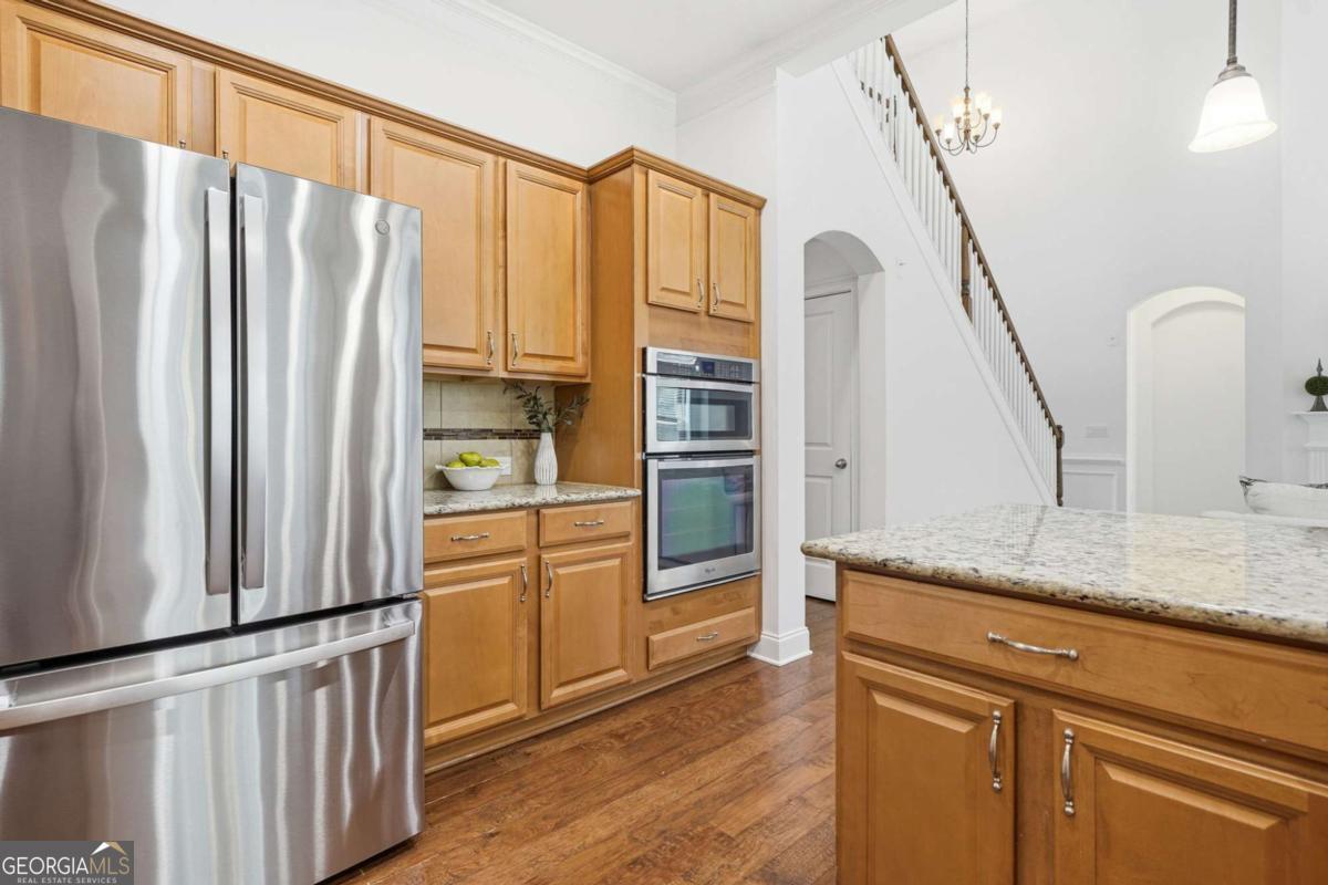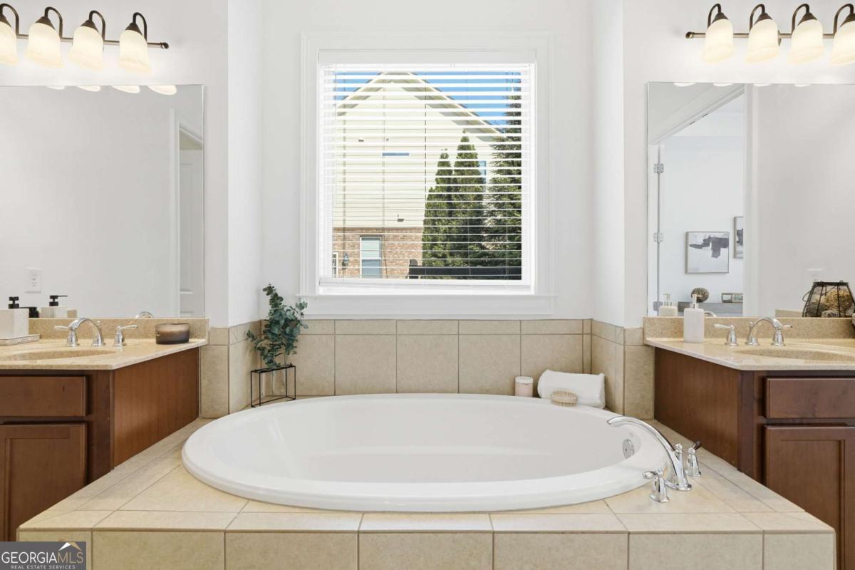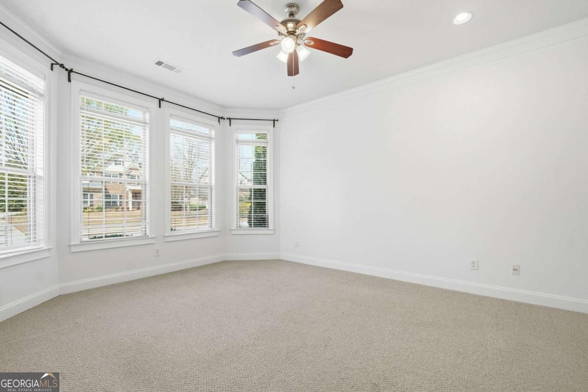 Welcome to a beautifully maintained home that blends comfort, space, and everyday functionality in a desirable Alpharetta location. Inviting living spaces filled with natural light create a warm and welcoming atmosphere from the moment you enter. The main level offers a thoughtful layout that flows easily between living and dining areas, including a separate dining room connected by a butler's pantry, making it ideal for both everyday living and entertaining. The kitchen is well-appointed with stone countertops, a double oven, a breakfast bar, and a walk-in pantry, and opens to a spacious family room with a cozy fireplace, creating a comfortable setting for gathering. The laundry room is conveniently located on the main floor for added ease. The main level also features both the primary suite and a secondary bedroom, offering convenience and flexibility. The primary suite provides a relaxing retreat with a large walk-in closet and a well-designed bath featuring his and her sinks and a tiled shower with a built-in bench seat and handrails. Additional living spaces offer flexibility for guests, work-from-home needs, or hobbies, with a versatile loft or bonus living area and functional layouts with generous storage throughout the home. Outdoor living offers a peaceful setting to relax and unwind, with a back patio overlooking a fenced backyard with a privacy hedge, creating a comfortable space for entertaining or enjoying time outside. A three-car garage adds both convenience and ample storage. Located in a sought-after Alpharetta area, this home provides convenient access to a variety of shopping, dining, and recreation and is in close proximity to the downtown areas of Alpharetta, Milton, and Roswell. Enjoy the vibrant atmosphere of Downtown Alpharetta with its restaurants, boutiques, and community events, or explore nearby destinations like Avalon for upscale shopping and dining. Outdoor enthusiasts will appreciate easy access to the Big Creek Greenway, offering miles of scenic trails for walking, running, and biking. This location provides a balanced lifestyle with convenience, recreation, and everyday comfort.