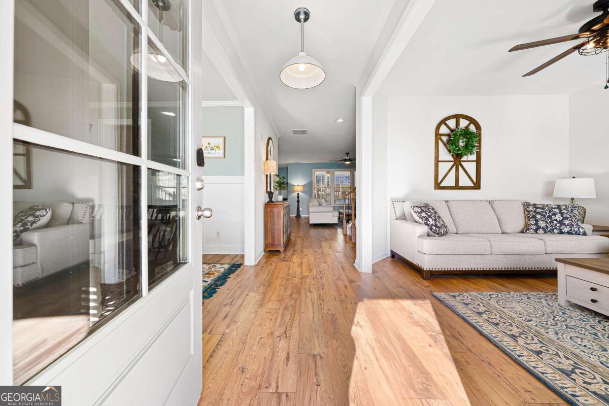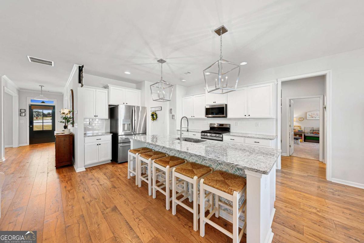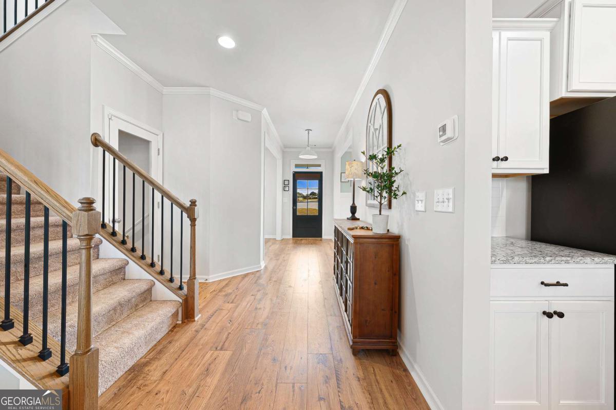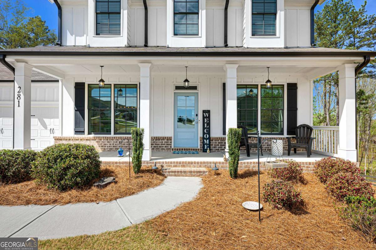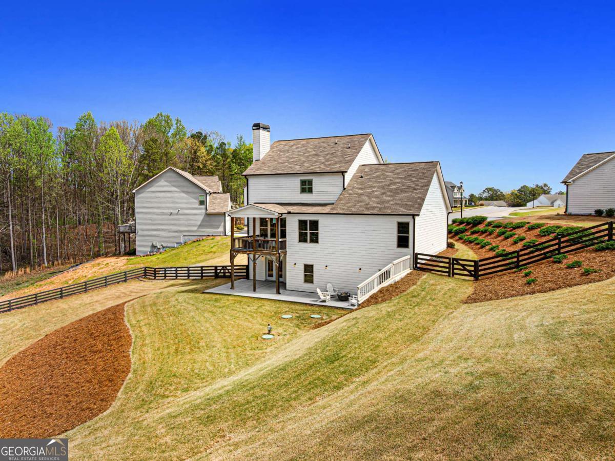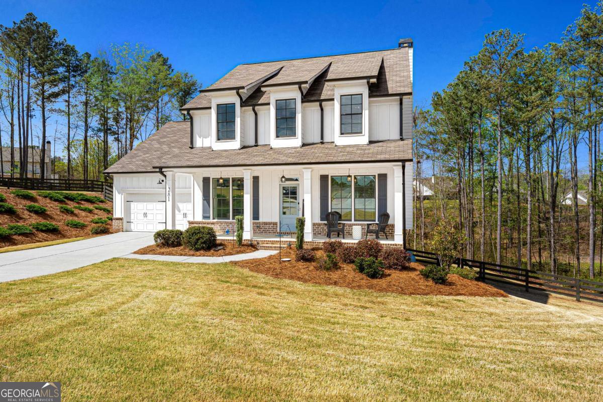 At the end of a quiet cul-de-sac, where privacy, space, and peaceful surroundings come together, this modern farmhouse offers a lifestyle that's becoming increasingly hard to find. Set on over an acre, the fully fenced and beautifully sodded backyard creates a park-like setting that feels both private and inviting - a place where you can truly slow down and enjoy being home. Step inside and you'll immediately notice the open, comfortable layout designed for both everyday living and gathering with family and friends. A dining room and living room provide flexibility for holidays, entertaining, or everyday living. The kitchen overlooks the fireside family room, creating a natural place to connect and unwind. Granite countertops, upgraded stainless steel appliances, an extra-large island, and a walk-in pantry with custom-designed shelving add both style and functionality. Just off the kitchen and family room, the covered porch quickly becomes a favorite place to relax. Whether you're enjoying your morning coffee, winding down at the end of the day, or simply taking in the quiet backyard and surrounding nature, this private outdoor space makes it easy to slow down and enjoy the moment. Tucked away in the back of the home, the main-level guest bedroom and full bath offer a comfortable private area for visitors or extended family. Being out of the way, it can also be utilized as a playroom or a home office. Upstairs, the spacious primary suite offers a peaceful retreat with a private ensuite bathroom featuring double sinks, a soaking tub, and a separate tiled shower. A large custom-designed closet system provides excellent storage and organization. Floored attic space is off of the primary closet adding room for additional storage. Two additional bedrooms, a full bathroom with double sinks, and a convenient laundry room complete the upper level. Upgraded carpet and premium carpet padding throughout the upstairs adds comfort and quality. The partially finished basement adds even more living space with a media room - perfect for movie nights, game days, or relaxing weekends at home. The projector, screen, surround sound system, and console remain! Double doors lead to the extended patio, creating a seamless connection to the backyard and additional space for entertaining. Located near Fort Yargo State Park, Little Mulberry Park, and Sell's Mill Park, outdoor recreation is just minutes away. Convenient access to I-85, Chateau Elan, shopping, dining, Northeast Georgia Medical Center, and medical offices makes daily living easy while still enjoying the privacy of this beautiful setting. Homes like this don't come along often - where thoughtful upgrades, flexible living spaces, and a peaceful setting come together. This modern farmhouse offers more than just a place to live... it's a place to truly feel at home.