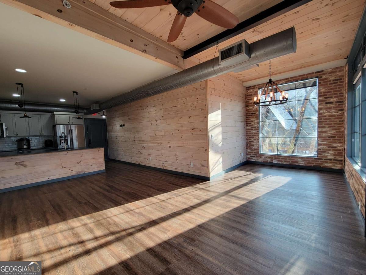 Charming 1BR/1BA Apartment in the heart of downtown Blue Ridge! This unique North Georgia property offers a stunning view of downtown Blue Ridge & is centrally located with convenience in mind with restaurants and shops just outside your door. Inside you will find an open floor plan with where the kitchen opens to the living space, making it easy to dine with & entertain family & friends. The living area offers ample windows and light showcasing the sights and sounds of downtown Blue Ridge. This Apartment has much to offer, including a blend of modern textures, wood flooring, tile in the bathrooms, and deck overlooking downtown Blue Ridge; this one may be just the perfect fit for you!