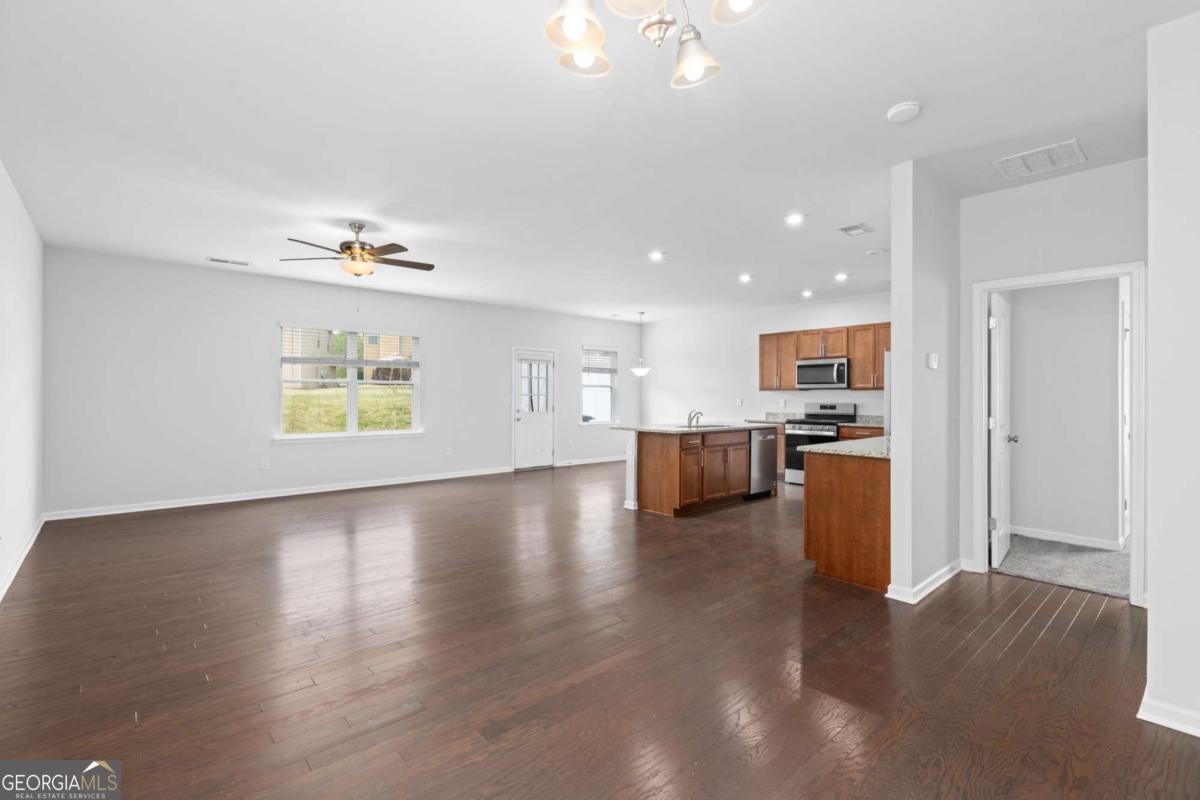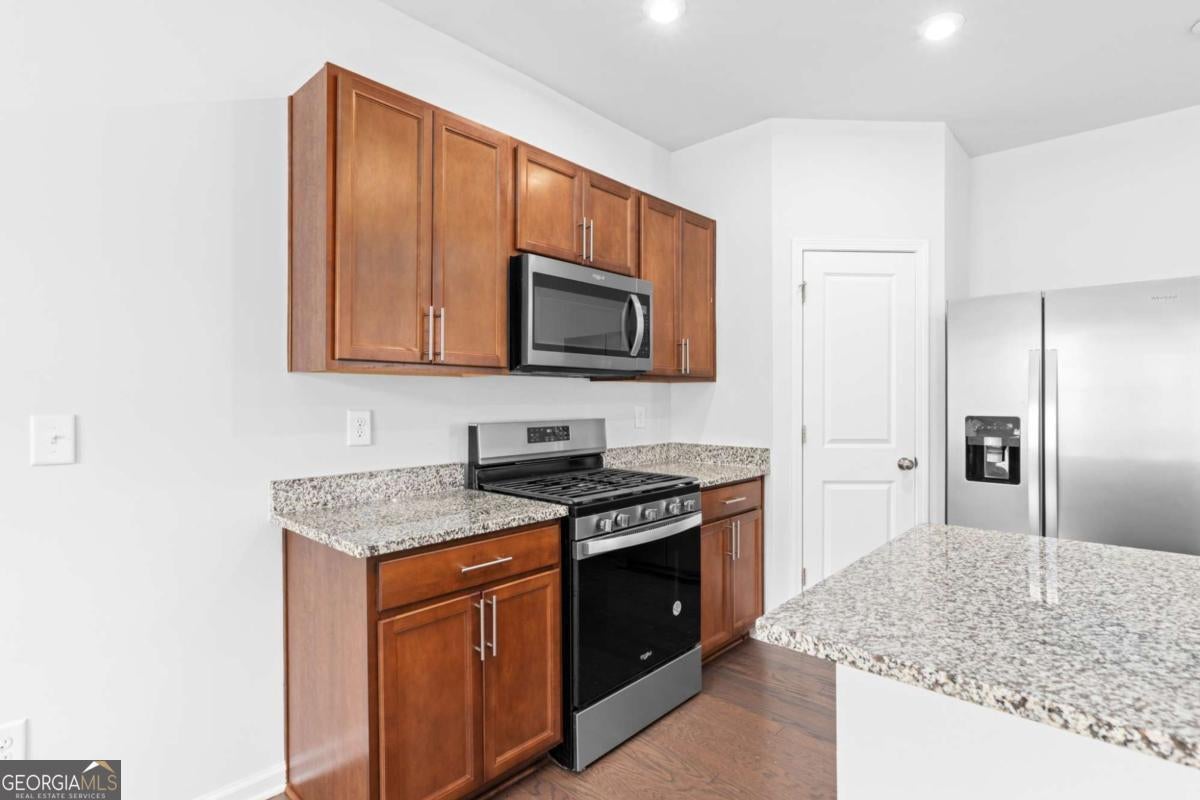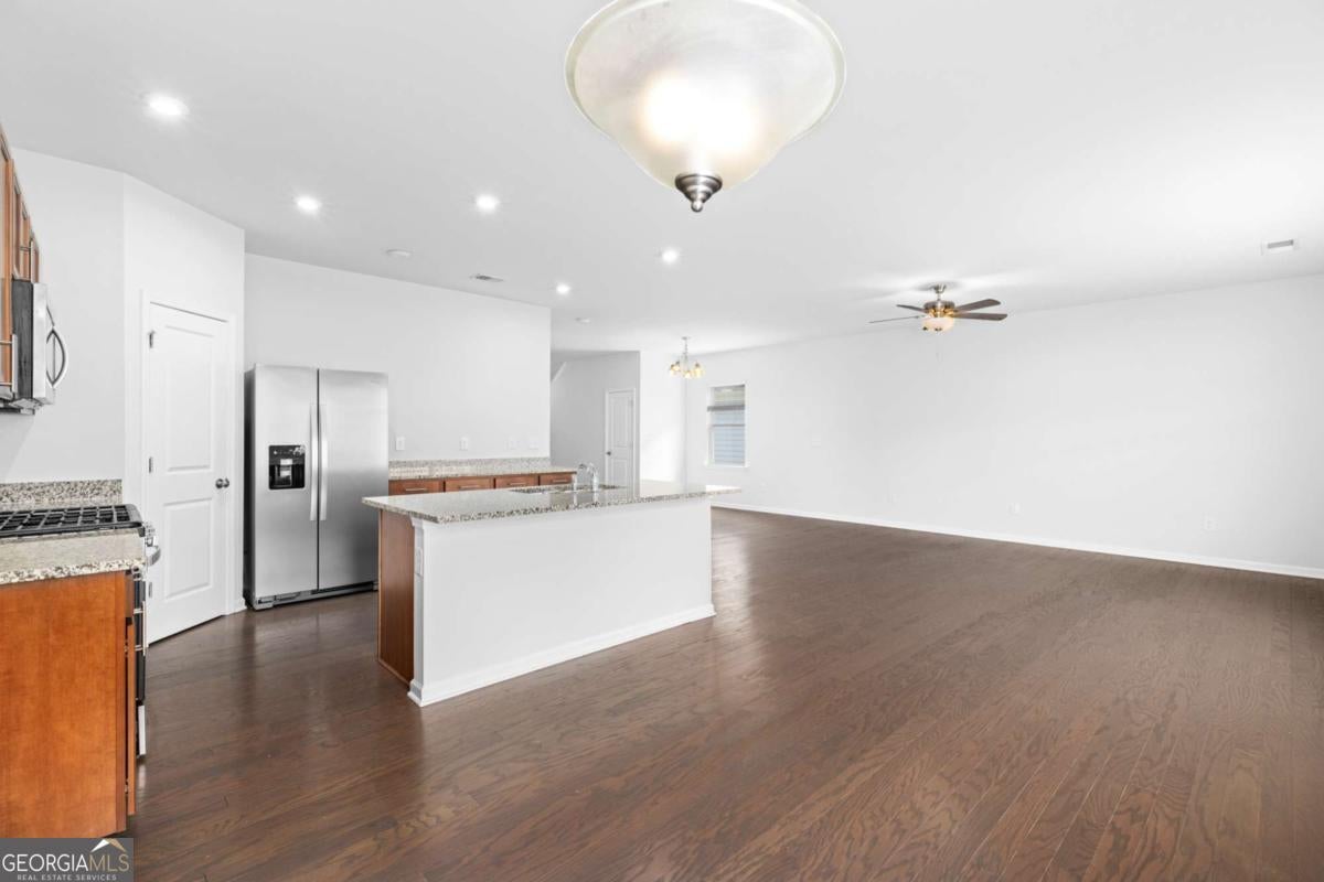Welcome to this beautifully maintained, featuring 4 spacious bedrooms and 3 full bathrooms. The thoughtfully designed layout offers an open-concept main level and abundant natural light throughout. The modern kitchen is perfect for everyday living and entertaining, complete with granite countertops, a large island, stainless steel appliances, and ample cabinet space. The thoughtfully designed layout includes a bedroom and full bathroom on the main level, perfect for guests, a home office, or added convenience. Upstairs, you'll find three bedrooms, including a spacious primary suite with double vanities, a relaxing garden tub, and a separate walk-in shower. Additional highlights include a versatile loft area, ideal for a second living space or home office, and a convenient upstairs laundry room. Enjoy outdoor living with a nice, level backyard and the convenience of a 2-car garage. Located in a desirable community with amenities including a neighborhood pool and park, and just minutes from shopping, dining, grocery stores, and easy access to I-75. This move-in ready home offers comfort, style, and convenience-don't miss this opportunity!