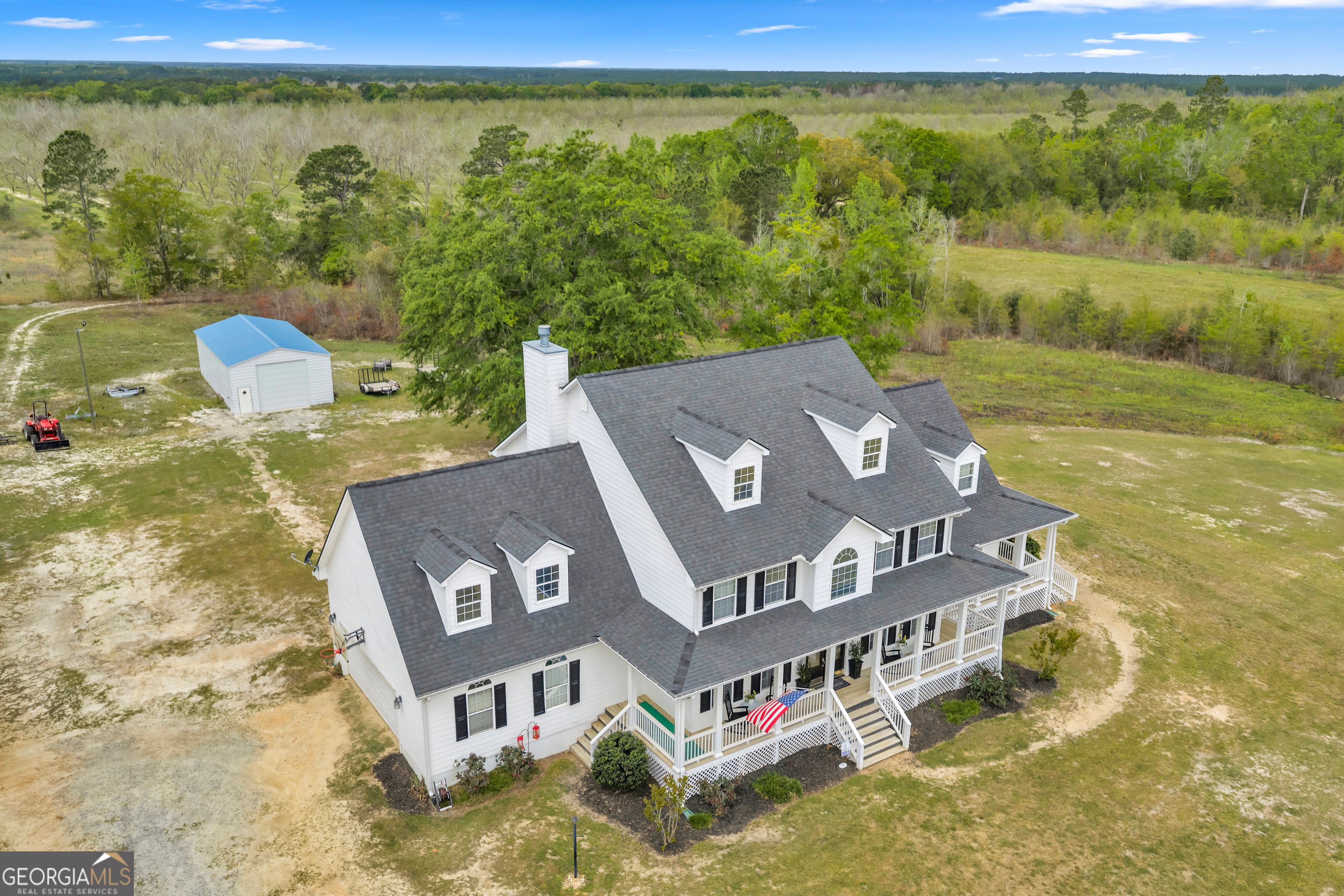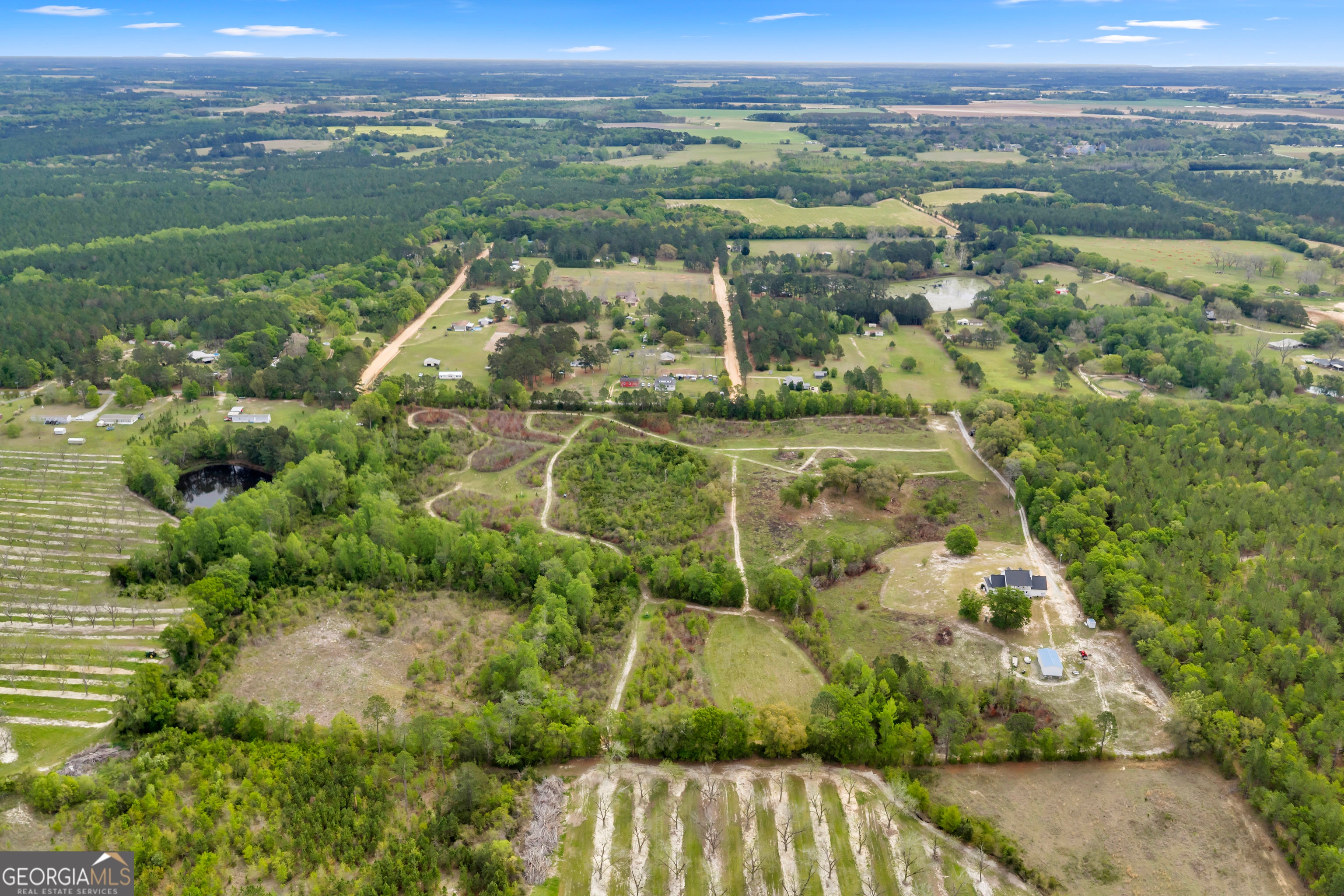 Located at 3341 South County Line Rd in Mitchell County, Georgia, this 40 acre property offers a combination of residential living, recreational use, and hunting opportunities. The property includes a custom-built home constructed in 2007 with approximately 3,392 square feet of heated and cooled living space and over 4,100 square feet under roof. The two-story home features five bedrooms and three and a half bathrooms, including two primary suites. One suite is located on the main level, while the second is upstairs and includes a jacuzzi tub and separate shower. The layout provides flexibility for a variety of living arrangements. The main level also includes a large kitchen equipped with granite countertops, solid cherry wood cabinetry, a center island, gas cooktop, double ovens, microwave, and breakfast area. The kitchen connects directly to the family room, which includes a natural wood-burning fireplace. Additional interior features include a formal entry with an approximately 18-foot ceiling, a dedicated office space, mud room, separate laundry room with cabinetry, and a bonus room currently used as a theater room. Flooring consists of hardwood and tile on the main level, with carpet in the upstairs bedrooms. Both HVAC systems have been replaced within the past five years, and the architectural roof was replaced in November 2021. Outdoor features include a wrap-around front porch and upper and lower rear balconies that overlook the acreage. The land consists of approximately 40 acres, with roughly 25 acres cleared. The remaining acreage provides wooded habitat suitable for wildlife. The property includes an established internal road system and maintained trails suitable for ATVs, walking, or horseback riding. The land is set up for recreational use with established food plots and supports populations of deer, turkey, and quail, along with other small game. A natural spring located near the front of the property may offer potential for future water feature development, subject to buyer verification. A 24x48 shop constructed in 2023 provides space for equipment storage, including tractors, utility vehicles, or other outdoor gear. The property is serviced by a well with a five-stage filtration system. Surrounding land includes large tracts of agricultural and wooded acreage, contributing to privacy and wildlife activity in the area. The property is accessible by South County Line Road and is located within reasonable driving distance of several nearby cities, including Albany, Camilla, Tifton, Thomasville, and Tallahassee. This property offers a mix of residential, agricultural, and recreational possibilities suitable for a variety of uses including hunting, horseback riding, and rural living.