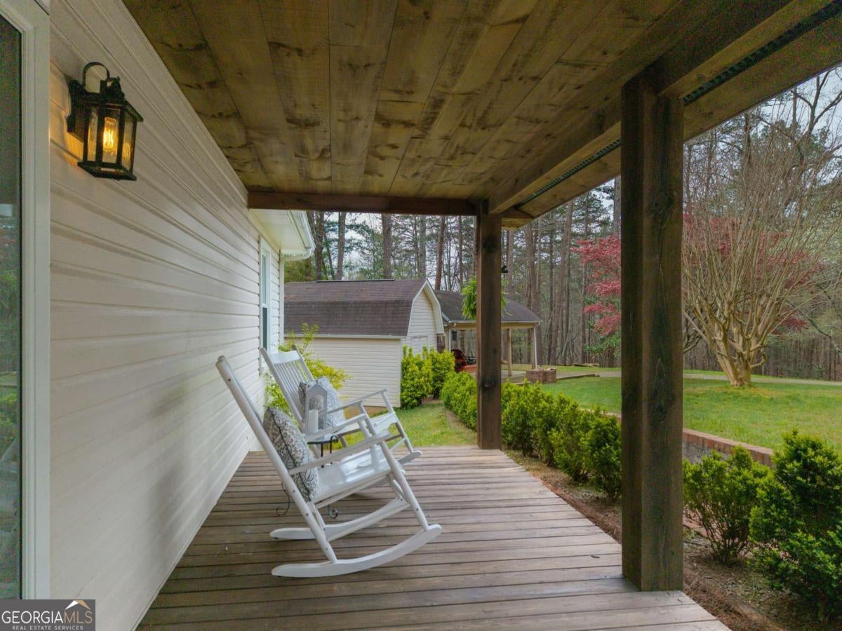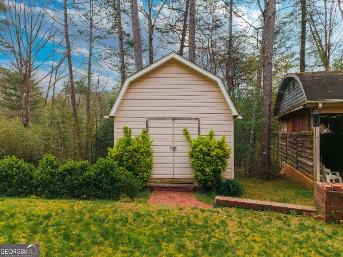 Escape to the North Georgia mountains with this beautifully updated 3 bedroom, 2 bath home, perfectly situated on over 2 acres of private, peaceful land. Tucked away at the end of the road, this property offers a rare level of privacy for those craving space and serenity. Inside, the updated kitchen features marble countertops, newer cabinetry, and a classic subway tile backsplash, flowing seamlessly into the cozy living and dining areas. The primary suite includes an updated bath and generous closet space. Major improvements have already been taken care of, including HVAC, main-level windows, a new shingle roof, and fresh interior paint. Step out back to the covered porch and take in the quiet mountain setting, ideal for morning coffee or winding down in the evenings. The full unfinished basement provides endless potential, already featuring a finished third bedroom and plumbing stubbed for an additional bath. Complete with a 2-car garage, pole barn, shed, and outbuilding, this property offers plenty of room for storage, hobbies, or all your outdoor gear. Whether you are looking for a full-time residence or a weekend mountain getaway, this one checks all the boxes.