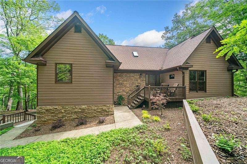 Welcome to luxury living in the mountains! This home has been masterfully remodeled and is nestled in the heart of the exclusive Bent Tree Community. Blending luxury with rustic charm, it is ready for immediate enjoyment. Whether you're seeking a peaceful full time residence or an idyllic weekend getaway this home delivers on all fronts. Inside you'll be greeted with an inviting foyer and then immediately be struck by the soaring two-story great room, where a stunning wall of windows offers ever changing views that evolve with the seasons. The space is anchored by tongue and groove cedar vaulted ceilings, a grand stacked stone fireplace surrounded by custom built-ins, and rich walnut beams that exude timeless elegance. The kitchen is nothing short of spectacular, with a custom made 11 foot live edge wood island that comfortably seats seven, perfect for gathering. A charming coffee bar with wood shelves adds to the home's character and offers the ideal spot to start your day. The expansive master suite is a true sanctuary, featuring a private covered porch for those cozy, relaxing nights. The spa like master bath is a work of art, with shiplap walls, custom tile flooring, a soaking tub, and a frameless glass tiled shower. His and hers vanities and walk in closets ensure ample space and functionality. Outdoors, the new 1,000-square foot upper deck is an entertainer's dream and is the perfect place to watch wildlife. Upstairs, two spacious bedrooms with accented walls, and brand-new carpet provide cozy retreats. A loft area with a built-in desk offers an ideal work from home space. Downstairs, you'll find a renovated entertainment zone and living area, two updated bedrooms and full bathroom. The sprawling lower deck boasts a brand new 7-person hot tub. Beyond the home's impressive interior, the exterior dazzles with fresh paint, retaining walls, and landscaping that enhances the large double lot. A long river rock bed and a charming walking bridge along with four new maple trees have been added. The home also includes a generator, new furnace and updated workshop. As part of the coveted Bent Tree Community, residents have access to a host of amenities, including a 110 acre lake for fishing, boating, and swimming, a championship golf course, a clubhouse with a restaurant & bar, pickleball and tennis courts, an equestrian center with riding trails, and miles of hiking trails and more, all just minutes from your door!