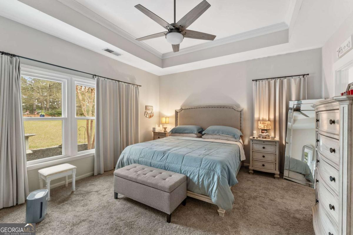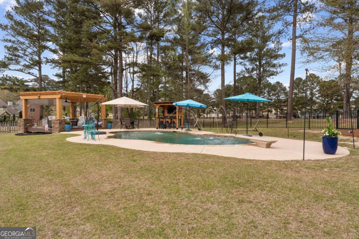 I don't even know where to begin with this home! From the gorgeous curb appeal to the resort style backyard sitting on the 11th fairway, this home is amazing! And probably the greatest feature of this home is what has been done to make it like no other home in the Mirror Lake Golf Community. The painted white brick brought this house to life. Accented with new black gutters, new triple-pane, double hung windows throughout. New doors. New roof, newer AC, new fixtures and lighting, new paint inside and out, new plantation shutters in picture window. The 8' MaxCraft front door is the entrance to a home that will wow you! Step into elevated ceilings, hardwood floors, a kitchen overlooking the backyard with a picturesque view, a master bedroom and bathroom that is simply stunning! The tile alone in this house is so unique and upscale that it lends to every room its in. The master bathroom has tongue-n-groove ceilings, extended marble tile shower, motion lighting and a vanity that everybody wants and needs! There are so many living spaces in this home that you can just see it was designed for family and friends. Upstairs you'll find 4 beautiful and pristine bedrooms and 2 bathrooms. Now, let's step into the backyard oasis. Beautiful weather? Leave the ProVia French doors open and just enjoy living this lifestyle. Step onto the extended paver patio that doubles as a grill master's haven and outdoor living. Then head up to the pool area and enjoy the heated pebble tech pool with tanning shelves and waterfalls. Or relax and watch some TV in the Cabana. Maybe enjoy some drinks and the Braves at the custom bar. Views of Mirror Lake and the 11th Fairway are incredible! Wrought-iron fence surrounds the backyard without closing it in or blocking any of the amazing views. You'll enjoy all that Mirror Lake's amenities offer, including two 18-hole golf courses, the Shoreline and Connors Road pools and playgrounds, tennis and pickleball courts, a clubhouse, and serene lakeside walking trails. I can't imagine a better home both in looks and condition than this one. What a blessing it will be for the next Homeowner!