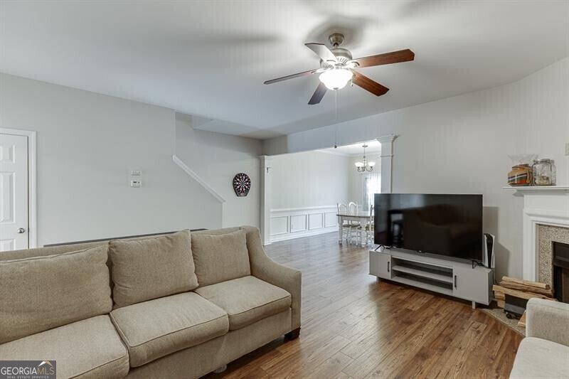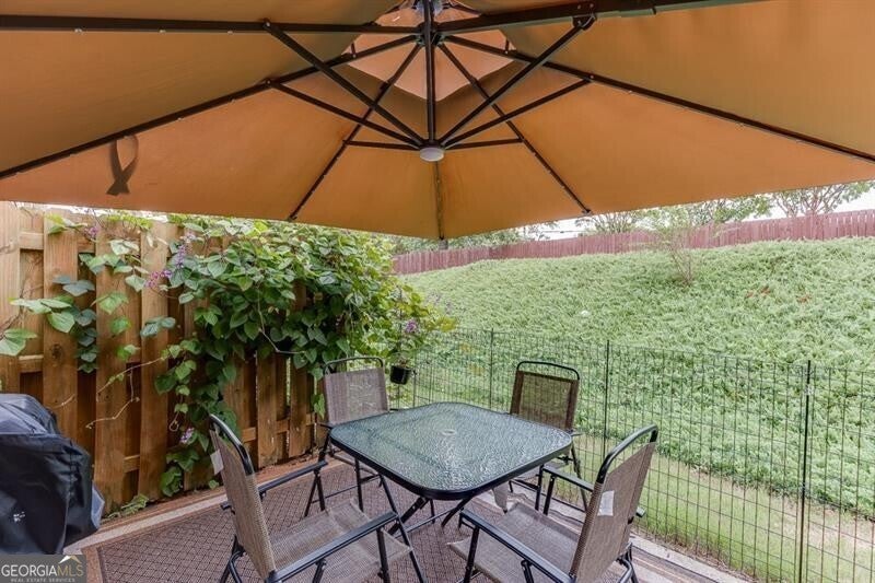 Welcome to this charming 3-bedroom, 2.5-bath townhome featuring an attached 1-car garage, located in the desirable Sherwood Terrace community; renowned for its resort-style amenities and unbeatable convenience. Step inside to a welcoming foyer that opens to a spacious living room with a cozy fireplace, perfect for relaxing evenings. The open-concept kitchen boasts white cabinetry, granite countertops, stainless steel appliances, a spacious pantry, and a generous dining area ideal for entertaining. Luxury flooring flows throughout the main areas, which also includes a guest powder room. Upstairs, the oversized owner's suite offers vaulted ceilings, a sitting area, a spa-like bath with a separate tub and shower, dual vanities, and a huge walk-in closet. Two additional bedrooms, a full bath, and a large laundry room with extra storage complete the upper level. Enjoy your private fenced backyard, perfect for kids or pets. Recent updates include a new roof and fresh exterior paint, both handled by the HOA-offering peace of mind and low-maintenance living. Community amenities include a swimming pool, tennis courts, pickleball, basketball court, playground, clubhouse, fitness center, and pet park. Located just minutes from Hwy 400, Hwy 141, Buford Dr, Northside Hospital, top-rated schools, parks, and The Marketplace with Costco, Best Buy, TJ Maxx, and more. This move-in-ready home combines style, comfort, and convenience in one amazing package. Don't miss it!