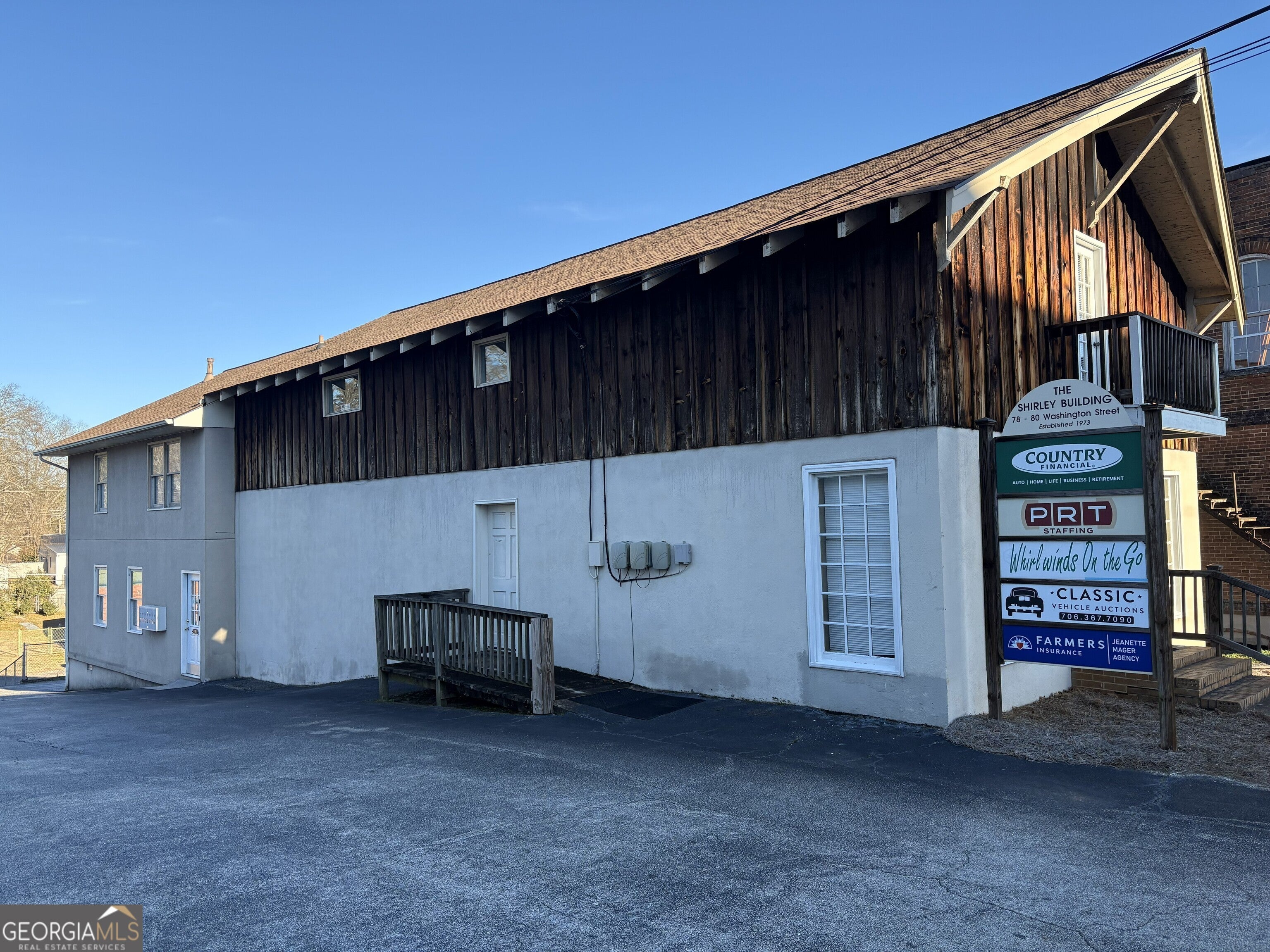 Opportunities like this do not come often! Location, Location, Location!!! in downtown Jefferson across from the Jackson County Historic Courthouse. In the documents, there is a drawing (inexact) with the building "footprint" and APPROXIMATE sizes of the rooms.There is a master office space with eleven additional office spaces, three restrooms and a common area/break room in the building.This is a great location for insurance/financial agencies, medical records space, art studios, psychologists' office, mortgage companies, real estate/law offices, etc. Utilities include: internet, electricity, gas, water, sewage and garbage.The front half of the building was constructed in 1973. In 1980, the back portion of the building was constructed. A new roof was installed in 2022.There are two HVAC units.There is a location for signage near the street.There are fourteen paved parking spaces at the building level with additional spaces on College Street just behind the building. Lot extends from Washington to College Street. This is one of few buildings in Jefferson having parking on the property.The building has two addresses (78 and 80 Washington Street). There are seven mailboxes on the wall near the parking lot. Due to the office spaces being rented currently, buyers' agents please contact listing agent to accompany you when showing the property. Selling agent must be present during showing.