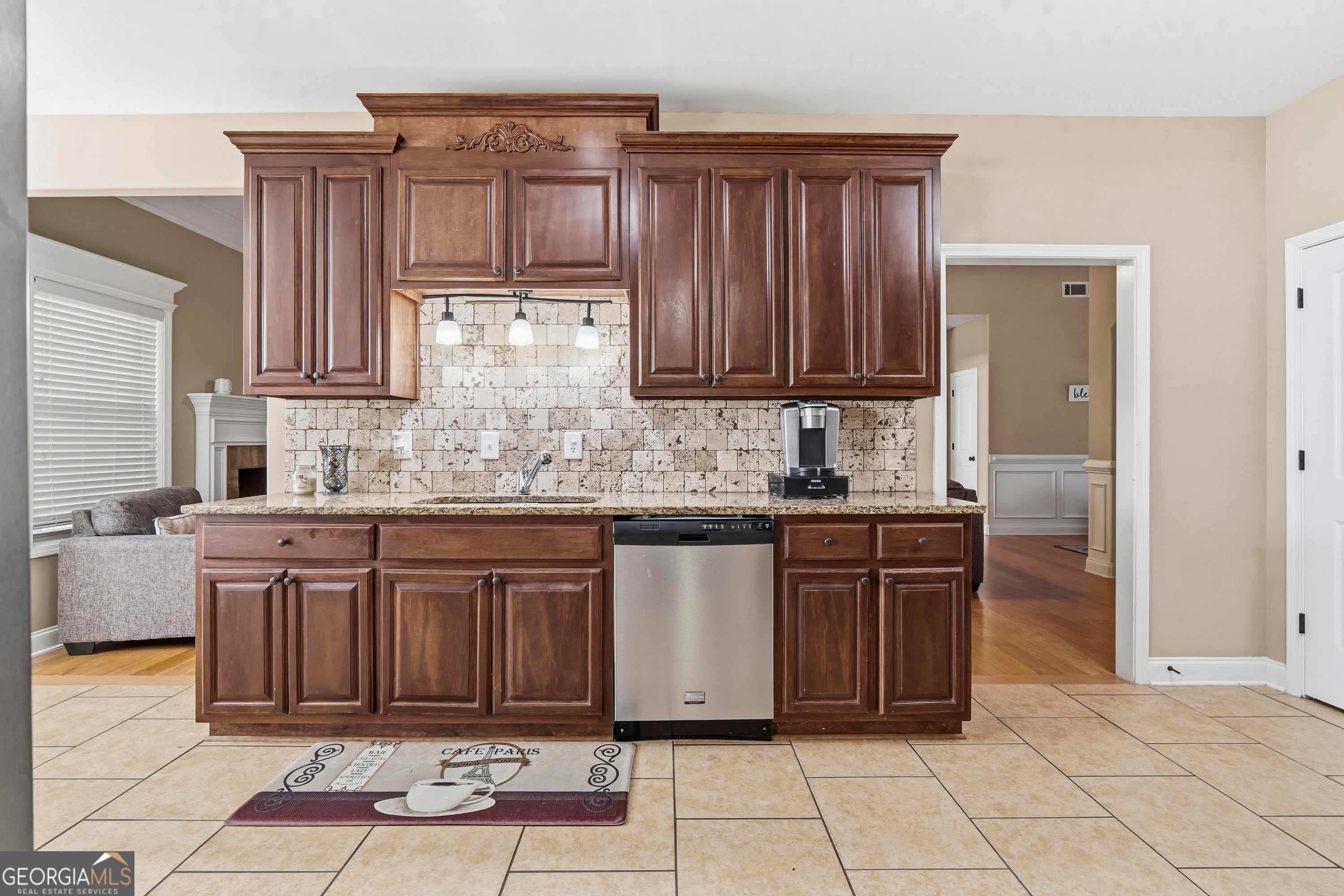 Welcome to this beautifully and spacious home designed for both comfort and style. Featuring a desirable split layout, the main level offers a relaxing primary suite along with a private guest bedroom and full bath, and an additional living space or den space complete with its own cozy fireplace, perfect for visitors or multi-generational living. Step inside to an inviting open floor plan highlighted by soaring ceilings and a generous living room anchored by a cozy gas fireplace. The formal dining room showcases rich hardwood floors, creating an elegant space for gatherings. The kitchen is a true centerpiece, thoughtfully designed with granite countertops, stainless steel appliances, tile flooring, a stylish backsplash, and not one--but two--pantries for ample storage. An adjoining eat-in area flows effortlessly into a versatile flex space or home office, complete with its own fireplace. The primary suite is a true retreat, featuring a tray ceiling and a spa-inspired bath with a garden tub, dual vanities, a walk-in shower, and a spacious closet. Upstairs, you'll find three generously sized bedrooms and an additional full bathroom, providing plenty of room. Enjoy outdoor living at its best with a screened-in porch just off the kitchen, an extended patio ideal for entertaining or grilling, a fully fenced backyard, and a sprinkler system for easy maintenance. With no HOA and a convenient location near Macon, Warner Robins, and shopping, this home offers the perfect blend of privacy, space, and accessibility.