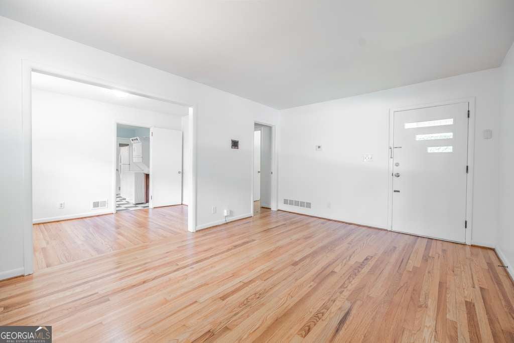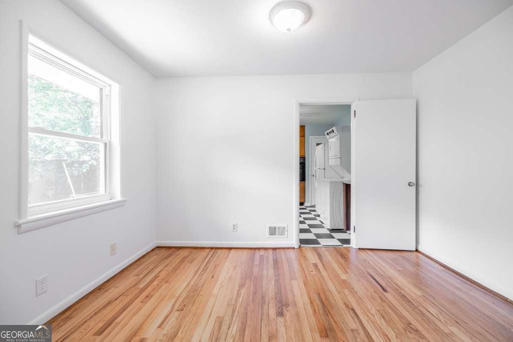 Recently updated front unit of duplex with a fantastic covered porch overlooking a quiet cul-de-sac. Freshly painted throughout and move in ready! Two generously sized bedrooms, spacious living room, separate dining room, with newly refinished hardwood floors. The dining room is perfect for entertaining or makes a great office for working at home. The large kitchen has lots of cabinet and counter space for meal prep and storage. A separate side door from the kitchen leads to the fenced-in yard. Easy walk to Winnona Park Elementary and all City Schools of Decatur Pre-K - 12! Just over a mile walk to Oakhurst Village and Decatur Square. Walk to nearby parks, McKoy, Dearborne, Winnona, and Legacy Park. Newer appliances including stove, dishwasher, range hood, fridge, full-size washer/dryer. Updated bath with newer sink, toilet, and shower head. Newer energy efficient central AC includeing ductwork!. Energy efficient windows , thorughout, let in wonderful natural light. WATER, LAWNCARE, and PEST CONTROL are INCLUDED in rent! Security deposit along with first and last month's rent due at lease signing. Credit/background check required.