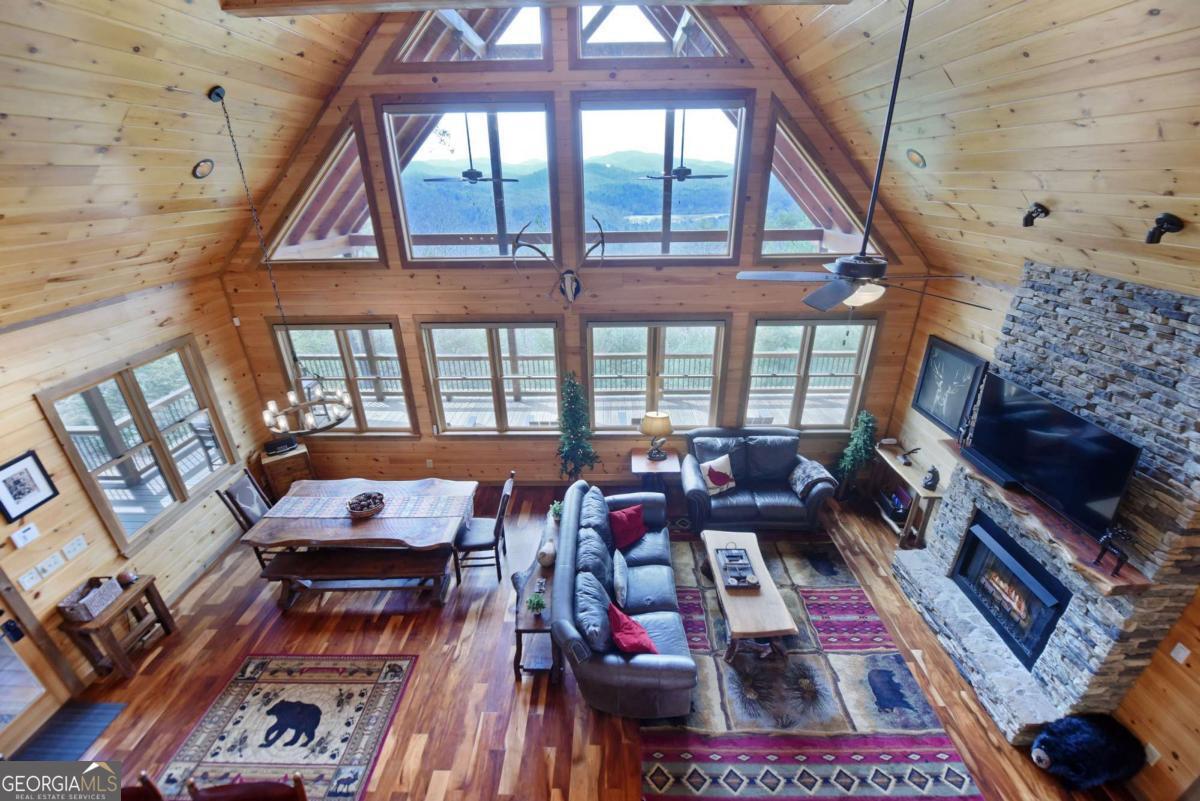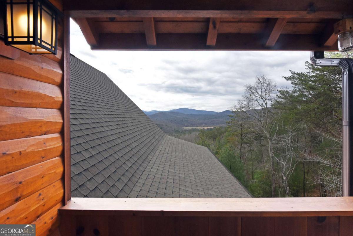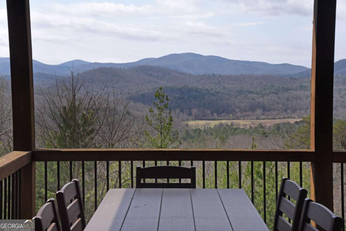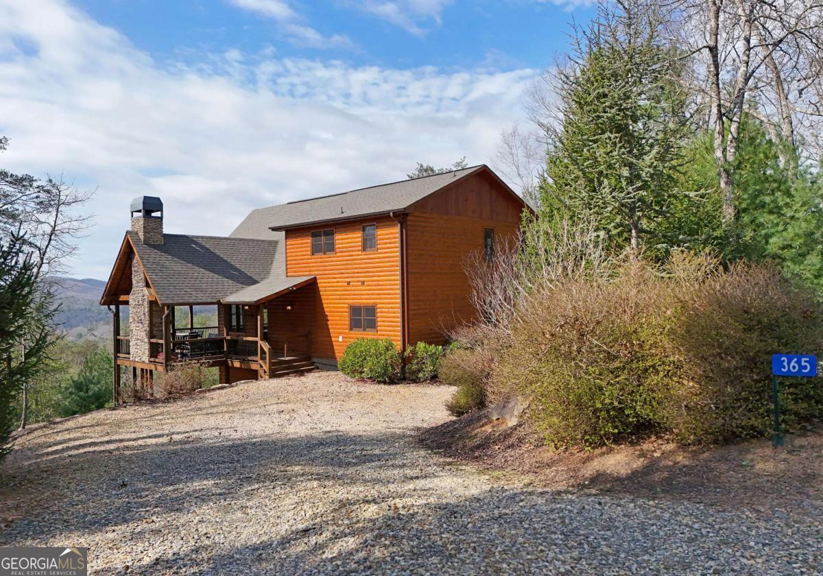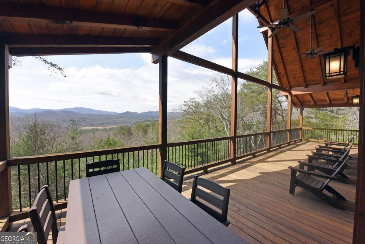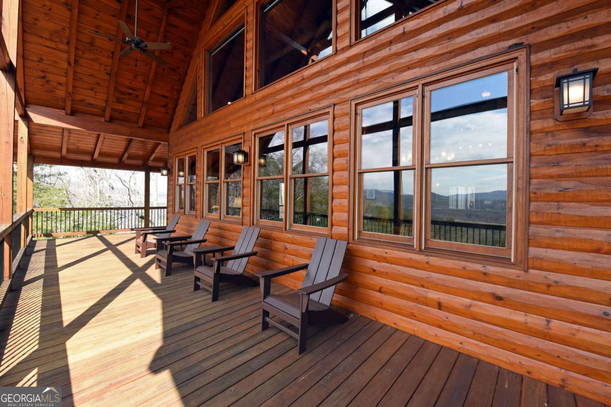 Perched high atop the mountain in the heart of the Aska Adventure Area, this richly appointed chalet captures the true spirit of rustic luxury & timeless mountain living. Nestled on a private cul-de-sac w/in a gated community, the setting offers unmatched peace & seclusion, surrounded by beautifully landscaped grounds & the natural beauty of the North Georgia mountains. Breathe in the crisp, clean air as you take in breathtaking, long-range mountain views that stretch endlessly into the horizon-an ever-changing backdrop filled with wildlife & quiet serenity. Crafted w/hand-hewn log siding & warm, natural finishes, the home welcomes you with an authentic yet refined mountain aesthetic. A dramatic wall of windows brings the outdoors in, filling the open-concept living spaces with light while perfectly framing the panoramic views. Gather around the glow of floor-to-ceiling stacked stone fireplaces in the main level great room, lower-level family room, or out on the inviting party porch; each space designed for comfort, connection & making memories. Step outside to expansive wrap-around decks & a private master balcony, where mornings begin with sunrise over the mountains & evenings end under a canopy of stars. Offered fully furnished w/high-end, thoughtfully curated pieces, this home is completely turnkey-ready for immediate enjoyment or a seamless investment opportunity. The cabin features two luxurious master ensuites on the main & upper levels, while the finished terrace level offers a spacious family room w/fireplace, wet bar, oversized bedroom, & full bath. Kitchen & baths showcase upgraded cabinetry & granite countertops, complemented by rich hardwood flooring throughout. Perfectly positioned just minutes to hiking, kayaking, tubing & fly fishing on the Toccoa River & a short drive to Downtown Blue Ridge's dining, shopping, wineries, & breweries, this is where every sunrise feels like a retreat & every sunset settles in w/the warm glow of a true mountain escape.