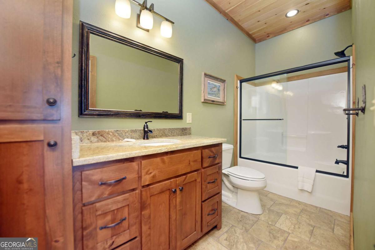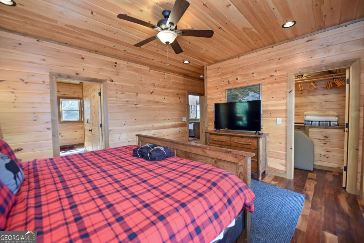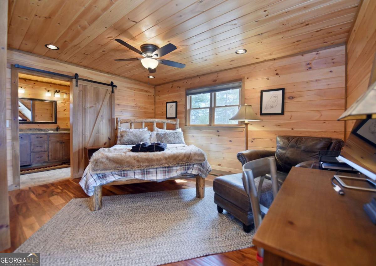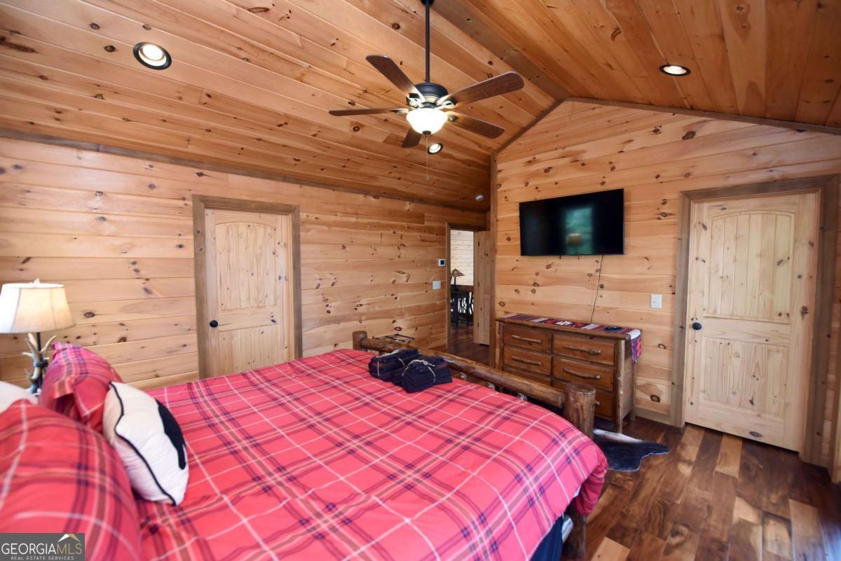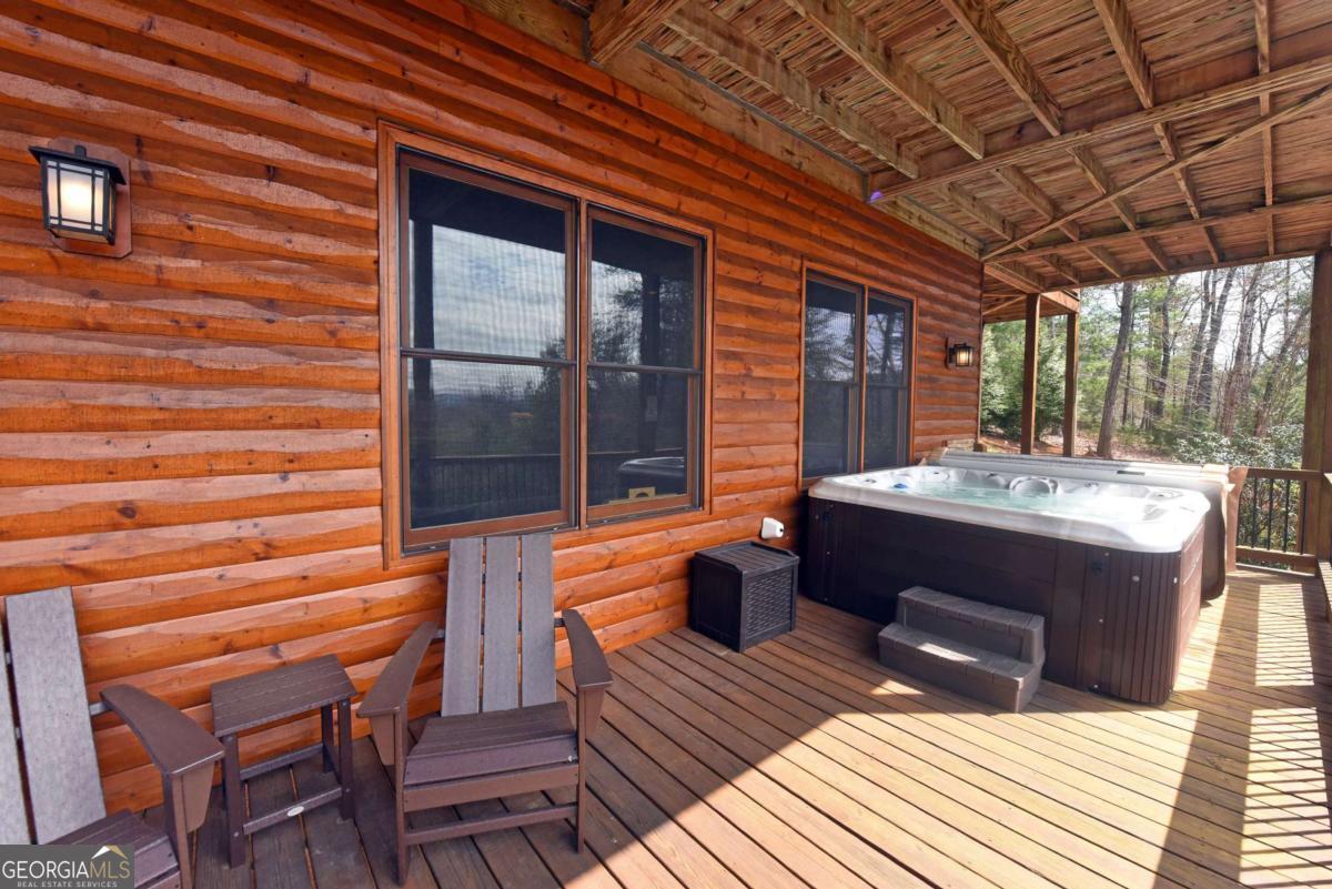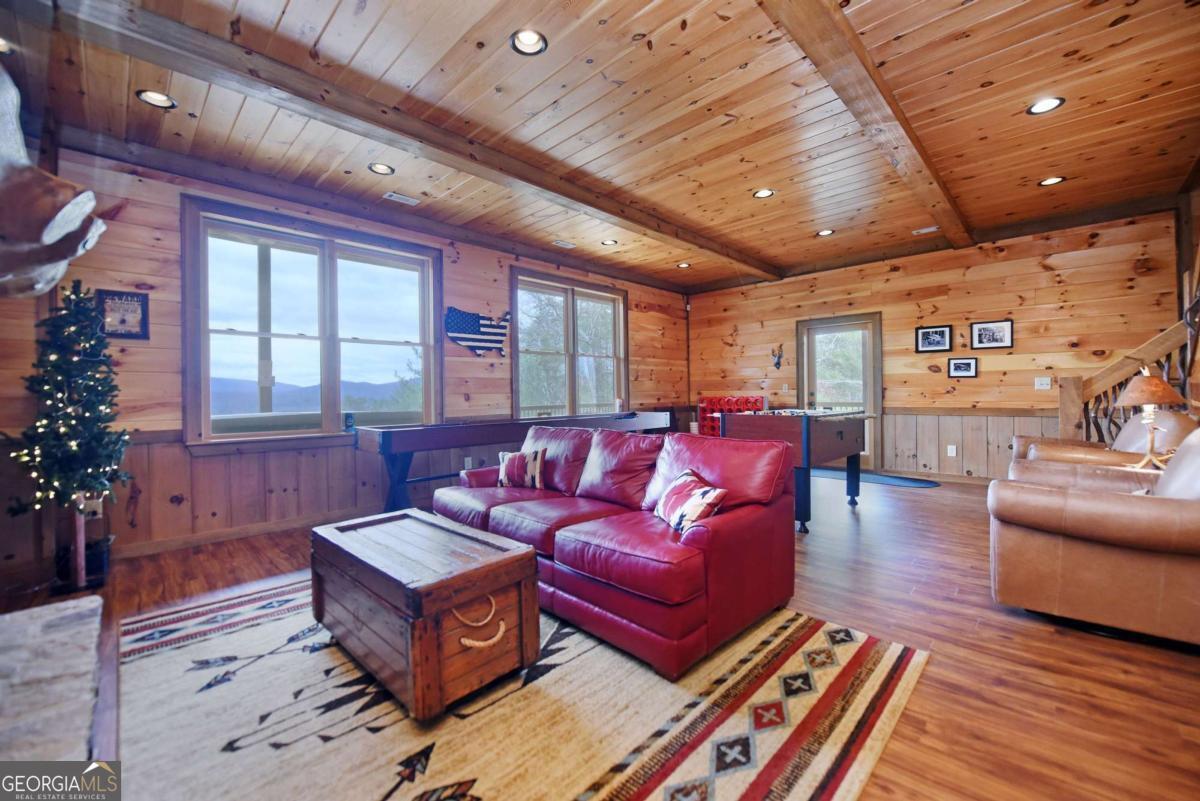 Perched high atop the mountain in the heart of the Aska Adventure Area, this richly appointed chalet captures the true spirit of rustic luxury & timeless mountain living. Nestled on a private cul-de-sac w/in a gated community, the setting offers unmatched peace & seclusion, surrounded by beautifully landscaped grounds & the natural beauty of the North Georgia mountains. Breathe in the crisp, clean air as you take in breathtaking, long-range mountain views that stretch endlessly into the horizon-an ever-changing backdrop filled with wildlife & quiet serenity. Crafted w/hand-hewn log siding & warm, natural finishes, the home welcomes you with an authentic yet refined mountain aesthetic. A dramatic wall of windows brings the outdoors in, filling the open-concept living spaces with light while perfectly framing the panoramic views. Gather around the glow of floor-to-ceiling stacked stone fireplaces in the main level great room, lower-level family room, or out on the inviting party porch; each space designed for comfort, connection & making memories. Step outside to expansive wrap-around decks & a private master balcony, where mornings begin with sunrise over the mountains & evenings end under a canopy of stars. Offered fully furnished w/high-end, thoughtfully curated pieces, this home is completely turnkey-ready for immediate enjoyment or a seamless investment opportunity. The cabin features two luxurious master ensuites on the main & upper levels, while the finished terrace level offers a spacious family room w/fireplace, wet bar, oversized bedroom, & full bath. Kitchen & baths showcase upgraded cabinetry & granite countertops, complemented by rich hardwood flooring throughout. Perfectly positioned just minutes to hiking, kayaking, tubing & fly fishing on the Toccoa River & a short drive to Downtown Blue Ridge's dining, shopping, wineries, & breweries, this is where every sunrise feels like a retreat & every sunset settles in w/the warm glow of a true mountain escape.
