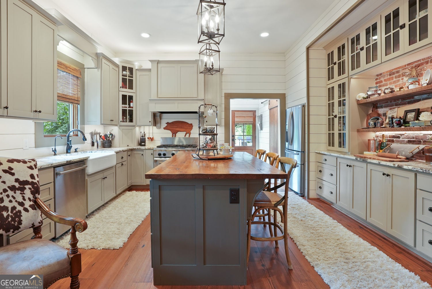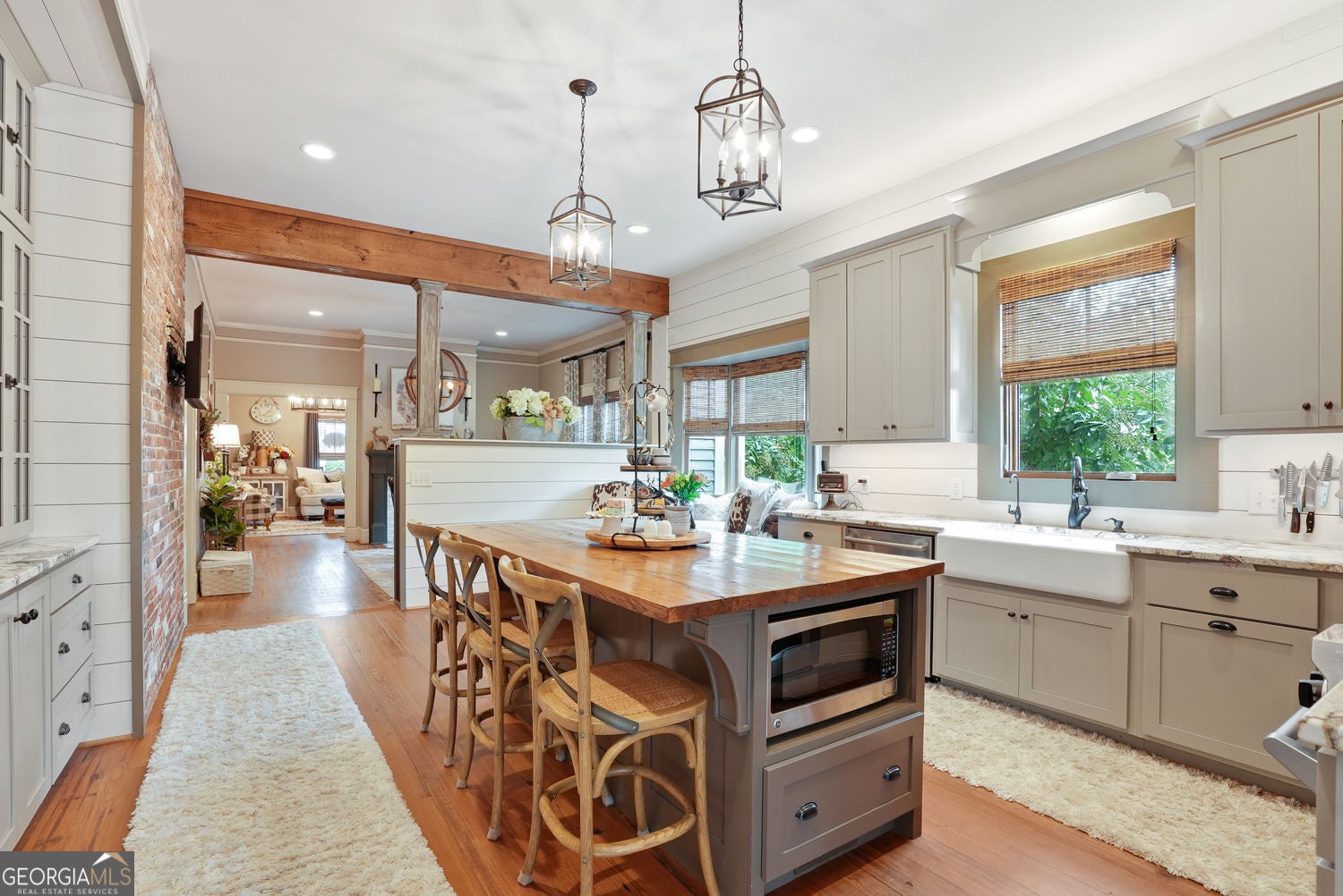 The Brewer-Hamby House - Historic 1923 Craftsman with Modern Luxury in Downtown Clarkesville! This landmark home has been fully restored in authentic Arts and Crafts style while seamlessly integrating high-end updates and additions. The property includes a 3BR/3.5BA main residence (3,050 sqft), a 2BR/1BA guest cottage (928 sqft), and a resort-style saltwater pool with poolhouse. The main home highlights its 1920s character with original heart pine and oak floors, preserved newel posts, classic brick masonry, 10+ ft ceilings, custom molding, shiplap walls, and period hardware and fixtures. The gourmet kitchen is a centerpiece with butler's pantry, granite counters, farmhouse sink, large custom oak butcher-block island, KitchenAid gas range, and cozy built-in breakfast nook. A spacious mudroom with walnut barn door, second pantry, sink, and beverage fridge connects seamlessly to the pool and patio for entertaining ease. The main-level owner's suite offers a spa-like retreat with clawfoot soaking tub, oversized double shower, dual vanities, and walk-in closet with laundry. Upstairs, a large bonus room provides flexible living space and ample storage. Outdoor living is exceptional with lush perennial gardens, vegetable garden, blueberry bushes, rocking-chair front porch, fire pit, expansive decking, and in-ground saltwater pool with full bath poolhouse. The charming guest cottage features 2BR/1BA, vaulted great room, full kitchen, rocking-chair porch, and backyard, perfect for family, guests, or income potential. Located in a desirable neighborhood of quality homes, this property is just a short walk to downtown Clarkesville's boutiques, restaurants, and Greenway, and minutes to wineries, hiking, and state and national parks. Approx. 80 miles to both Atlanta and Greenville. Potential short term rental possibilities for both houses. Seller has rental history for rental house.