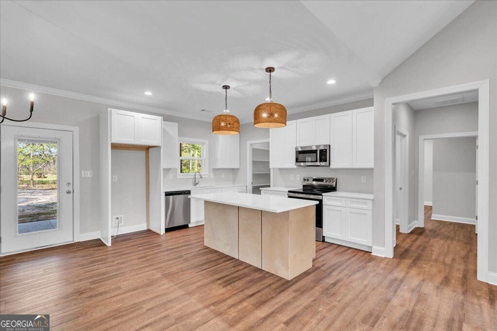 BEAUTIFUL NEW CONSTRUCTION IN PRIME LOCATION- Just minutes from the City! Don't miss this stunning new build featuring an open, split floor plan that seamlessly combines the kitchen, dining, and great room into one spacious and inviting living area. The well-appointed kitchen includes a large island with bar seating, quartz countertops, stainless steel appliances, and custom cabinetry--perfect for entertaining or everyday living. the owner's suite is thoughtfully designed with a luxurious bathroom featuring double vanities and a tiled walk-in shower. Situated on a picturesque lot surrounded by mature hardwood trees, this home offers a peaceful, natural setting. Relax and unwind on the fabulous back porch while enjoying the serene view.