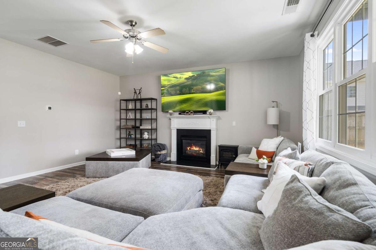 Explore where comfy meets space, where a well-appointed interior combines style and functionality throughout. The kitchen is open and airy, paired with stainless steel appliances, while a fireplace adds warmth and character to the living space. The primary bathroom includes dual sinks along with a separate tub and shower for added comfort. Newly installed energy efficient windows and beautiful flooring updates enhance the home's overall presentation, and the spacious backyard adds living space outdoors, overlooking a fenced backyard. The loft area can be a play area or a man's cave, the imagination is yours. Hosting a bedroom and full bath on the main level is great for company. With its cohesive layout and thoughtful updates, this residence has an inviting setting.