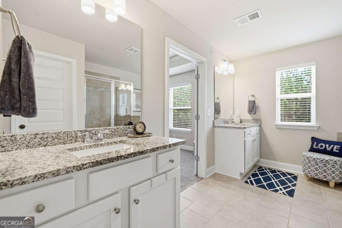 - Interior FeaturesDouble Vanity, High Ceilings, Roommate Plan, Separate Shower, Soaking Tub, Tile Bath, Walk-In Closet(s)