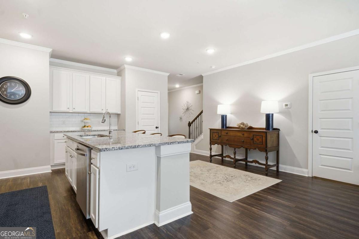 Better than new and impeccably maintained, this END-UNIT townhome offers the LARGEST FLOORPLAN in Camden Park-and truly feels like a home-just minutes from Downtown Woodstock. Positioned on a desirable corner lot, this home features a rare private fenced backyard, perfect for pets, entertaining, or relaxing outdoors. The main level is designed for both everyday living and entertaining, showcasing hardwood floors throughout, a spacious great room with a corner fireplace, and a standout oversized kitchen featuring abundant counter space, stainless steel appliances, granite countertops, an expansive island, and a separate pantry. The kitchen flows seamlessly into a large dining area with detailed trim work and an open foyer-style layout. A 2-car garage on the kitchen level adds everyday convenience. Upstairs continues the spacious feel with a versatile loft area-ideal for a home office or sitting room. The primary suite is a true retreat, offering a spa-like bath with dual vanities, soaking tub, separate shower, private water closet, and a large walk-in closet. Two additional bedrooms are generously sized with ample closet space, plus a separate oversized laundry room. Enjoy outdoor living with a private, fenced yard and patio-perfect for grilling and easy access for pets. Located just off Highway 92, this home offers unbeatable convenience to shopping, dining, and fitness options including One Life Fitness and Lifetime Fitness, with quick access to both Downtown Woodstock and Downtown Roswell. Immaculate, spacious, and one of the best opportunities near Downtown Woodstock-this one truly stands out.