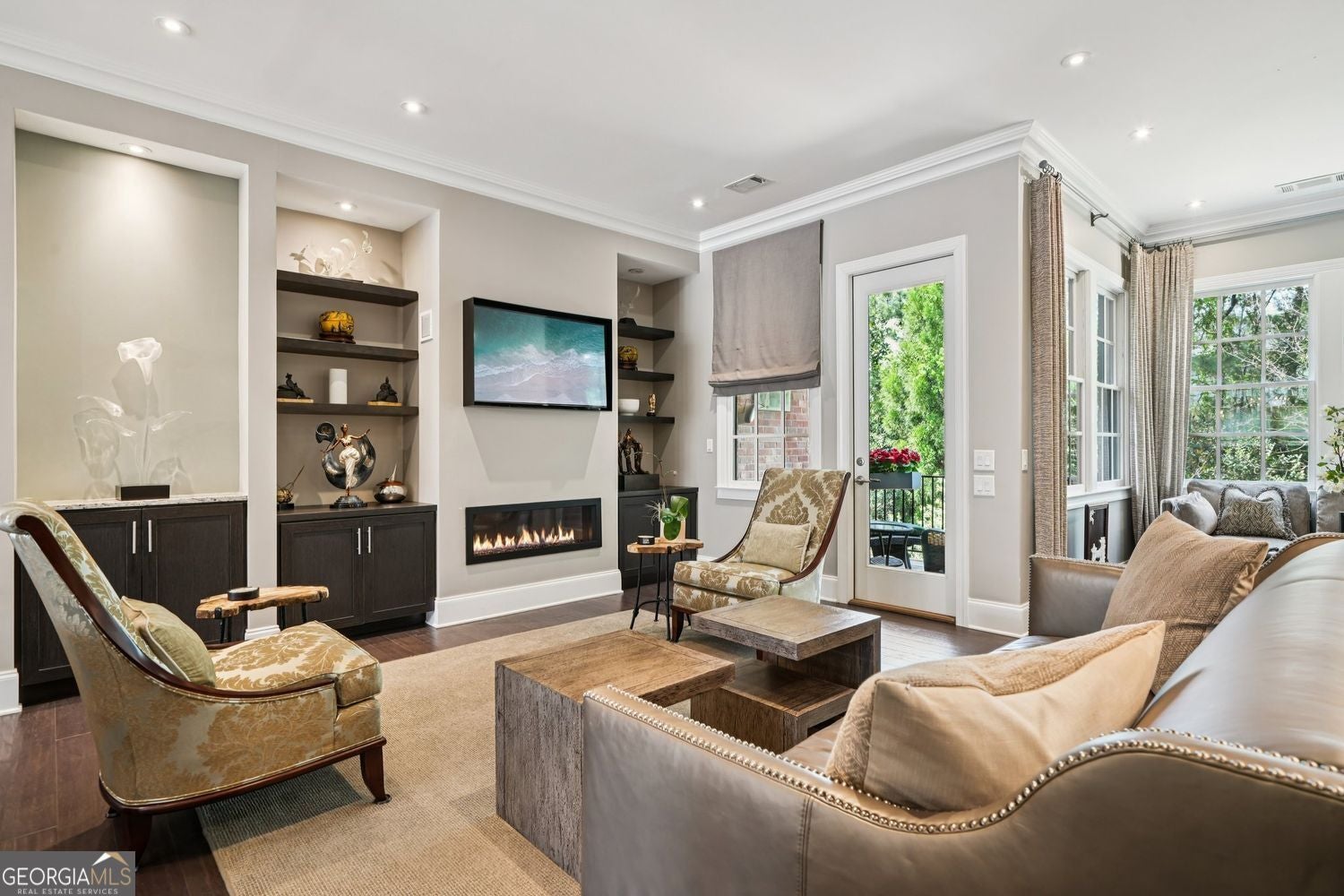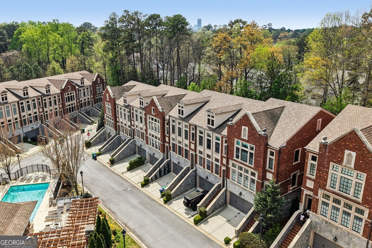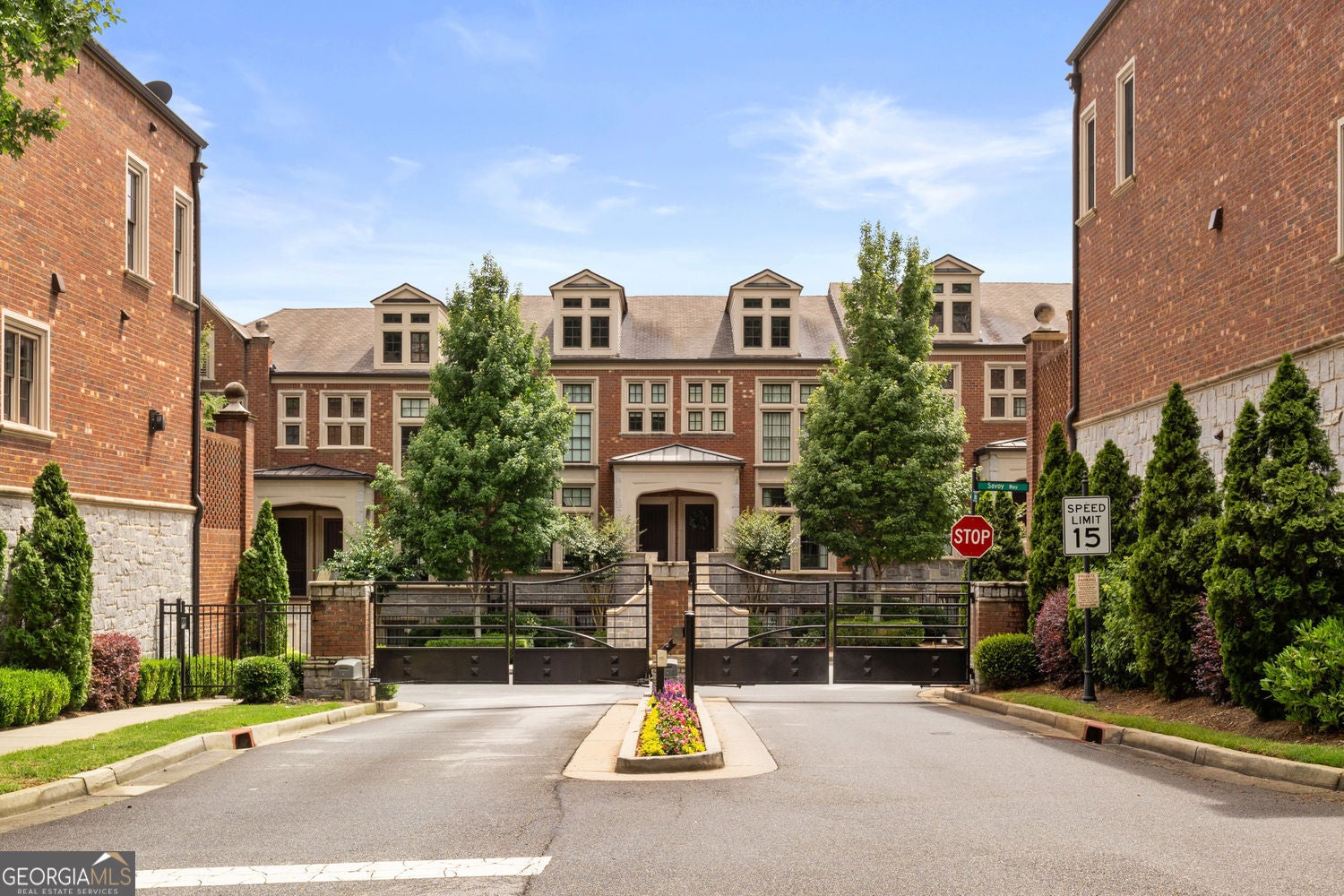 Private wooded views, an elevator, and pride of ownership from a single owner set the tone for this exceptionally upgraded townhome. Welcome to an exquisite and timeless residence in The Savoy at Town Brookhaven. This is one of Brookhaven's most desirable gated communities, where thoughtful design, quality construction, and everyday convenience come together seamlessly. This extra-wide townhome lives like a single-family home, offering three beautifully finished levels, a private elevator, and a layout designed for both comfortable living and effortless entertaining. The main level is open and inviting, anchored by a spacious living area with a fireplace, a refined dining space, and a well-appointed kitchen featuring JennAir stainless steel appliances and an oversized breakfast bar ideal for gathering. Custom millwork, built-ins, and a wet bar stub create a level of finish that feels both tailored and elevated. Throughout the home, you will find hardwood floors, LED lighting, a central vacuum system, an integrated intercom system, and thoughtfully designed spaces, including a built-in desk and custom storage solutions. The laundry room is generously sized and beautifully finished with custom cabinetry and a sink, proving that even functional spaces can be well designed. Upstairs, the primary suite is a true retreat, overlooking a peaceful wooded setting and featuring a spa-inspired bath with a dramatic floor-to-ceiling glass shower with body sprays and a luxurious six-foot soaking tub. A large custom walk-in closet completes the space. Additional bedrooms are well proportioned, offering flexibility for guests, office space, or everyday living. The terrace level provides a private, light-filled living area ideal for guests, in-laws, or a dedicated work-from-home setup. This level also offers exceptional flexibility, currently featuring a separate room set up as a home gym, while still allowing space for a media room or additional lounge area, making it perfect for both wellness and entertainment. This home is also equipped with modern conveniences, including a full security system with cameras and a video doorbell, remote garage access, and a high-powered EV charger. Recent updates include a new HVAC system and water heater, offering true turnkey peace of mind. Outdoor living is equally inviting and very private, with both a covered balcony and patio for relaxing or entertaining. Residents of The Savoy enjoy gated security and a saltwater pool, all just minutes from Town Brookhaven, offering premier dining, shopping, and everyday conveniences, along with easy access to MARTA and major corridors. This is a rare opportunity to own a meticulously upgraded, thoughtfully designed home in a prime Brookhaven location where the details truly set it apart.