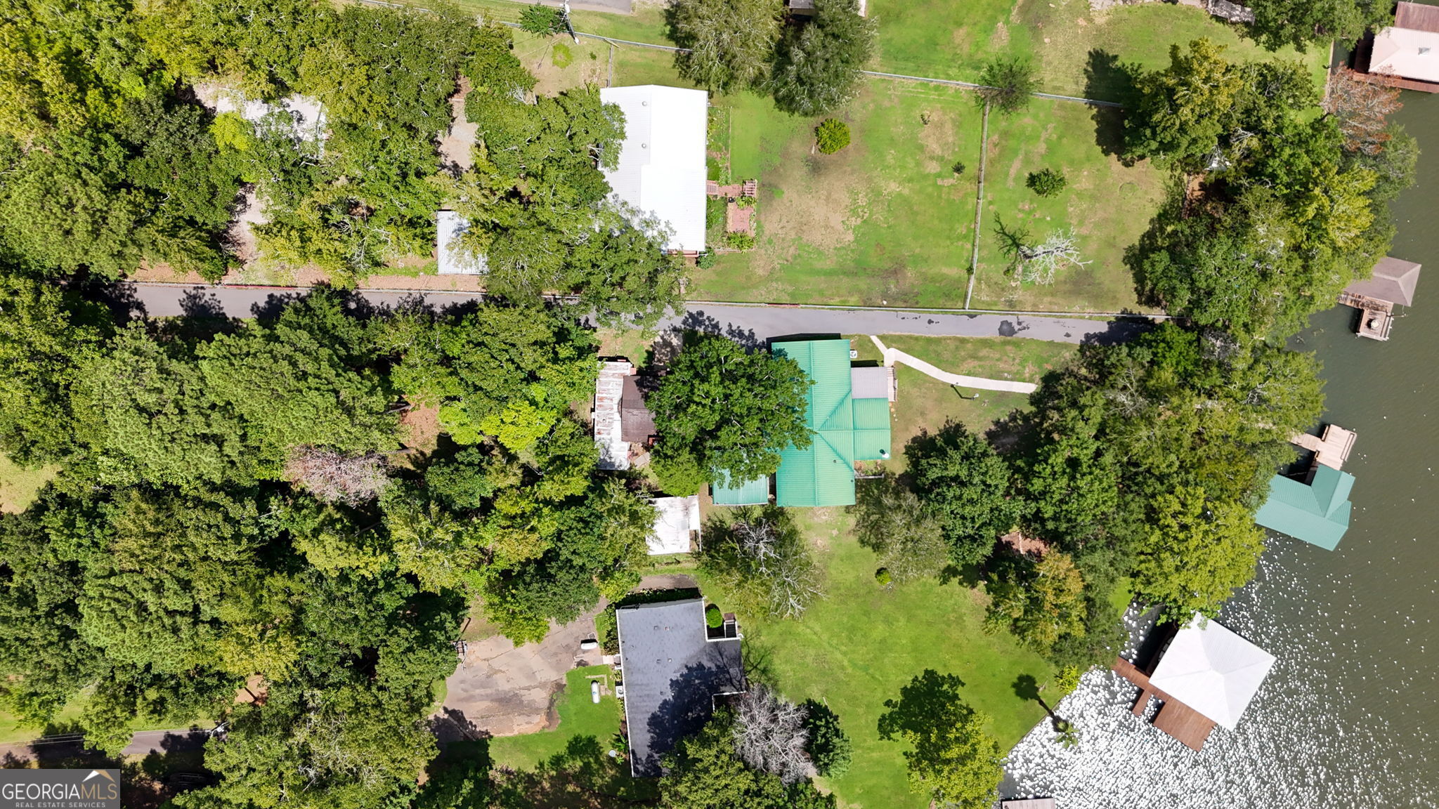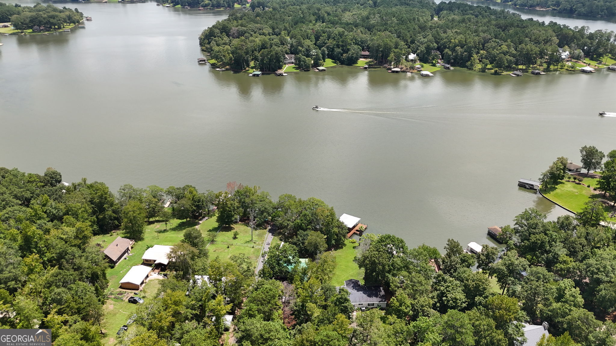 "THE CHANCE SELLS TEAM" presents a fabulous deal where you can have 2 homes on the lake for the price of one! This is a "DEEDED" Waterfront lot, sitting on a 1.41 acre lot, with a dock and single covered boat lift too. 5-6 feet of water depth at the front of the dock and this is only one out of 3-4 other properties around this area, that has a Boat Ramp Launch pad in your own backyard. Otherwise, you would have to put your boat(s) or jet ski's in at the marina. The main home is a triple wide boasting a large kitchen with island and is open to the great room, den, eat-n-area with some views to the lake. Split bedroom plan with a spacious primary bedroom and bathroom. Secondary bedrooms are large sized with nice sized walk-in-closets too. Big laundry room with a built-in-desk area. Big covered back porch and an outbuilding. 2nd home is an older home that will need some TLC. Added to it is a huge great room area that is sitting on a concrete slab. (HOME IS BEING SOLD AS-IS), as this is an Estate. Seller does not have a seller disclosure for this property, but said they may know of some things about it, so if anyone has any questions, they would be glad to answer and help if they can! Great deal on this place! I love the big open view to the water this shoreline has. You can see the water for over a mile when you look to your left and 3/4 mile when you look to your right while standing on the dock! Give us a call for your easy showing of this place today! Thanks, Chance.