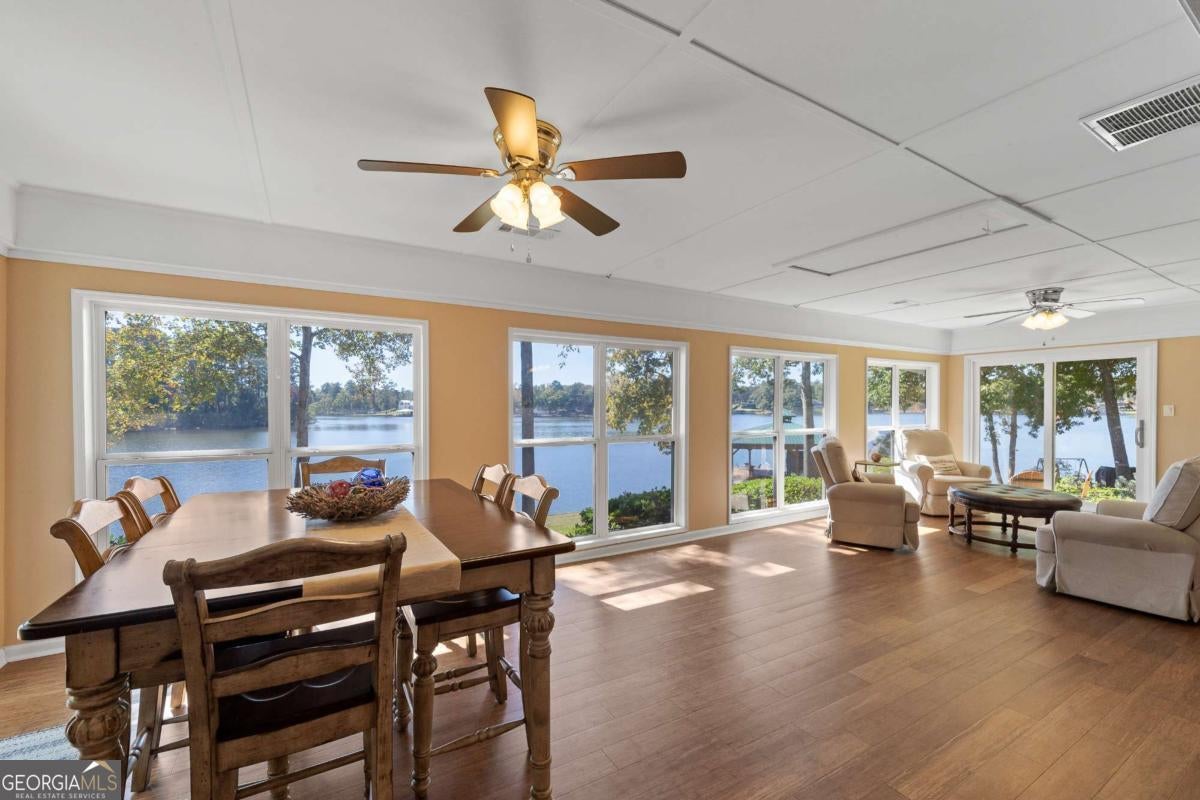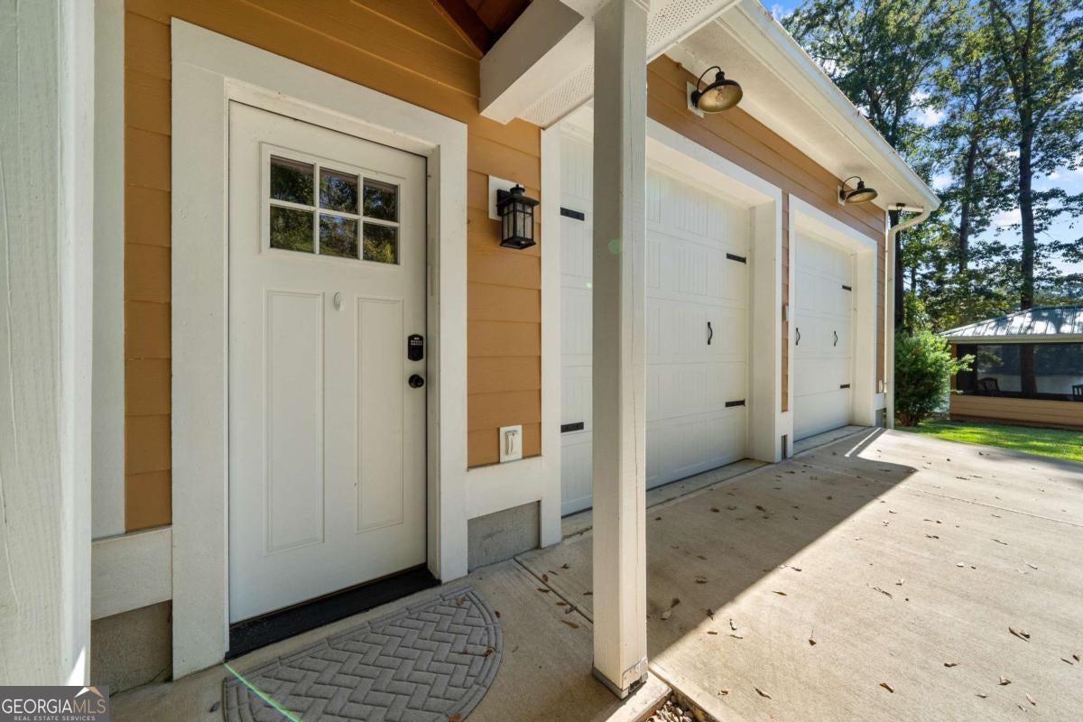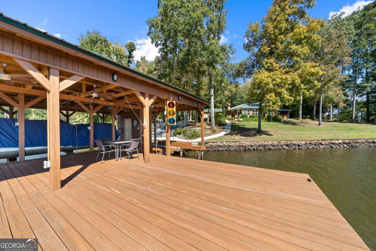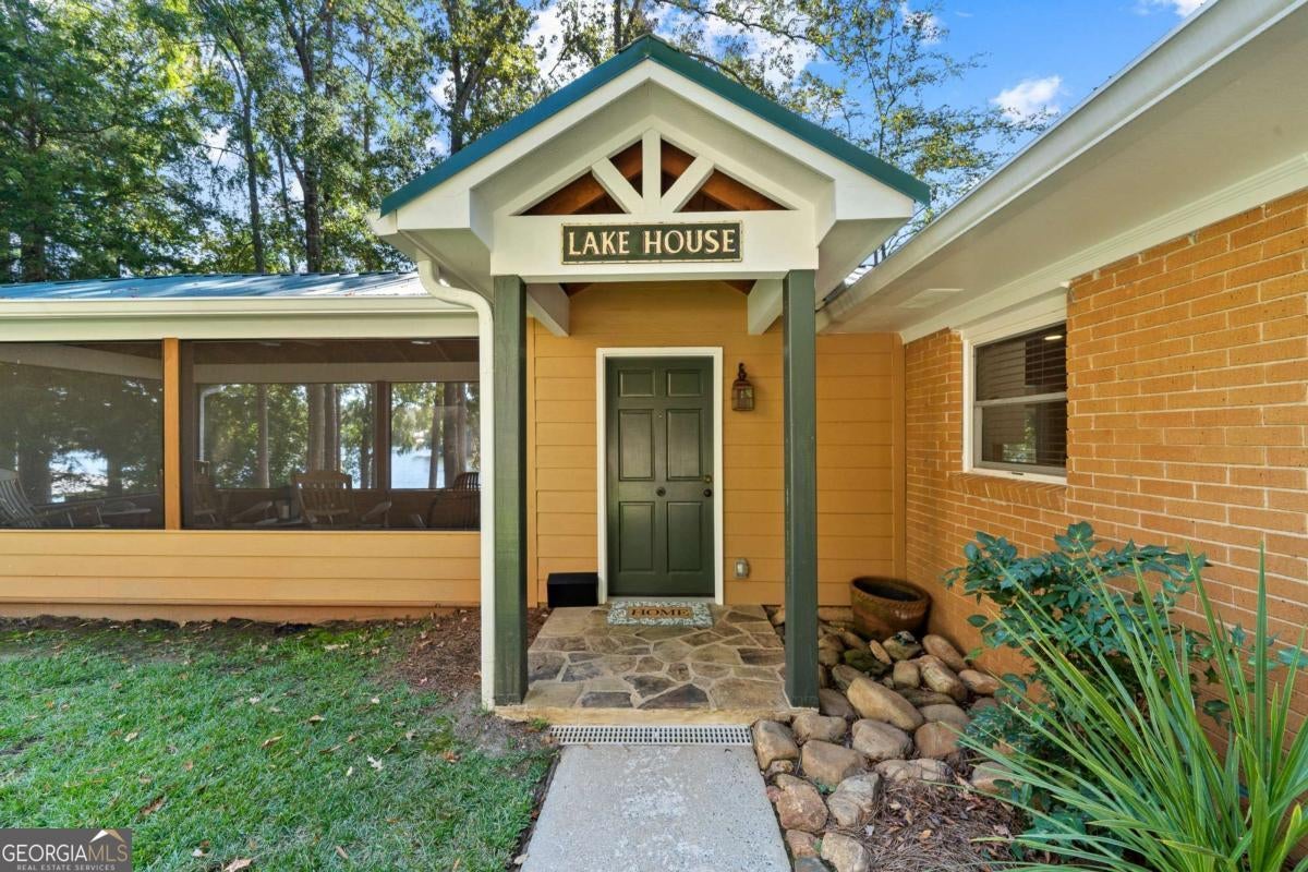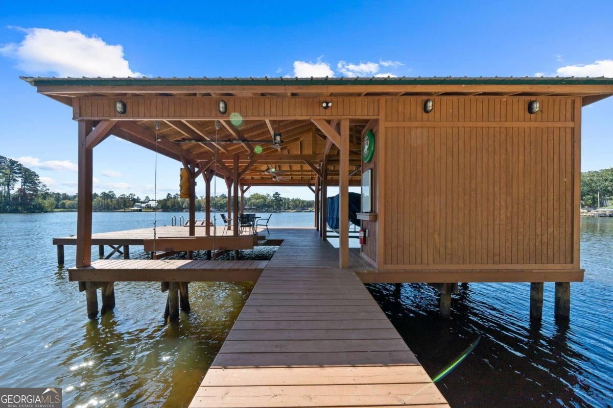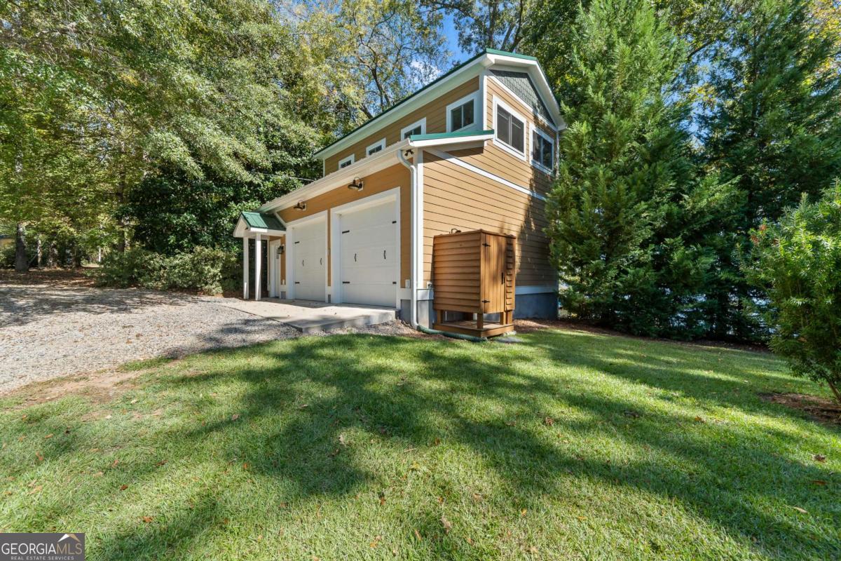 Enjoy peace and privacy on this beautifully maintained 1.46-acre Lake Sinclair property, featuring over 270 feet of pristine shoreline. The home, including the garage apartment, offers a total of 2,460 square feet with 4 bedrooms and 3 baths, along with a spacious sunroom and a brand-new screened porch-perfect for relaxing and enjoying the lake views. Inside, the home features granite countertops, a cozy gas log fireplace, and all appliances included, even the washer and dryer. There is plenty of room for family and guests with a newly constructed detached two-car garage that includes an upstairs apartment with a private bath-ideal for visitors or extended stays. Additional storage is abundant with two outbuildings, providing space for tools, lawn equipment, or lake toys. Outdoors, enjoy a maximum boathouse with a covered sitting area and deep water, perfect for swimming, boating, and fishing. A solid block seawall and lakeside patio create the perfect setting for easy lake living. Located in the highly desirable Twin Bridges area, this property offers convenient access to both Atlanta and Macon while still providing a peaceful, private retreat. Come Enjoy The Lake Life on Lake Sinclair!