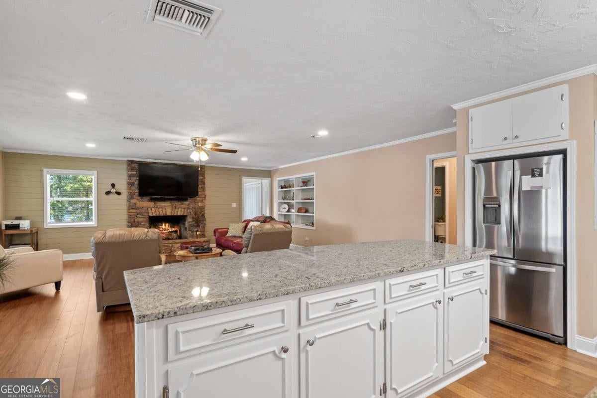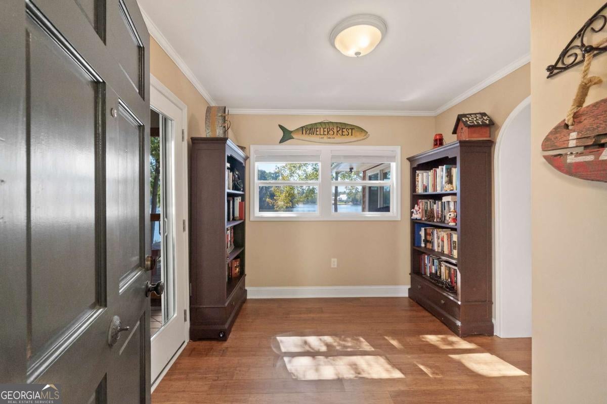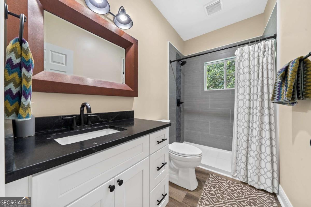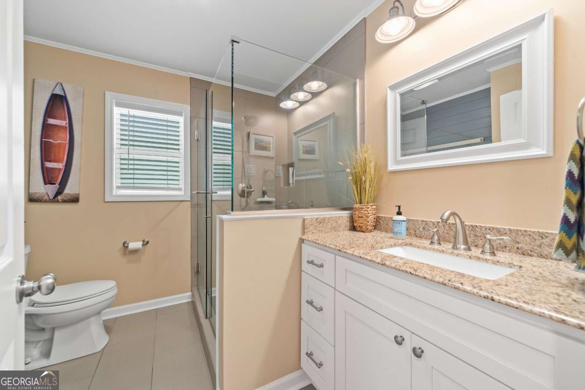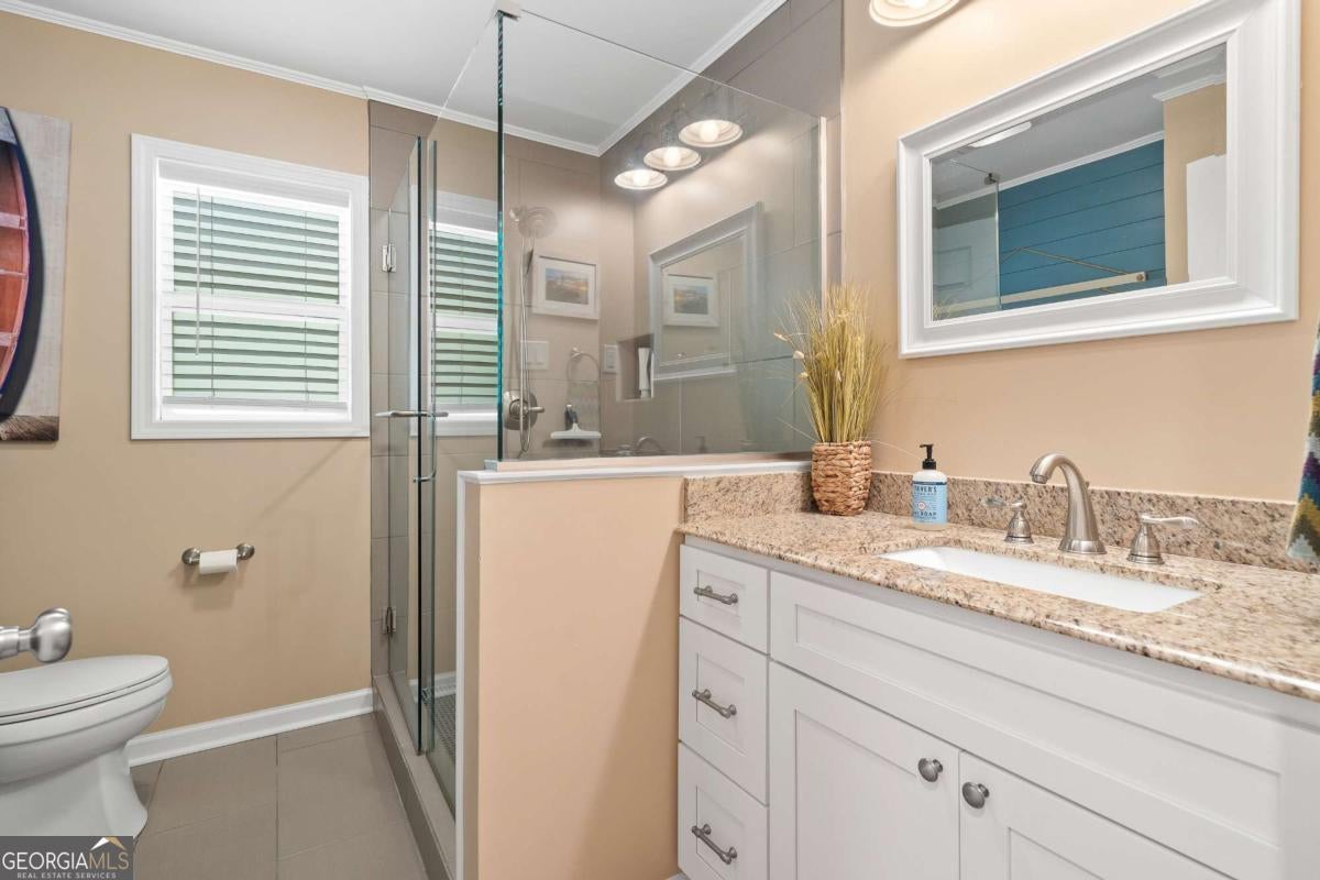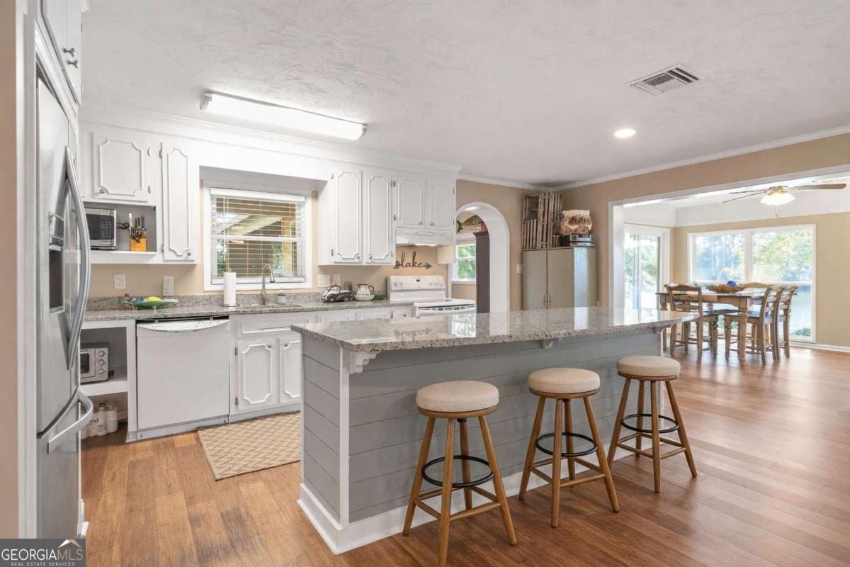 Enjoy peace and privacy on this beautifully maintained 1.46-acre Lake Sinclair property, featuring over 270 feet of pristine shoreline. The home, including the garage apartment, offers a total of 2,460 square feet with 4 bedrooms and 3 baths, along with a spacious sunroom and a brand-new screened porch-perfect for relaxing and enjoying the lake views. Inside, the home features granite countertops, a cozy gas log fireplace, and all appliances included, even the washer and dryer. There is plenty of room for family and guests with a newly constructed detached two-car garage that includes an upstairs apartment with a private bath-ideal for visitors or extended stays. Additional storage is abundant with two outbuildings, providing space for tools, lawn equipment, or lake toys. Outdoors, enjoy a maximum boathouse with a covered sitting area and deep water, perfect for swimming, boating, and fishing. A solid block seawall and lakeside patio create the perfect setting for easy lake living. Located in the highly desirable Twin Bridges area, this property offers convenient access to both Atlanta and Macon while still providing a peaceful, private retreat. Come Enjoy The Lake Life on Lake Sinclair!