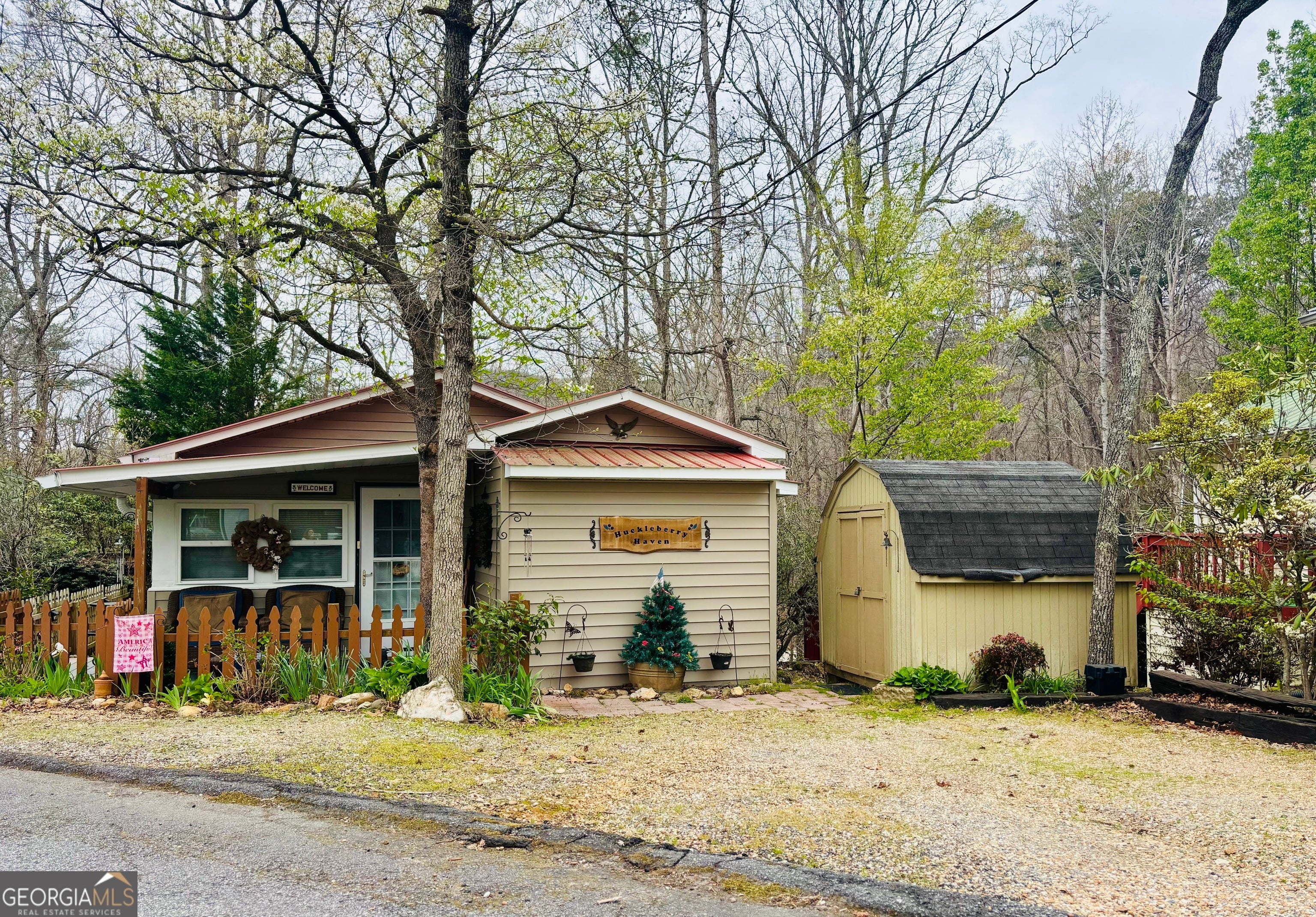 If you are looking for a quiet getaway...THIS IS IT! Discover the perfect blend of rustic charm and smart efficiency in this meticulously designed and maintained retreat, nestled within the sought-after Mountain Shadows community. This unique cabin-style home is a masterclass in "smart space" design, offering a large kitchen, a dining room area and spacious living area that feels remarkably airy and welcoming. The home also features three cozy bedrooms and one newly remodeled bathroom with full tub shower, highlighted by a master suite that prioritizes organization with three dedicated closets. Throughout the home you will find ample storage solutions integrated throughout the interior, ensuring a clutter-free environment that lets the craftsmanship of the home shine. Home also features a 24'' gas stove, gas heater, electric infrared heater, water purifier, tankless water heater and small fenced in area for your furry friends. Outdoor living is truly an added experience of this property. Relax on the inviting front porch or head to the large back deck to take in the mountain views and fresh air with plenty of space for friends and family. The back deck offers privacy, string lights, space for grilling and makes you feel like you are in the treetops. The backyard features a private fire pit perfect for starlit gatherings and roasting marshmallows. Whether you are hosting friends and family or enjoying a quiet weekend, the layout maximizes every square inch, ensuring that comfort never takes a backseat to functionality! Adding even more value, the property includes a separate storage building for your gear and a golf cart that conveys with the sale, making it easy to zip around the neighborhood and soak in the Mountain Shadows lifestyle! Come make this beautiful home yours!
