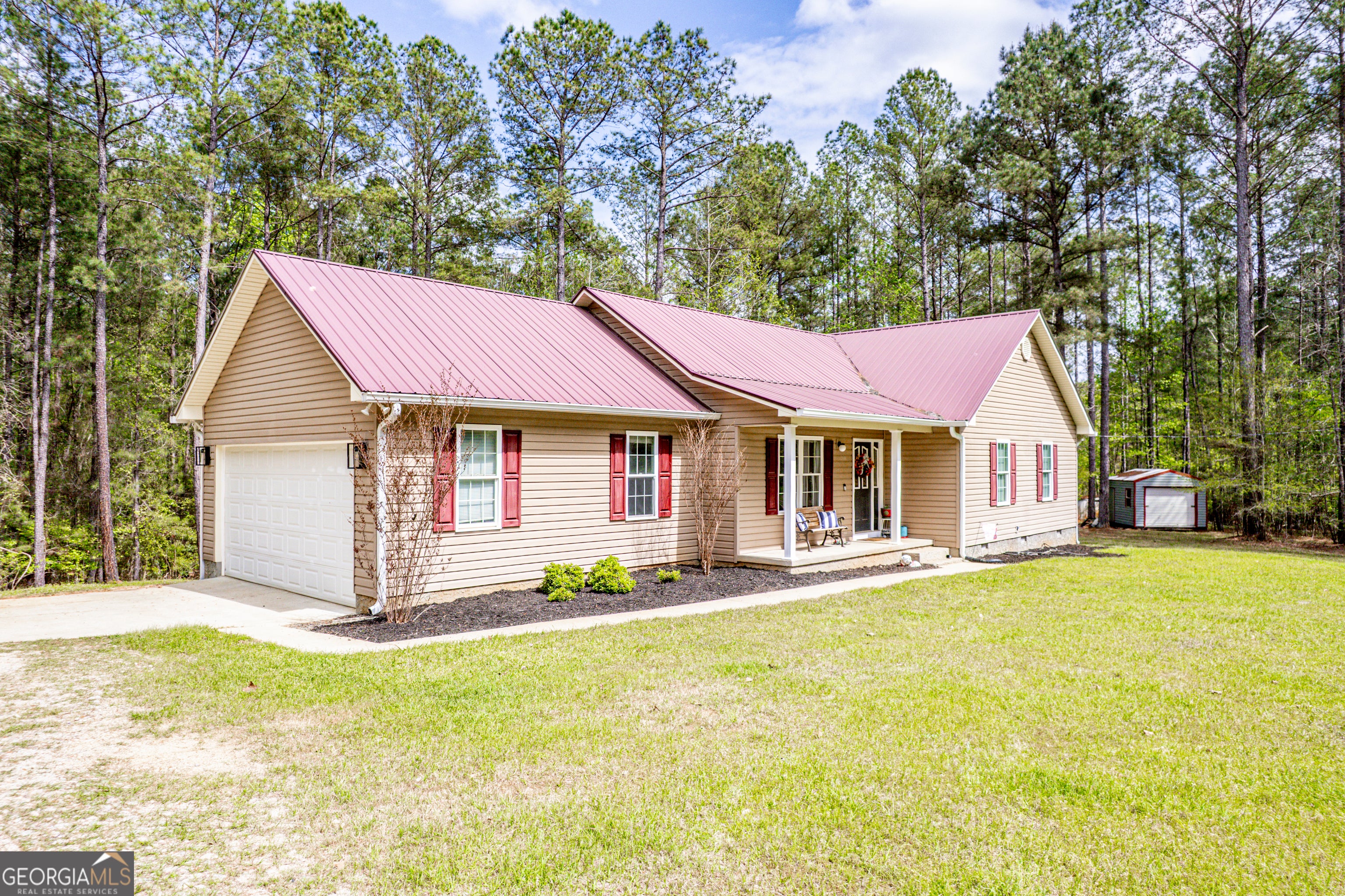 Charming Country Retreat Near the Lake! Enjoy the perfect blend of peaceful country living and convenient access to the lake with this well-maintained 3-bedroom, 2-bath home. Nestled on a spacious, wooded lot, this property offers privacy, tranquility, and room to roam. Step inside to a warm and inviting living area featuring a cozy fireplace and abundant natural light. The layout flows seamlessly into the dining space and kitchen, making it ideal for everyday living and entertaining. The floor plan provides comfort and privacy, with a spacious primary suite and two additional bedrooms. Relax on the welcoming front porch or unwind on the back deck overlooking the serene, wooded surroundings. Outside, you'll find plenty of space for outdoor activities along with a storage building for added convenience. Whether you're looking for a full-time residence or a peaceful getaway close to the water, this property offers the best of both worlds-quiet country charm just minutes from the lake!