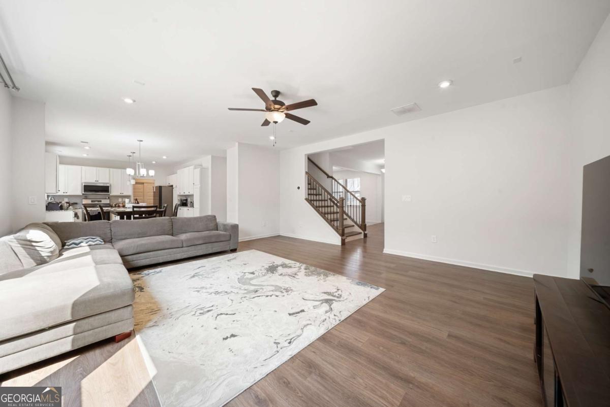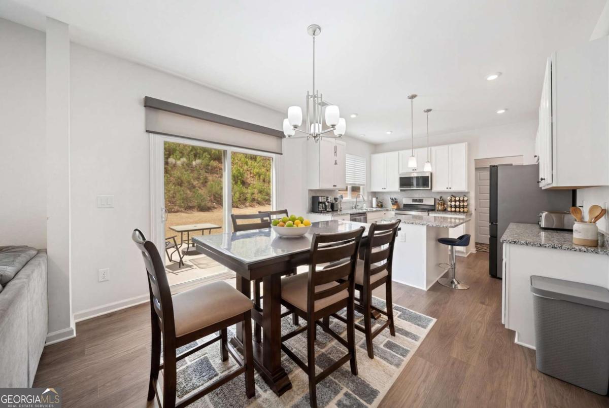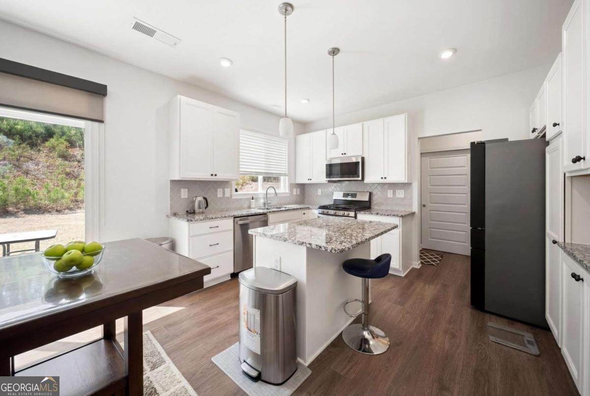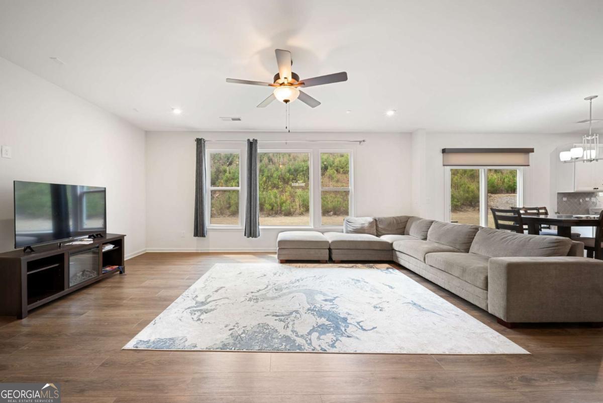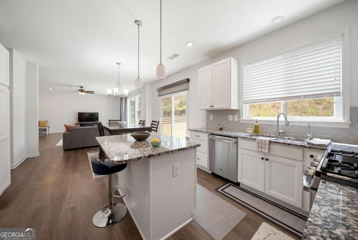 Welcome Home to this 2023-built rental in sought-after River Rock! This spacious home offers 5 bedrooms, 3 baths, and nearly 3,000 sq ft of open-concept living. Features include a modern kitchen with granite countertops, large island, stainless steel appliances, and ample cabinetry, plus a main-level bedroom and full bath-ideal for guests or office space. Upstairs boasts an oversized primary suite with dual vanities and walk-in closet, along with three additional bedrooms. Enjoy a covered porch with peaceful wooded views. Community amenities include resort-style pool, splash pad, tennis & pickleball courts, clubhouse, and river access. Convenient to downtown Canton, parks, Lake Lanier, and GA-400. Zoned for Pooles Mill Elementary, Liberty Middle, and North Forsyth High. Move-in ready!