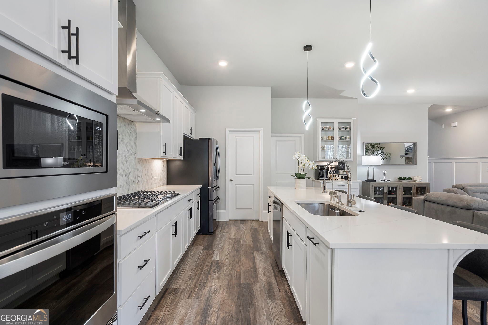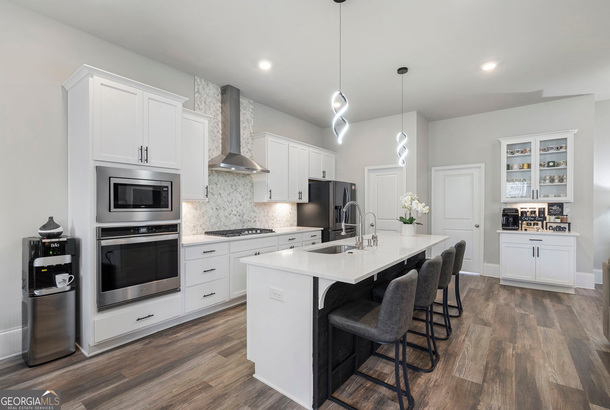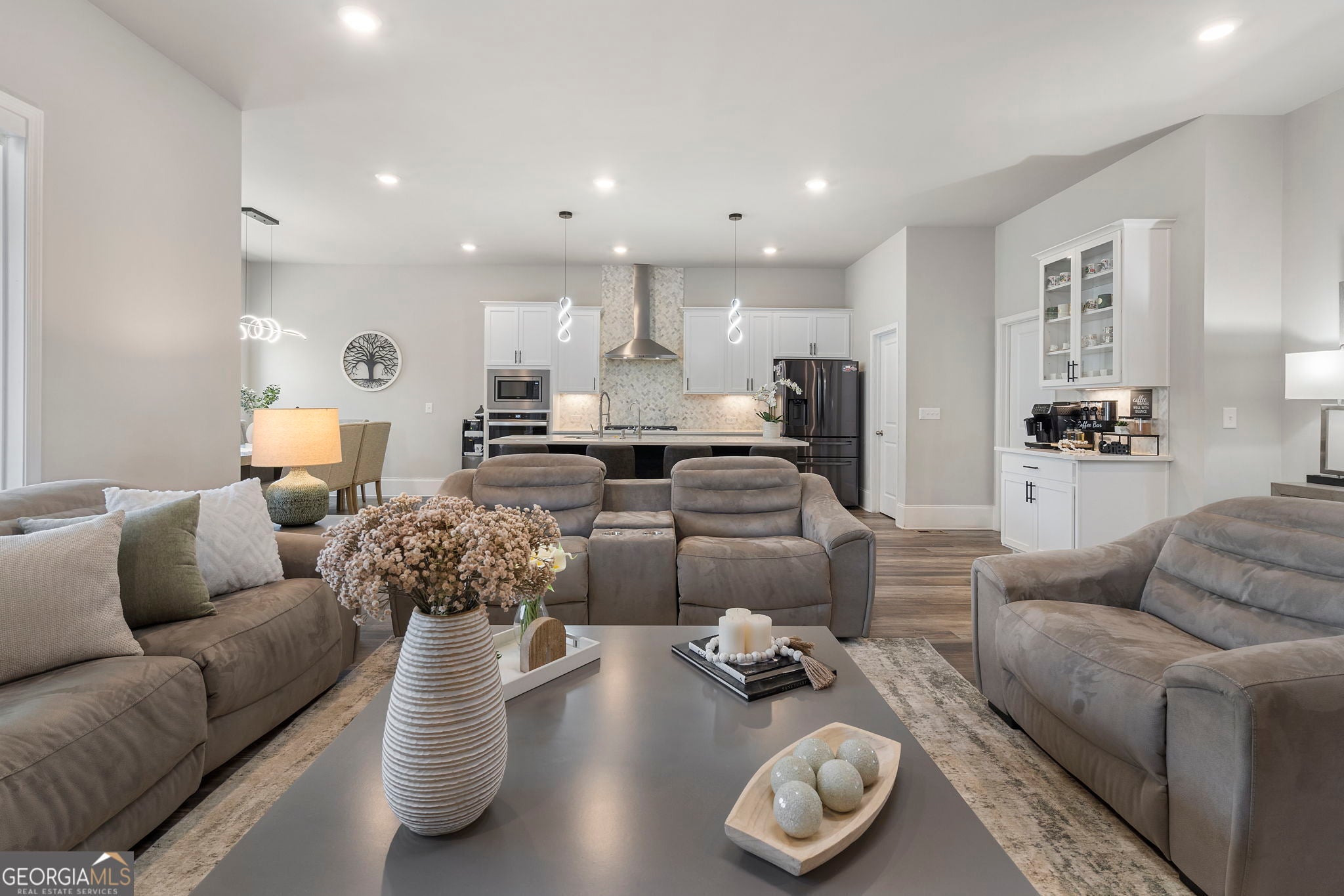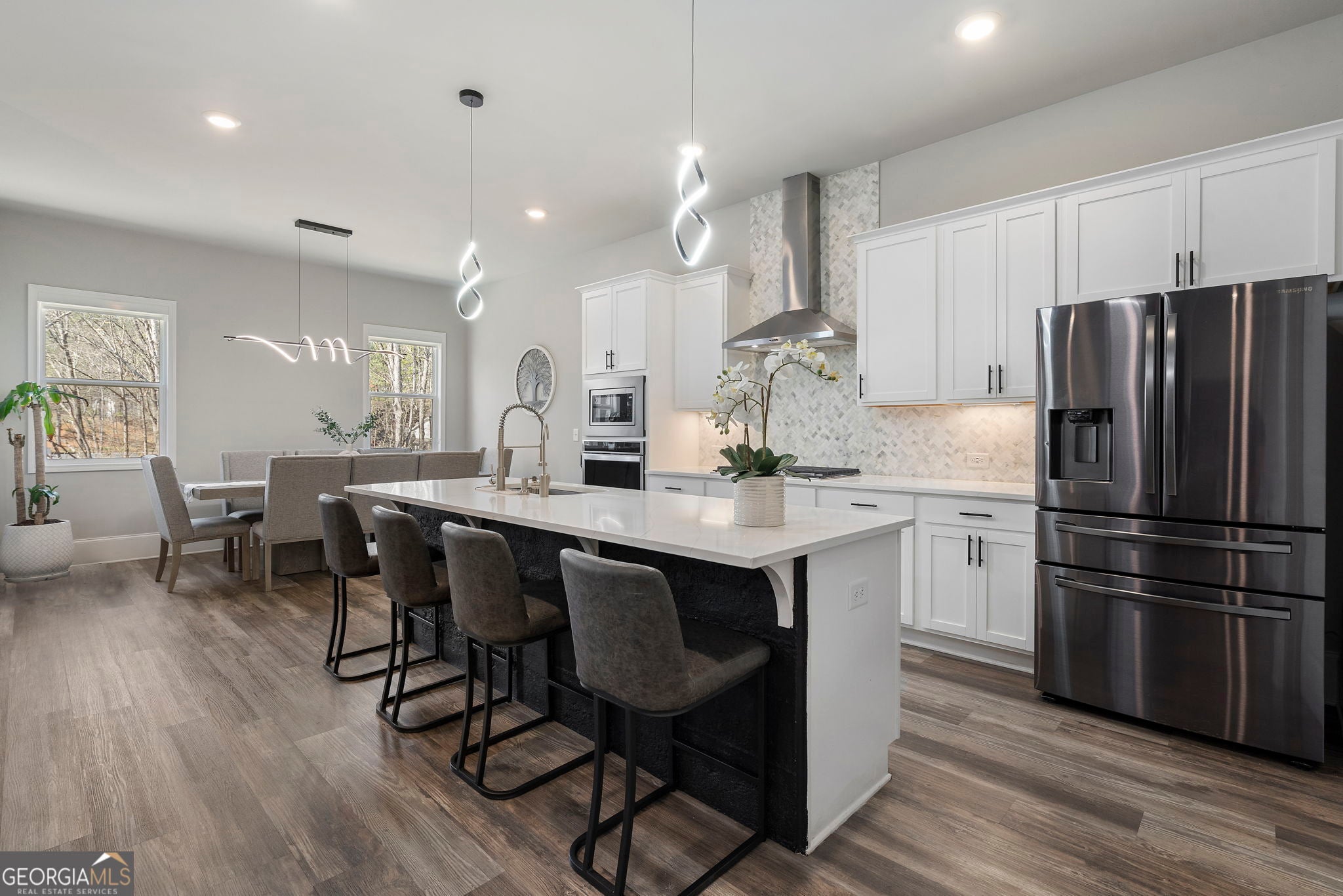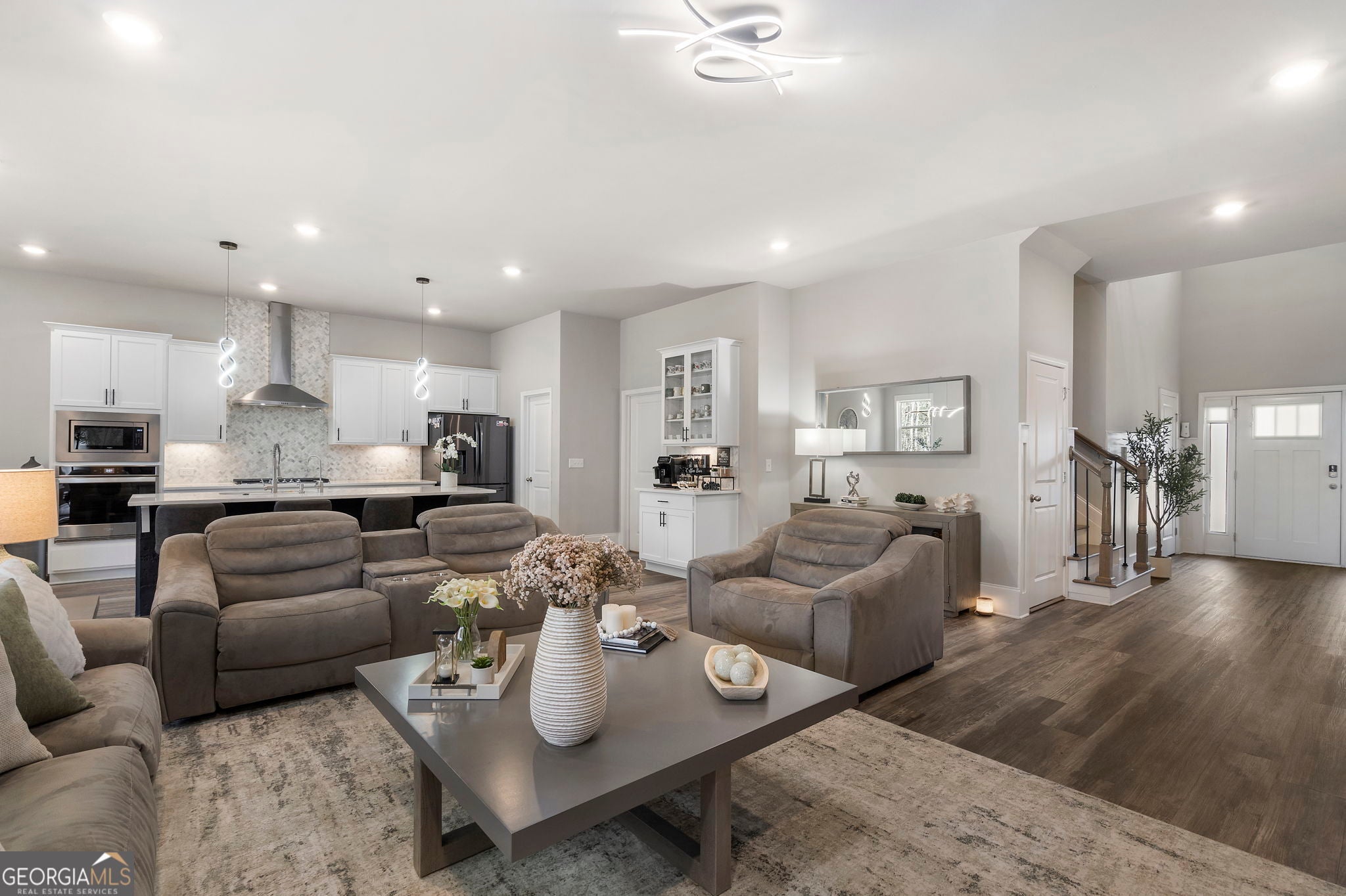 MINUTES AWAY FROM LAKE LANIER. Welcome to 1880 Grand Lanier Drive, an exquisitely designed and meticulously maintained home nestled in one of Buford's most desirable boutique communities. With only 44 homesites, this intimate enclave offers a rare blend of privacy, elegance, and convenience-just minutes from the highly sought-after south end of Lake Lanier. This thoughtfully crafted residence features 4 spacious bedrooms and 3 full baths, including a private upstairs bonus suite with its own full bath-perfect for guests, a home office, or a media retreat. The main-level primary suite provides both comfort and sophistication, highlighted by an oversized, all-tile shower and refined finishes throughout. Designed for both everyday living and entertaining, the home showcases a bright, open-concept floor plan with soaring ceilings and seamless flow. The heart of the home is the stunning white gourmet kitchen, beautifully appointed with quartz countertops, a large center island with bar seating, a 5-burner gas cooktop, wall oven, stainless steel appliances, tile backsplash, under-cabinet lighting, and a walk-in pantry. Designer touches-including matte black hardware and abundant LED lighting-create a clean, modern aesthetic. Additional upgrades include durable, hardwood-inspired EVP flooring, tile in all baths and laundry, a functional mudroom, smart home features such as a smart front door lock and remote-access garage, and enhanced exterior LED lighting. The full, unfinished basement offers an exceptional opportunity for future customization-whether you envision a luxury entertainment space, home gym, in-law suite, or additional living quarters, the possibilities are truly endless. Perfectly positioned, this home provides exceptional proximity to Lake Lanier, along with premier shopping, dining, and access to highly rated Buford area schools, making it an ideal choice for both lifestyle and long-term value. This is a rare opportunity to own a truly turnkey, designer-level home in a highly desirable location-where quality, flexibility, and convenience come together beautifully.