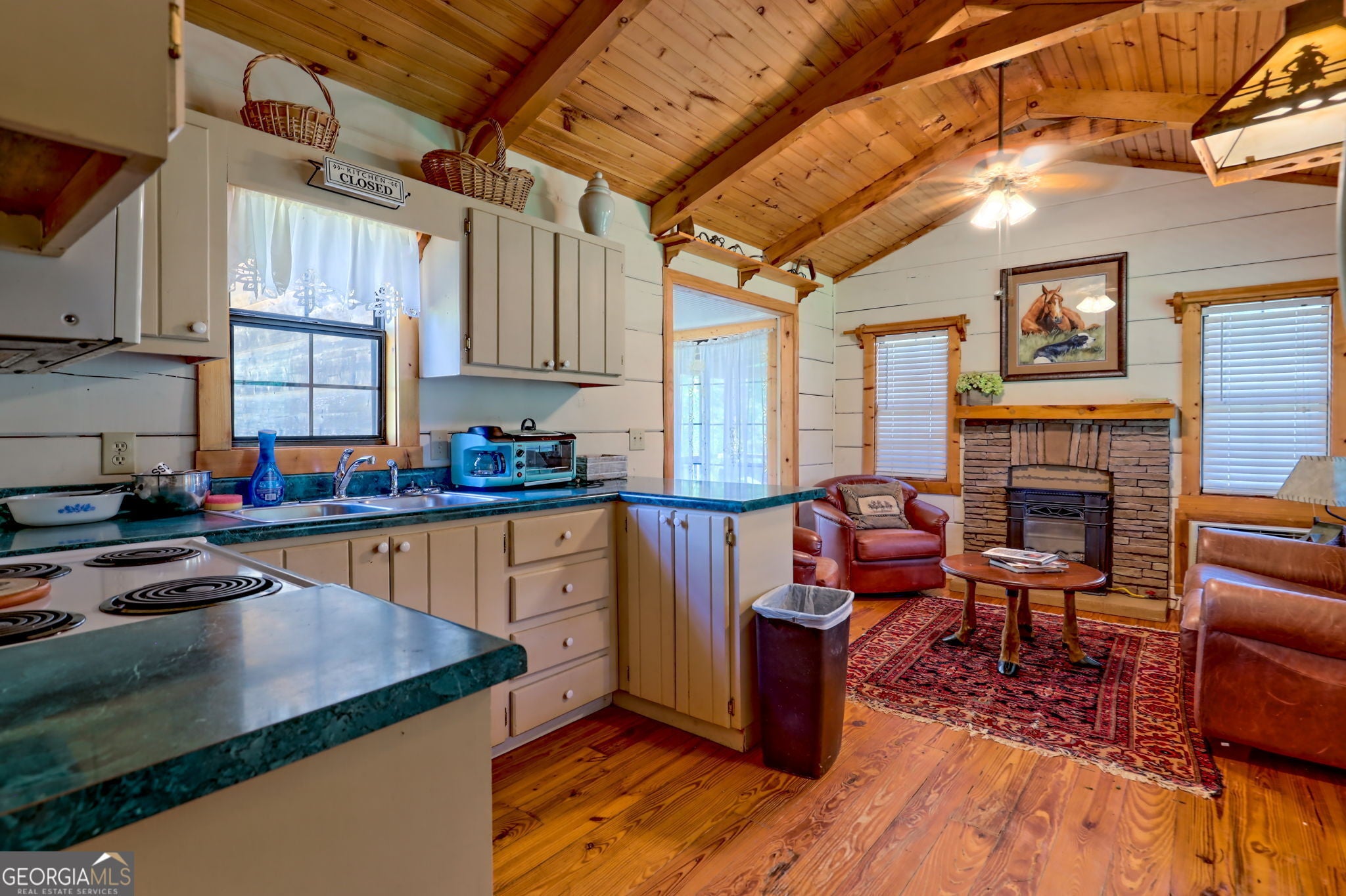 One Of A Kind...17.98 acres, 2500 ' Trout Waters, Rustic/Western custom 2 Bedroom 2 Bath Main House with 3 screened porches overlooking lush green pastures and mountain view. Additional 1 Bed, 1 Bath "Tiny Home" guest quarters with wrap around porch...Beautiful Firepit for entertaining. Large Barn with 4-8 horse capacity including wash rack, feed room, and tack room. All property is fenced and ready for livestock. Only minutes to Lake Rabun, close to Rabun County Schools and Recreation Department. Owner will consider some owner financing.