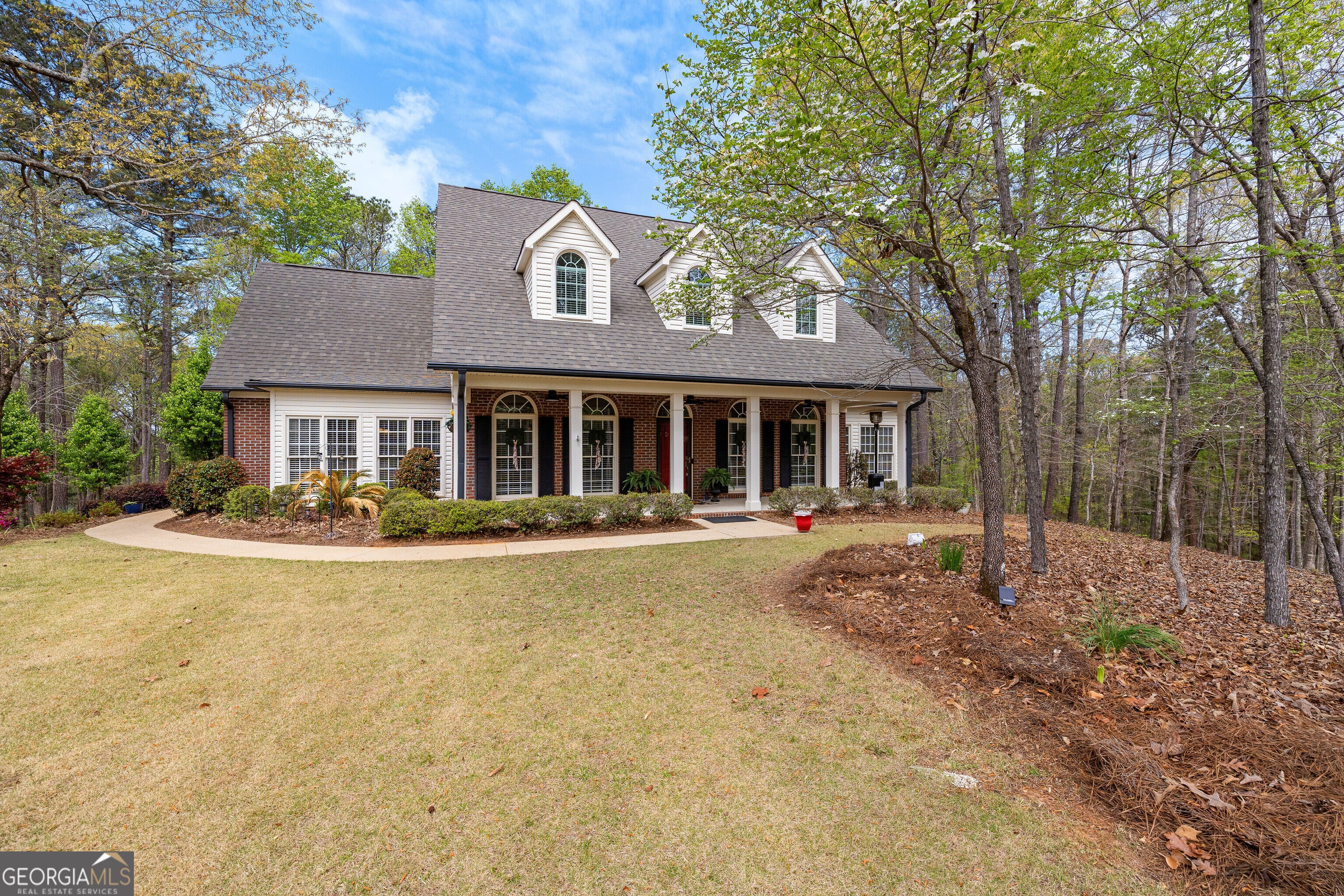 Major Upgrades=Incredible Value. Welcome to Cloisters Subdivision truly a Hidden Gem in LaGrange-where timeless curb appeal meets thoughtful design, beautiful surroundings, and versatile living. From the moment you arrive, the inviting front porch, dormer accents, and classic brick facade create a warm first impression. Inside, LVP flooring flows through the main living areas, offering both durability and style. A flexible space just off the entry is perfect for a den, home office, or study, while a formal dining room provides an ideal setting for entertaining. The home opens into a stunning two-story great room featuring a gas log fireplace, creating a bright and inviting space for everyday living. The primary suite is located on the main level and offers a spacious retreat with new carpet, crown molding, and an updated en-suite bathroom. The bathroom showcases a spa-like feel with a soaking tub framed by decorative glass windows, a tiled walk-in shower, double vanities, and abundant cabinetry for storage. A large walk-in closet completes the suite. The kitchen is designed for both function and gathering, featuring granite countertops, warm wood cabinetry, a breakfast bar, built-in desk area, and a cozy sitting/breakfast space filled with natural light. Just off the kitchen, the oversized laundry room includes granite countertops, a utility sink, extensive cabinetry, and space for additional storage or organization. Two nicely sized pantries and a convenient half bath are also located on the main level. Upstairs, the layout offers exceptional flexibility-ideal for multigenerational living or guest accommodations. A spacious bonus room with a full bathroom is paired with an adjoining room featuring cabinetry, countertop space, and a sink-perfect for a kitchenette, secondary living area, or private retreat. A landing overlooks the great room below, enhancing the open feel of the home. The upper level also includes three additional bedrooms. Two share a Jack-and-Jill bathroom, while a third bedroom has access to a separate full hall bath, providing comfort and privacy for family or guests. Outside, the property is enhanced by thoughtfully designed landscaping, including mature trees, natural wooded surroundings, and seasonal plantings that add color and texture throughout the year. The setting offers a sense of privacy while still being part of an established neighborhood. At The Cloisters, residents enjoy access to community amenities including a pool, pickleball courts and tennis courts-conveniently positioned within walking distance of the property, offering both accessibility and a true neighborhood feel. This home offers the perfect blend of traditional charm, thoughtful updates, flexible living spaces, and a beautifully landscaped setting-all in a highly desirable neighborhood. Located just minutes from downtown LaGrange and West Point Lake. With easy access to Interstate 85. New Roof 2024, New HVAC Units 2023, Leaf filter gutters 2023, New Fence 2024, Interior Updates 2023