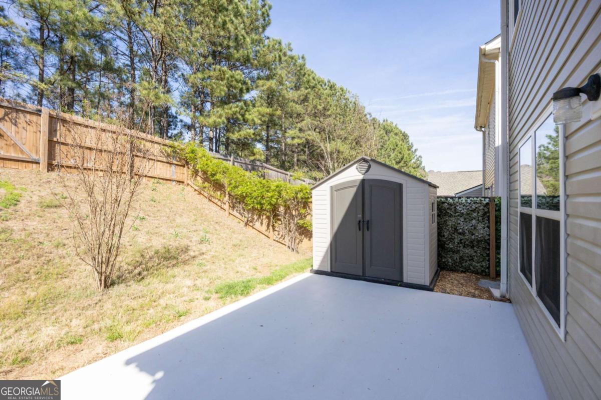 4BR Home in Gated Community * Granite Kitchen * Fenced Backyard! Move-in ready 4-bedroom, 2.5-bath two-story home located in the gated Highland Falls community in Hiram. This home features a functional open-concept floor plan with luxury vinyl plank flooring throughout the main level, abundant natural light, and seamless flow between the family room, dining area, and kitchen. The kitchen offers granite countertops, tile backsplash, brand new stainless steel Whirlpool appliances, and ample cabinet space, opening directly to the main living areas for everyday living and entertaining. A separate dining room with wainscoting provides additional space for gatherings. The main level also includes a laundry room and a half bath for convenience. Upstairs, the spacious primary suite features a tray ceiling, a walk-in closet, and an ensuite bath with granite countertops, a garden tub, and a separate shower. Three additional bedrooms and a full bath provide flexible space for guests, work, or hobbies. Outdoor living includes an extended concrete patio overlooking a fenced backyard, offering added privacy. The yard includes a storage shed for additional functionality. Additional features include a two-car garage, neutral interior finishes, and updated fixtures. The property includes newer Pella noise-reducing windows upstairs (lifetime warranty), Moen faucets, high-efficiency toilets, and rain showerheads. Security features include a Ring camera system and is pre-wired for external surveillance cameras at the four corners of the home. Washer/dryer and refrigerator stay with the property! Conveniently located near everyday amenities, including Kroger (0.8 mi), Publix (1.0 mi), Starbucks (1.0 mi), Walmart Supercenter (1.5 mi), and Hiram Pavilion (1.2 mi) with shopping, dining, and retail options. Outdoor recreation nearby includes access to the Silver Comet Trail (approx. 3-4 mi). Easy access to major roadways supports commuting needs. Schedule a private showing to experience the layout, updates, and outdoor space this home offers!