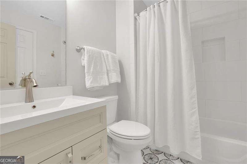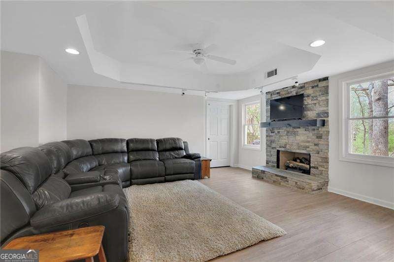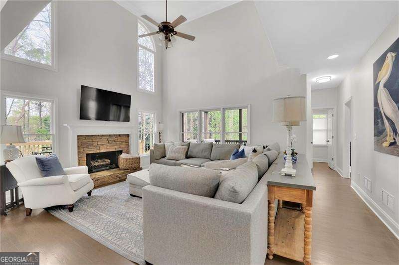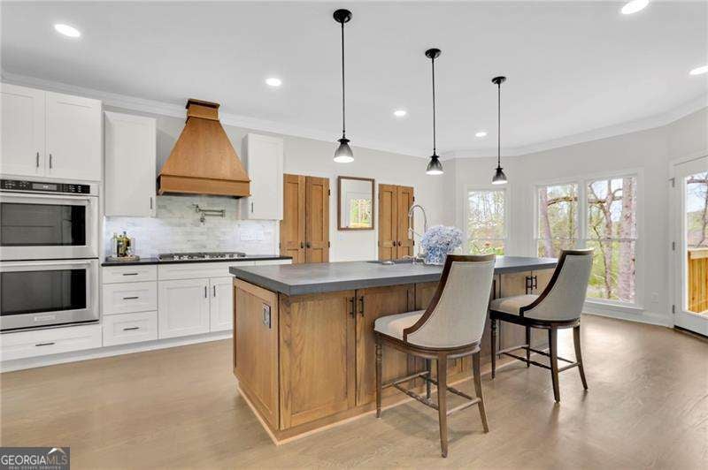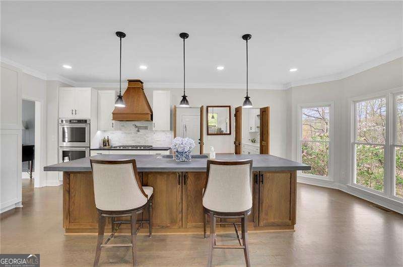 Discover this extraordinary Cumming home in the highly coveted Castlebrooke community-perfectly positioned just minutes from GA-400 and close to top-rated schools, shopping, dining, greenway trails, and the year-round recreation of Lake Lanier. Set on a quiet cul-de-sac and backing to a picturesque wooded oasis, this beautifully maintained 4,000+square-foot brick home offers the rare combination of vibrant community living and peaceful, private retreat. Lovingly cared for and thoughtfully updated with modern renovations, the home radiates comfort, style, and serenity throughout. Step inside the gracious two-story foyer, where natural light fills the inviting office and elegant dining room. The main level features a bright, open-concept layout that flows effortlessly from room to room-ideal for both everyday living and entertaining. At the heart of the home, the stunning great room showcases high ceilings, a warm brick fireplace, the abundance of windows showcase tranquil wooded views. The beautifully renovated kitchen is a true focal point, featuring crisp white cabinetry, quartz countertops, marble tile backsplash that includes a pot filler and stainless steel appliances. The custom fumed oak island has a one of a kind cement countertop, with matching vent hood and two sets of French doors that lead to the butlers pantry and laundry room. Just beyond the living room the covered porch offers a peaceful sanctuary. Upstairs, the luxurious primary suite includes a sitting area and a spa-like, fully renovated bath, complete with an expansive his and hers custom walk-in closets. An additional ensuite bedroom and two other bedrooms are connected by a Jack-and-Jill bath provide comfort and flexibility for family or guests. The finished basement level is designed for both relaxation and recreation, featuring a large living area ideal for movie nights and entertaining, along with additional game area and additional bedroom and gym. The kitchen area is ready to be finished just the way you want it with water and gas already in place. The hot tub privitely positioned just out the backdoor and the perfect way to end a long day. Located near some of the area's most desirable destinations-including Vickery Village, Big Creek Greenway's trails, Halcyon, The Collection at Forsyth, Cumming City Center, and Sawnee Mountain Preserve-this home offers endless opportunities for dining, shopping, and outdoor adventure. Castlebrooke is a beloved community known for its exceptional amenities, including a resort-style pool, tennis and pickleball courts, clubhouse, sports court, playground, fishing pond, and a covered outdoor pavilion with grill and stone fireplace. This exceptional property perfectly balances refined living with everyday comfort in one of North Georgia's most sought-after communities.