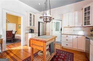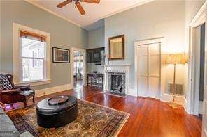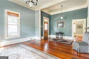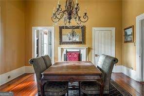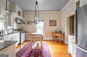 This charming home, on over 1.5 acres, is being offered beautifully furnished. It sits beneath a canopy of mature hardwoods. This impeccably restored historic home offers a rare combination of character, space, and modern comfort just a short .4 mile-walk from the heart of downtown Fairburn. Thoughtfully maintained home blends timeless architectural details with everyday livability. Inside, you'll find soaring ceilings, original hardwood floors, and generously sized living spaces filled with natural light. The kitchen is both functional and inviting, featuring stainless steel appliances and a 6-burner gas range, ideal for those who enjoy cooking at home. The home offers 3 bedrooms and 2 bathrooms, including a spacious primary suite with its own fireplace, creating a private retreat. A dedicated laundry room with a washer and dryer adds convenience, while each space reflects careful preservation paired with modern comfort. Outdoor living is where this property truly stands apart. The deep front porch invites slow mornings and relaxed evenings-perfect for enjoying a glass of sweet tea. The expansive, park-like yard offers privacy, open green space, and room to unwind or entertain. A private stone patio adds even more usable outdoor space, creating a setting that feels like a retreat! Located just a short walk to downtown Fairburn, you're positioned in one of South Fulton's most exciting revitalization areas, where historic charm meets continued growth with new restaurants, shops, and community spaces emerging. Whether you're in town for work or play, this home delivers something increasingly hard to find: a fully furnished residence with scale, character, and a true sense of place, minutes from downtown and within easy reach of Atlanta.
