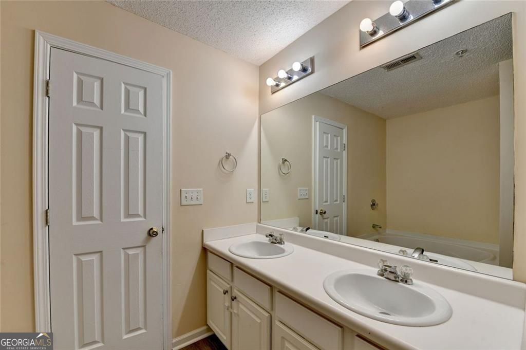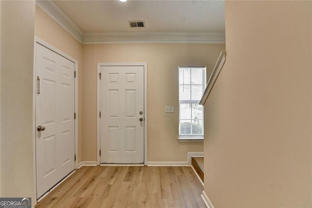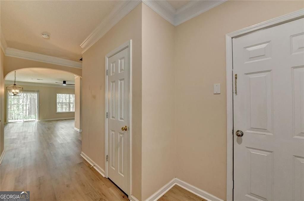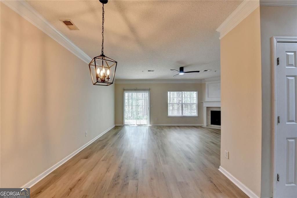 Lovely 3BR/2.5BA townhouse in a gated resort lifestyle community in the heart of Cumming. Stylish LVP flooring flows throughout the main level with a sliding door leading to the patio and secluded backyard. Open living space with a cozy fireplace in the family room. Upstairs, the spacious primary suite features a generous closet and an en-suite bath with a garden tub, double vanities, and a separate shower. Two additional bedrooms, each with ample closet space, conveniently share a full bath. Ideally situated under a mile from GA 400 and Highway 9 for easy commuting, with shopping and dining close by. Vacant and move in ready come enjoy life in this charming Forsyth County School community.