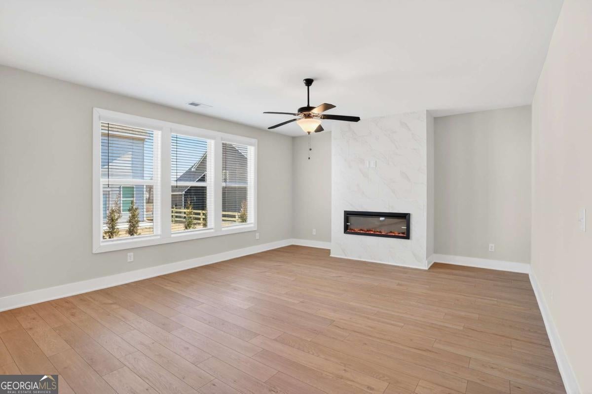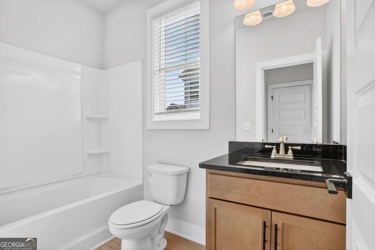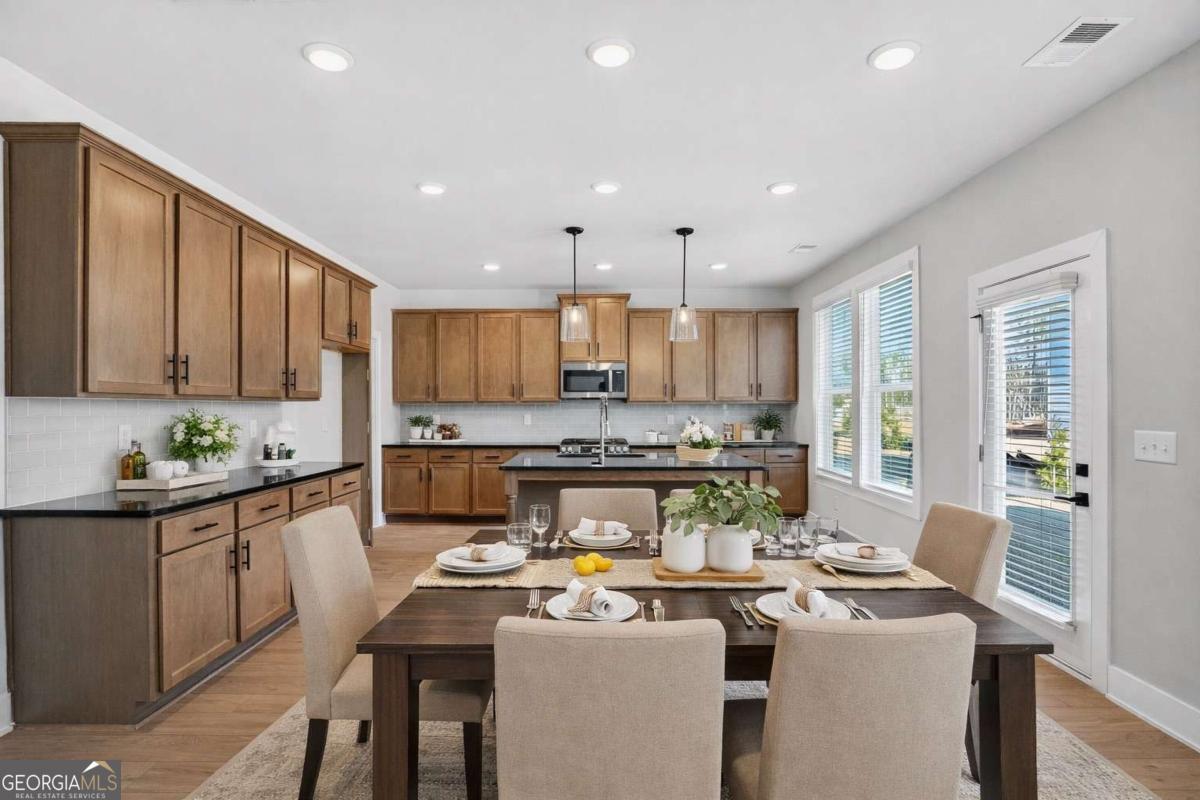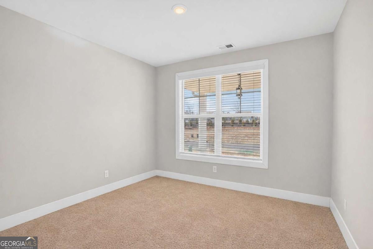 Built by Peachtree Building Group, Move-In Ready New Construction in Mirror Lake Golf Community! The Bedford floor plan on Lot 42 offers thoughtfully designed living space in the Mirror Lake community of Villa Rica. This new construction two-story home features 5 bedrooms and 3.5 bathrooms with a layout designed for both everyday living and entertainment. The open-concept main level connects the kitchen and family room, creating a comfortable gathering space. The kitchen features 42-inch soft close cabinets, granite countertops, double gas ovens, stainless steel sink with gooseneck faucet, tile backsplash, and a large island with seating and prep space. The family room includes a recessed linear electric fireplace for a modern focal point. A main-level guest suite with full bath and walk-in closet provides flexible space for visitors or additional household needs. Upstairs, the primary suite is spacious and filled with natural light from a bank of four large windows. A tray ceiling and ceiling fan add architectural detail while creating a relaxing retreat. The primary ensuite bath features a granite double vanity, soaking tub, tiled shower with frameless enclosure, and a spacious walk-in closet. Three additional bedrooms include walk-in closets, and the second-floor laundry room with linen storage adds everyday convenience. Additional features include luxury vinyl plank stair treads, open-rail stair detail with steel accents, upgraded lighting, black interior hardware, window screens throughout, and cordless blinds included throughout the home. The home also includes a two-car garage plus a separate golf-cart garage, featuring a Wi-Fi-enabled garage door opener that allows convenient access and monitoring from your smartphone. Builder is including a complimentary one-year golf membership to Mirror Lake and Chapel Hill Golf Clubs Mirror Lake amenities include two golf courses, tennis courts, pickleball courts, swimming pools, and walking trails. Conveniently located near The MILL Amphitheater, Clinton Nature Preserve, Pine Mountain Gold Museum, and historic downtown Villa Rica.