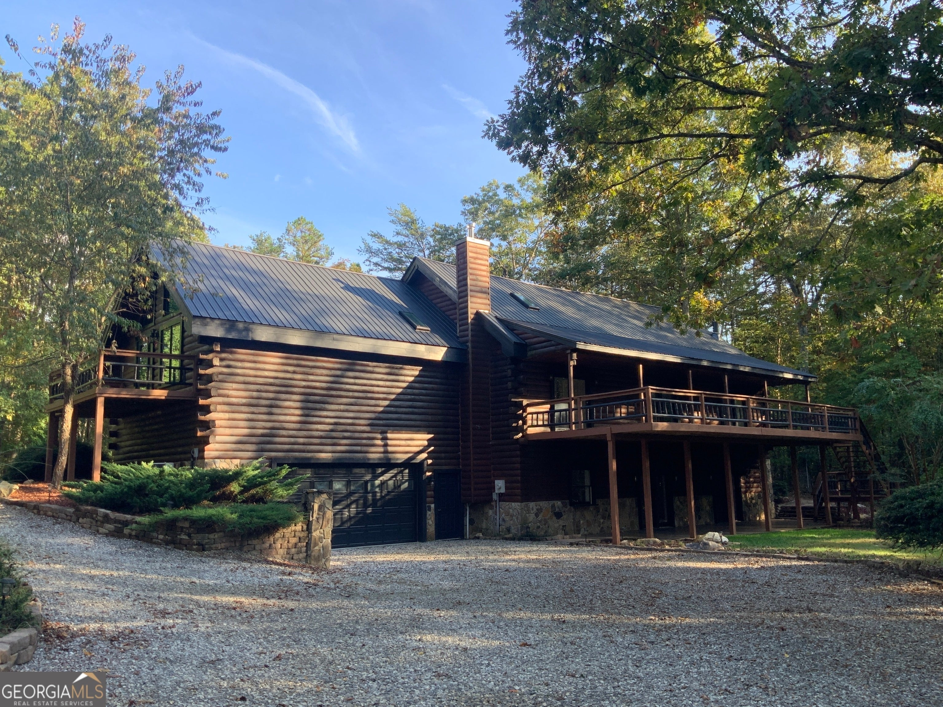 Rustic Elegance Meets Modern Comfort in North Georgia Real Logs * Real Stone * Real Metal Roof * Real Beautiful Natural Landscaping Everything you dream of when moving to the North Georgia Mountains is right here. This one-of-a-kind log home offers the best of both worlds-a rustic exterior of rich, dark-brown logs paired with a contemporary, light-filled interior that blends natural charm with modern flair. The lofted upper level features an open overlook with views of the main living area, plus a spacious private bedroom and full bath accented by exposed beams and whitewashed pine wood walls & drywall. On the main floor, you'll find three-possibly four-bedrooms, all with the same quality finishes and inviting warmth. The primary suite on the main boasts a luxurious soaking tub and a separate glass shower equipped with a full-body shower tower for the ultimate spa experience. At the opposite end of the home, a party room with pool table and wet bar offers a perfect space for entertaining. This area could also serve as a second kitchen, ideal for an in-law suite or guest quarters with easy access to the basement level. The terrace level opens to a level, usable backyard and includes a large kitchen, family room with wood-burning fireplace, laundry room, office or sewing space, full bath, and a two-car garage. Just steps away, an oversized detached garage provides parking for up to six vehicles, workshop space, and car lift capability-a dream setup for hobbyists or collectors. Outside, enjoy evenings around the custom stone fire pit, surrounded by 2.91 acres of private, natural beauty. The setting is truly one of a kind. With all its features, charm, and craftsmanship, this estate is not only a rare find but also an exceptional investment opportunity-it would be nearly impossible to rebuild at this price. Come see for yourself-this North Georgia treasure won't last long!