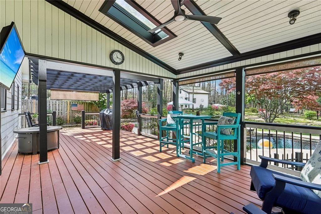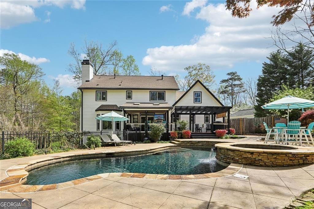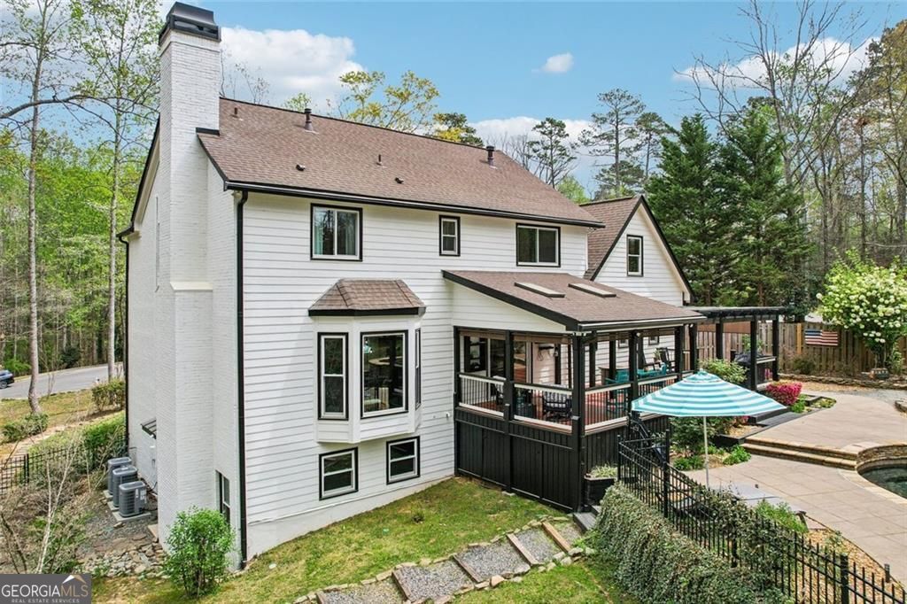 Welcome to your own private oasis 1.5 miles from Downtown Alpharetta! Located on nearly 2.5 private acres, 325 Destiny Trace is truly a one-of-a-kind property! Bright light floods in through all of the windows and highlights the amazing details throughout, including large, open rooms, exposed wood beams, and painted brick accents. This house has been meticulously maintained by its current owners with fresh interior and exterior paint, brand-new kitchen appliances, newer windows and roof (replaced June 2023), and attention to every detail. Before heading upstairs to the bedrooms and additional living areas, take a step outside to the resort-style backyard with a custom heated salt pool and hot tub, ample deck space, and an incredibly private, hardscaped backyard! Imagine lazy summer afternoons floating in the pool, morning coffee viewing spring blooms, cheering for your favorite football team on the covered porch, and cozying up at the firepit in the winter! This yard provides effortless outdoor living, no matter the season! The adorable guest cottage features a newly renovated bathroom and wood beams and has previously served as a separate office (this is the main level bedroom & bathroom). The backyard is fenced in phases, providing safety and versatility. An additional driveway to the right of the property provides easy access to the adjoining lot. Return inside to head upstairs to the 4 bedrooms! The spacious owner's suite overlooks the front yard and the secluded additional lot belonging to this property. One of the upstairs bedrooms has been transformed into a dream closet and could easily be converted back to a traditional bedroom. This house just keeps going! Be sure to walk through bedroom number 4 to the luxurious upstairs living space! The options are endless with the finished basement that features an additional bedroom, bathroom, workout room, theater room, and billiards room! Districted for top-rated North Fulton schools, including Summit Hills Elementary, Northwestern Middle School, and Milton High School. This much privacy so close to downtown Alpharetta is incredibly rare! Don't let this unique opportunity pass you by- schedule a showing today!