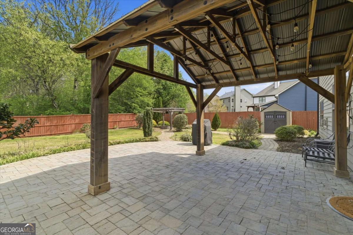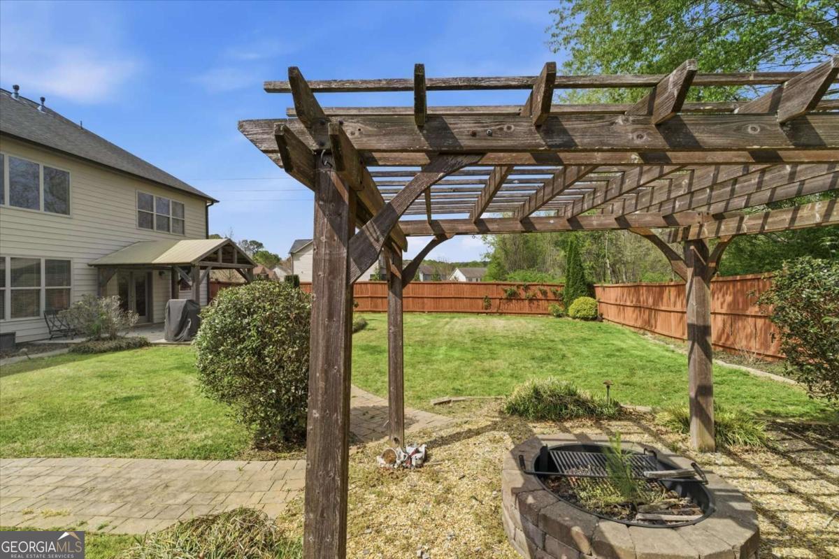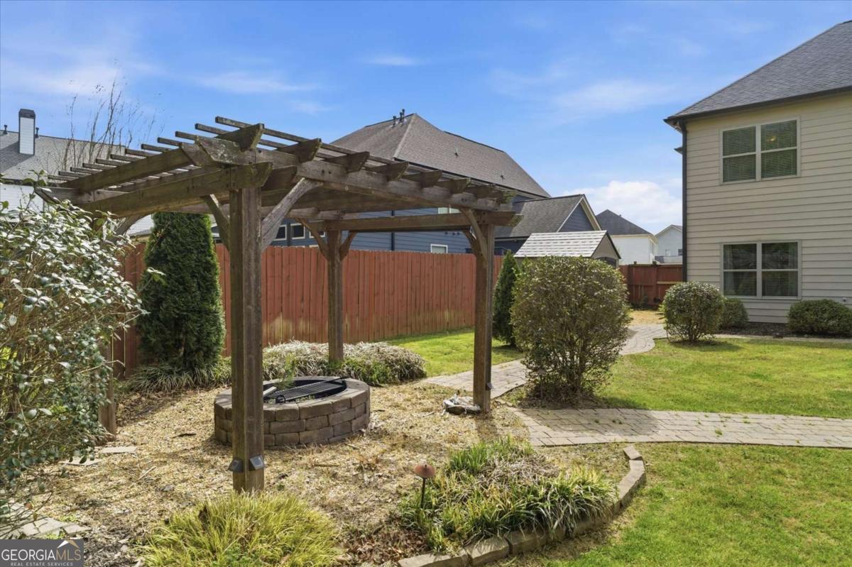 Welcome to this stunning 5-bedroom, 4-bathroom home, perfectly designed for modern living and entertaining! The main floor offers exceptional functionality with a full bathroom & bedroom, private office and a spacious dining room featuring an elegant coffered ceiling. This home is ideal for guests or multi-generational living. The heart of the home is the two-story great room, complete with a cozy fireplace, seamlessly flowing into the gourmet kitchen. The chef-inspired kitchen boasts a gas stove, stainless steel appliances, a bright eating area, and a walk-in pantry. Double doors open to a true outdoor oasis featuring a gazebo, pergola, fire pit, storage shed, and a fenced, level yard-a perfect setting for gatherings and relaxation. Upstairs, the owner's suite is a private retreat, featuring a luxurious master bathroom with a separate soaking tub and shower, and an oversized walk-in closet. Convenient upstairs laundry adds ease to daily living. Three additional spacious bedrooms and two full bathrooms are also upstairs. Located in a sought-after community with fantastic amenities, including a swimming pool, tennis courts, and a playground-all in a prime location near great schools, shopping, and dining. Don't miss the opportunity to make this spectacular property your own!
