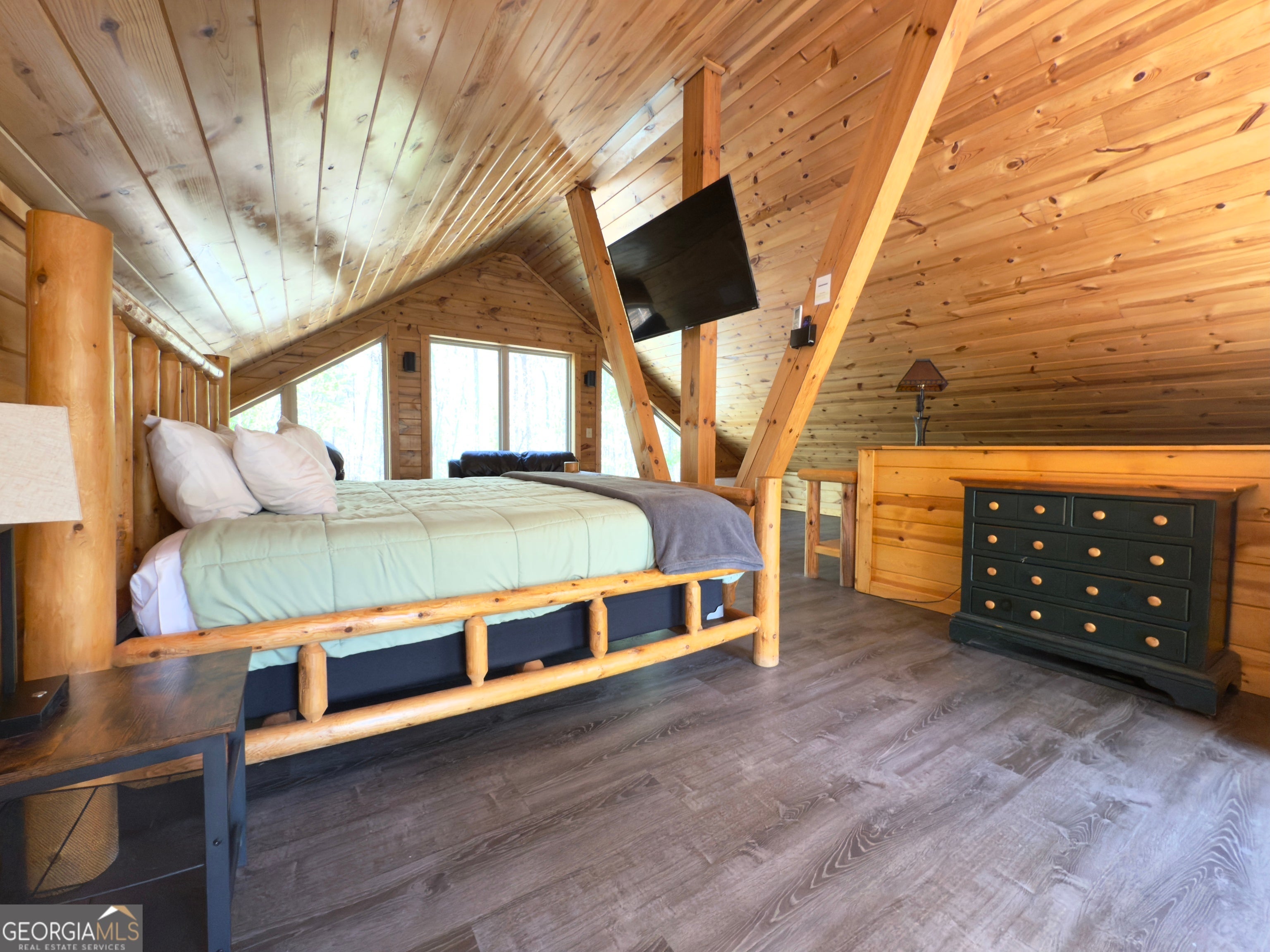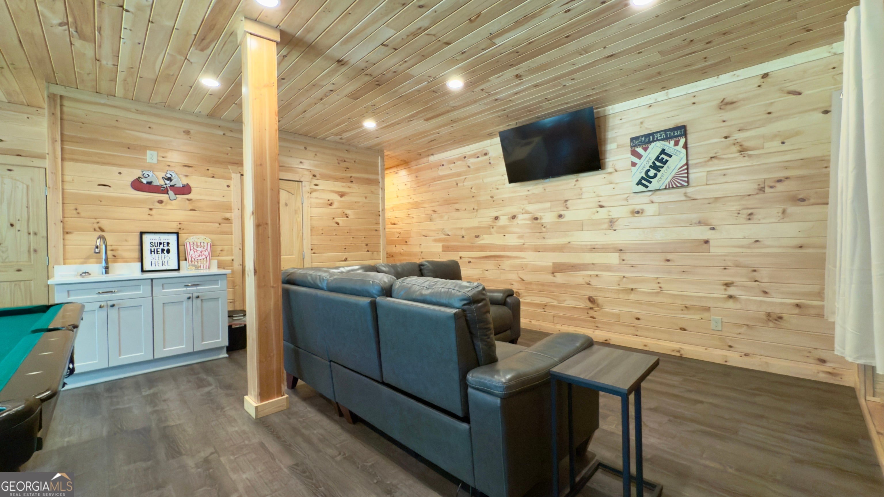 Tucked away in a secluded area is this stunning cabin that seamlessly blends modern sophistication with rustic charm and offers an unforgettable escape for those seeking relaxation and adventure. Located near the charming town of Helen, in the beautiful North Georgia mountains, outdoor enthusiasts will delight in activities such as fishing, tubing, hiking, horseback riding, and ziplining. The area is also rich in cultural offerings, featuring festivals, unique shops, dining, vineyards, and craft breweries, making it a hub for those seeking diverse experiences. While officially listed as a 2-bedroom cabin, the innovative "open design" of the lower level transforms this cabin into a spacious 4-bedroom sanctuary. The spacious, fully equipped kitchen boasts upgraded appliances, solid surface countertops, and high-end finishes. The master suite is a haven of luxury, featuring an oversized walk-in shower, a separate whirlpool tub to relax and unwind. The lower level features two pod beds with privacy curtains, twin-sized bunk pod, ensuring comfortable accommodations for everyone. A spa-like bathroom adds a touch of luxury to the downstairs space. For families, the lower level becomes a playground with pool, board games, cornhole, and a TV area, ensuring entertainment for all ages. Downstairs you will also find the convenience of the washer/dryer and a bar area with sink. Step outside onto the spacious deck and sink into the hot tub for an evening of relaxation under the stars. The deck features a comfortable covered sitting area. The downstairs opens to a patio for entertaining... Whether it's roasting marshmallows by the fire, snuggling up to a good book, or exploring the area's abundant outdoor activities, this cabin is a gateway to both relaxation and adventure. This turn-key cabin is perfect for a full time residence, second home, or income-producing rental property. Don't miss the opportunity to make this tranquil retreat your own.