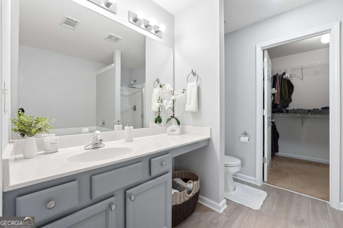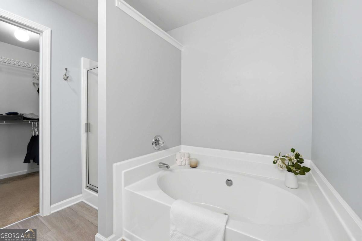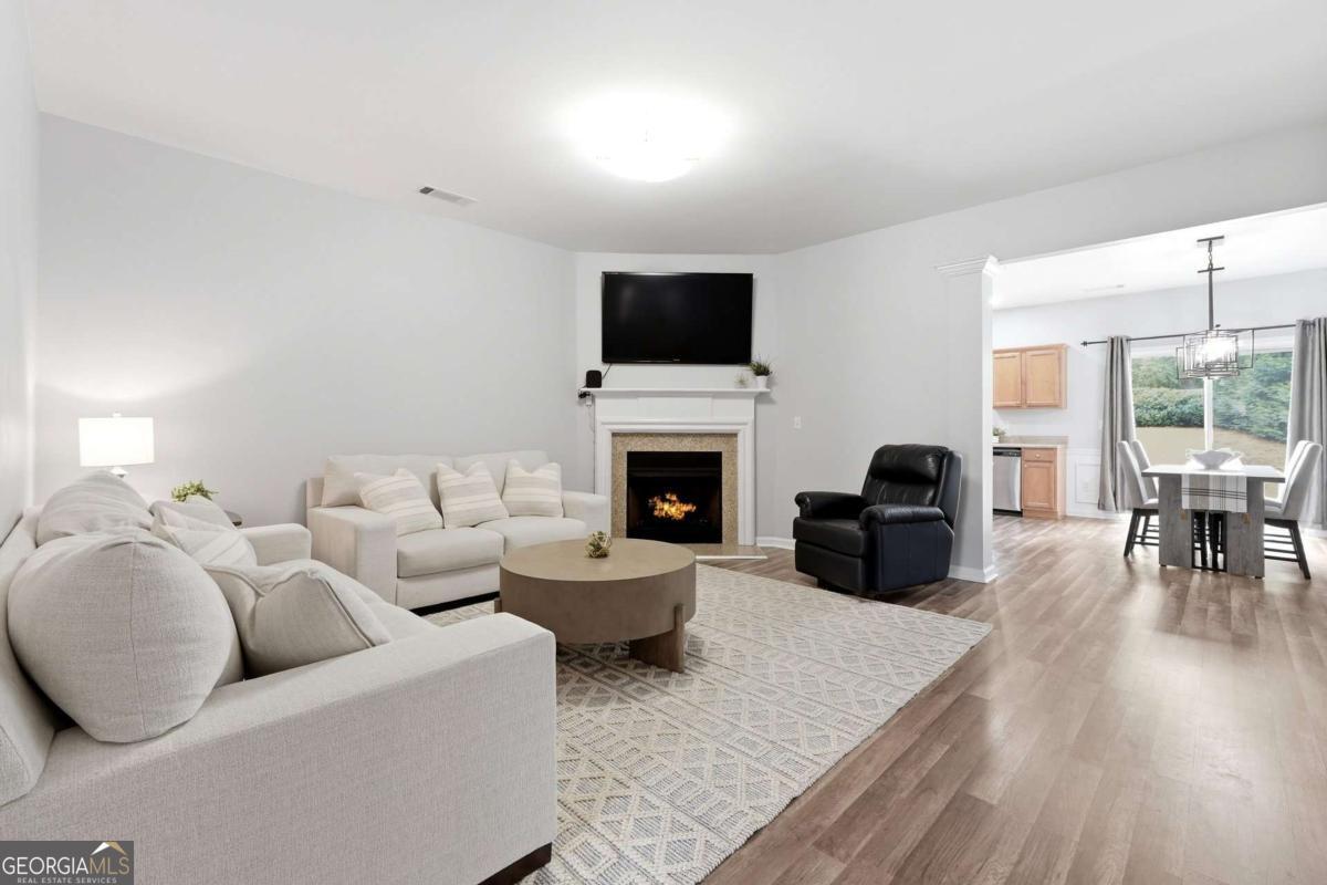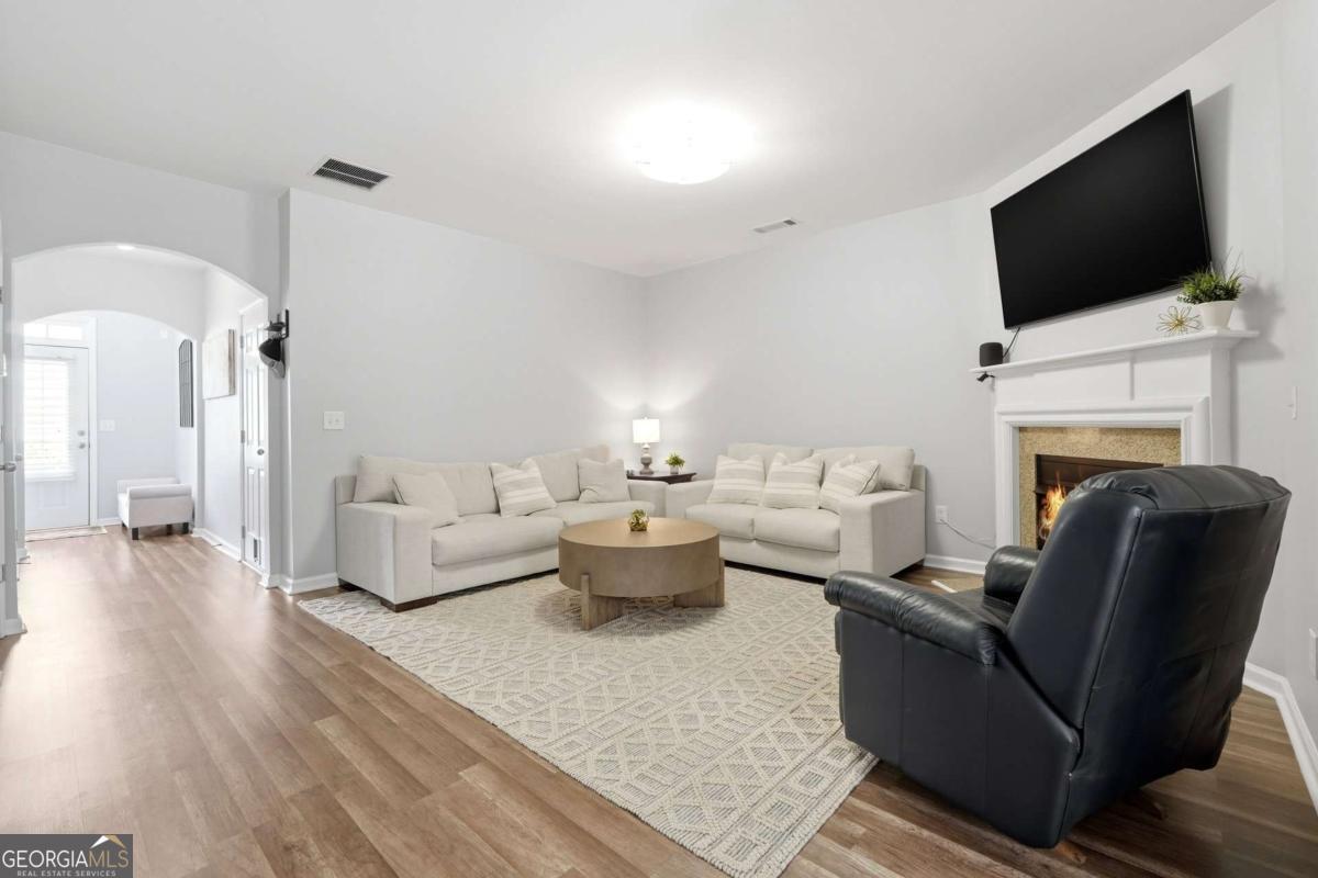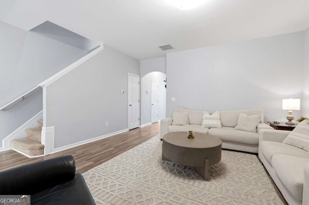 Stylish 3BR Townhome with Private Backyard, Upgrades & Prime Location Welcome to this beautifully designed 3 bedroom, 2.5 bath townhome offering comfort, functionality, and an unbeatable location. A welcoming entry foyer leads you into an open and inviting main level featuring durable laminate flooring and fresh neutral paint throughout, complemented by elegant arched openings that add architectural charm. The spacious great room with a cozy fireplace flows seamlessly into the large dining area, perfectly positioned to overlook the kitchen and backyard-ideal for both everyday living and entertaining. The kitchen is well-appointed with stained cabinetry, stainless steel appliances, and a walk-in pantry, providing ample storage and workspace. A stylishly upgraded powder room on the main level adds a touch of modern appeal for guests. Upstairs, the oversized primary suite offers a relaxing escape with a generous walk-in closet and a private bath featuring a soaking tub and separate shower. Two additional secondary bedrooms are generously sized and share a hall bath with a large vanity. A convenient upstairs laundry room enhances everyday ease and functionality. Step outside to enjoy the private patio and backyard-perfect for relaxing, grilling, or enjoying a quiet outdoor retreat. Additional highlights include a one-car garage and access to fantastic community amenities including a pool, clubhouse, and scenic lake. Ideally located just minutes from shopping, dining, major interstates, and Kennesaw State University, this home offers both convenience and lifestyle. A perfect opportunity for homeowners or investors alike!