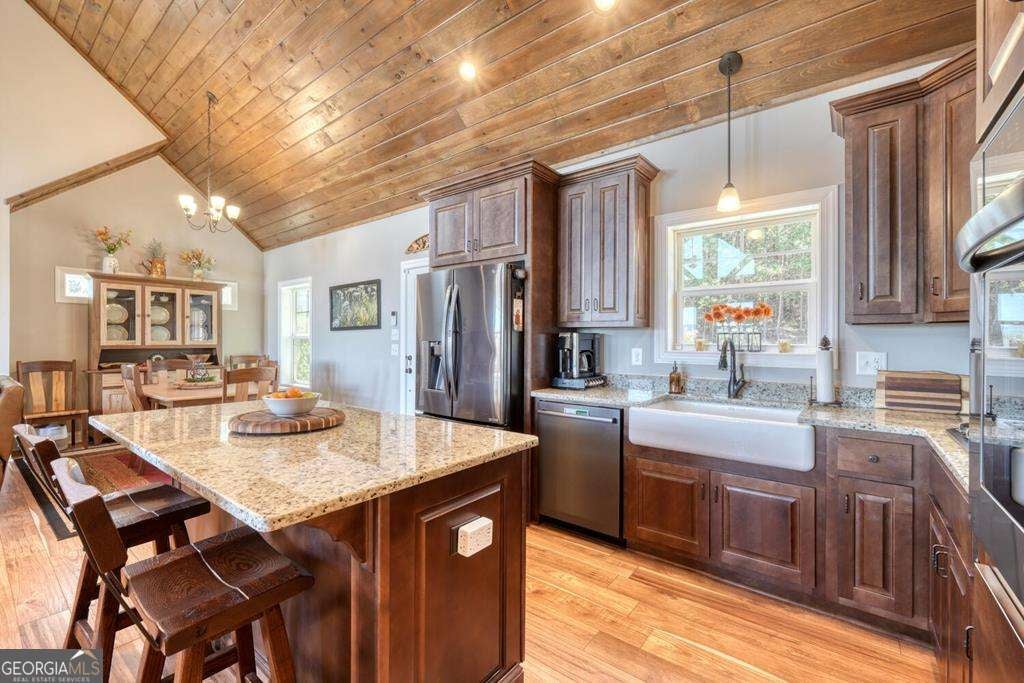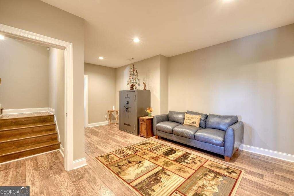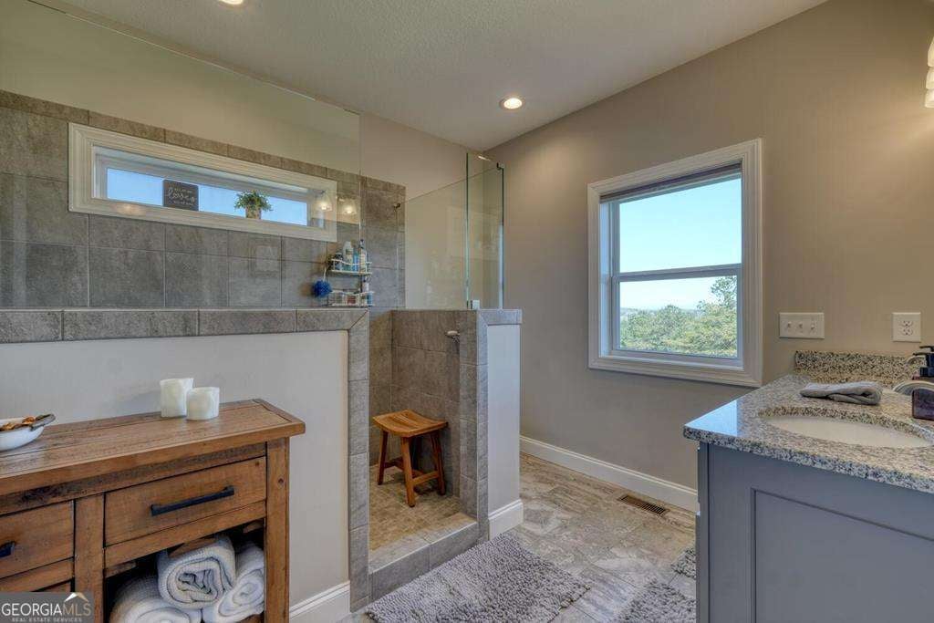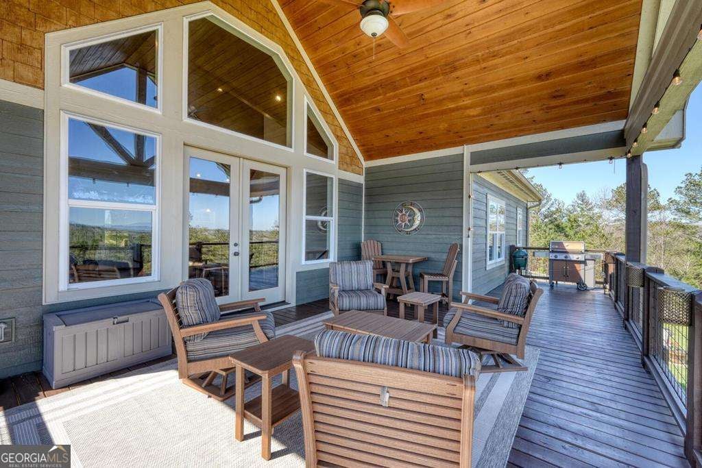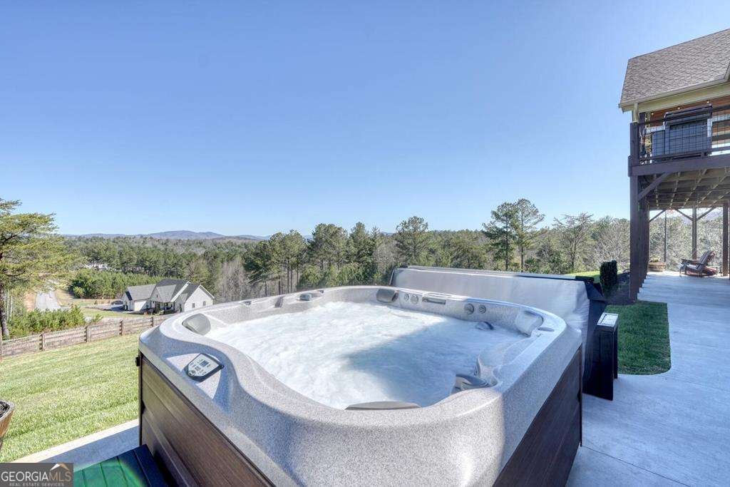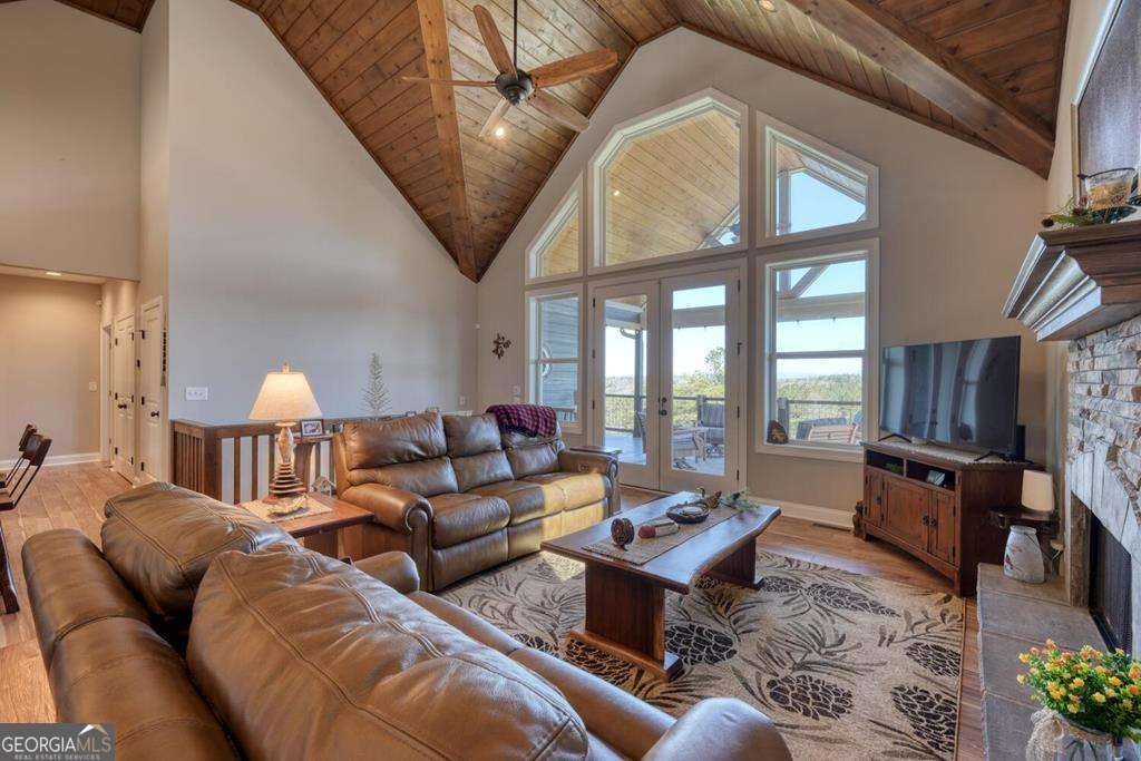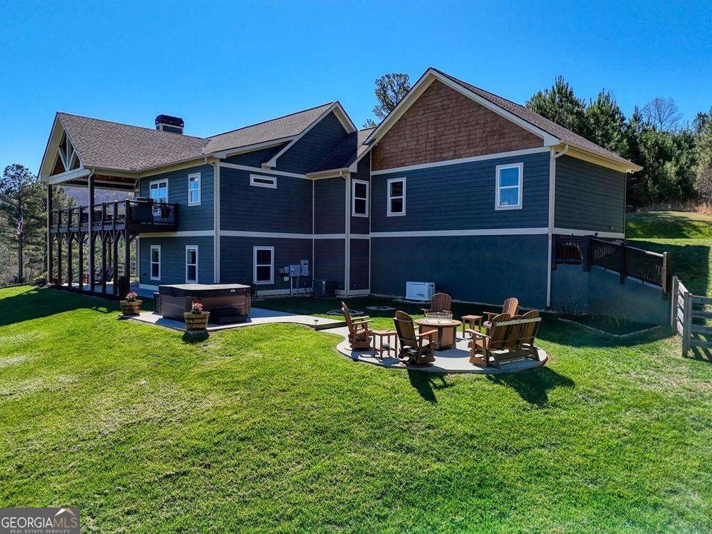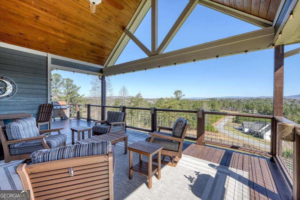 Beautiful, custom-built, Craftsman-style home with 4 bedrooms and 3 baths, located in the stunning 1300 Subdivision in Blairsville. This home has been meticulously maintained with over 3000 s/f of living space, with an open floor plan featuring a dramatic tongue and groove vaulted ceiling. When you walk through the living room and out to the covered deck, you will be enchanted by the long-range mountain views. A stacked stone fireplace with gas logs creates ambiance. The kitchen features granite countertops with barstool area at island and a stylish farm sink. Beautiful LVP flooring throughout most living areas. The 1.31-acre lot has a newly installed custom fence covering most of the backyard area designed to keep your pets secure. Owners have planted heavily producing peach trees and recently planted apple trees. Master suite has beautiful ensuite bathroom with large shower, double vanity and generous walk-in closet. Second bedroom on the main level enjoys mountain views and walk-in closet as well. Terrace level has two additional bedrooms, all with walk-in closets and a bonus room to use as game room, pool room, or additional bedroom. The three-car garage is every man's dream. Owners have recently added a concrete walkway to the inviting hot tub in addition to a large concrete seating area around a fire pit, providing outdoor living at its best. Additional outdoor entertainment space is located off of the downstairs terrace level. Direct propane connection available for your BBQ grill. Two propane tanks service the property along with a recently added whole house generator. Additional storage area in the mechanical room. A gated entrance provides security, Amenities include clubhouse with saltwater pool, stables, and a private marina for lake access and boat launch.